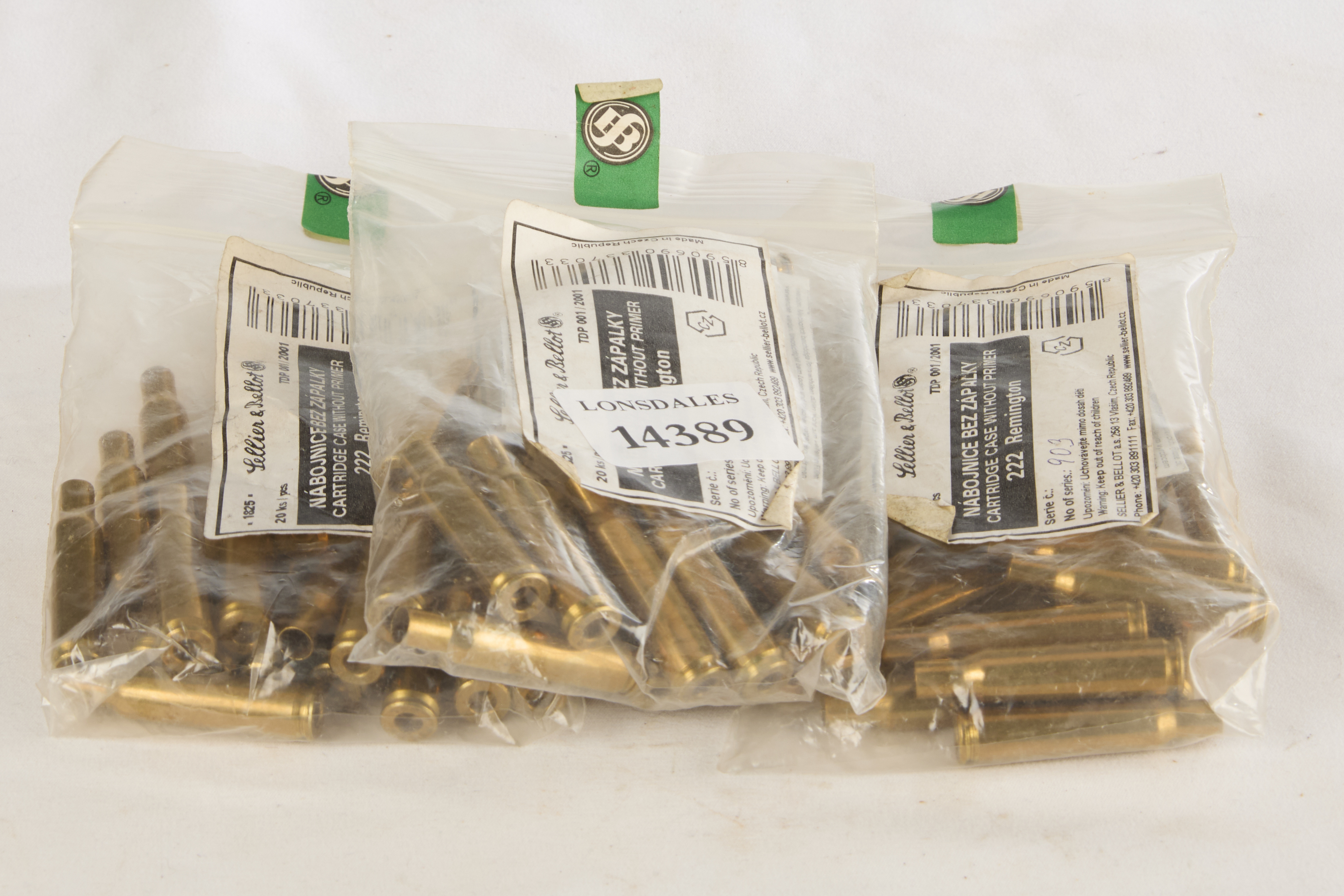 Lot 487: SELLIER & BELLOT .222 REM UNPRIMED CASES, 60 OF