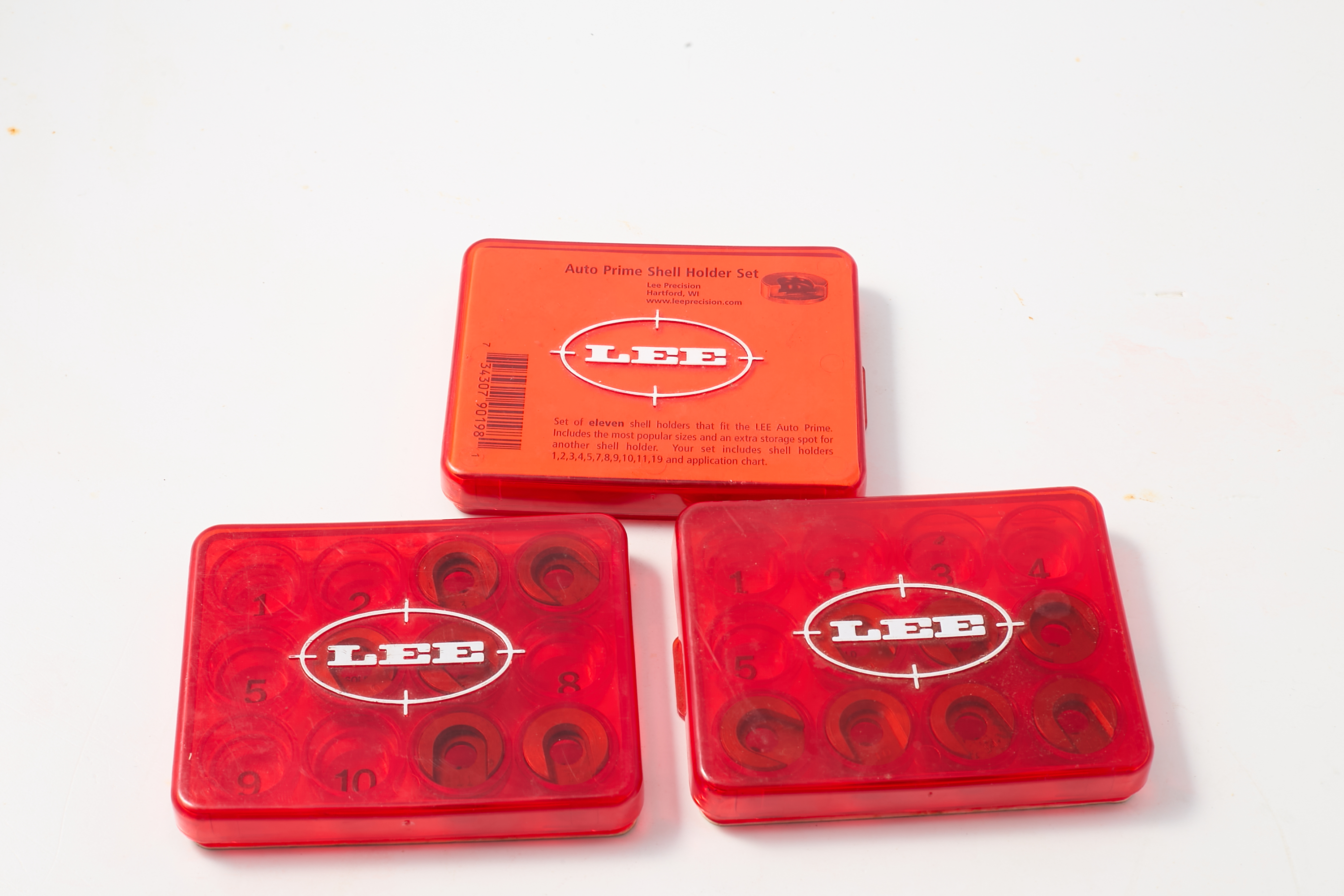 Lot 556: LEE SET OF THREE AUTO PRIME SHELL HOLDER SET, three 3s, three 7s, two 8s, three 9s, three 10s, four 11s and three 19s