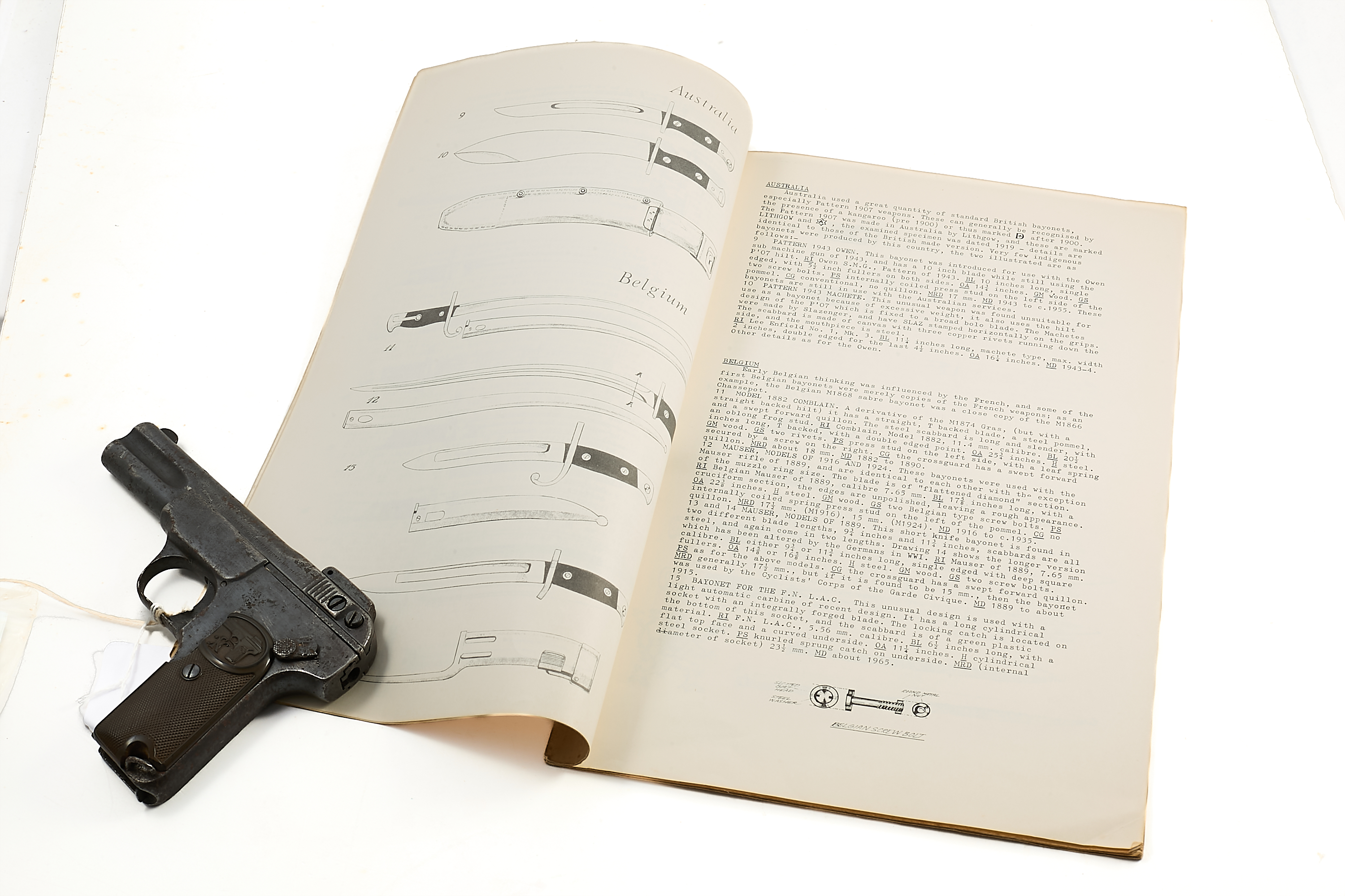 Lot 675: A PRIMER OF WORLD BAYONETS by J WALTER & G HUGHES Browning paperweight not included.