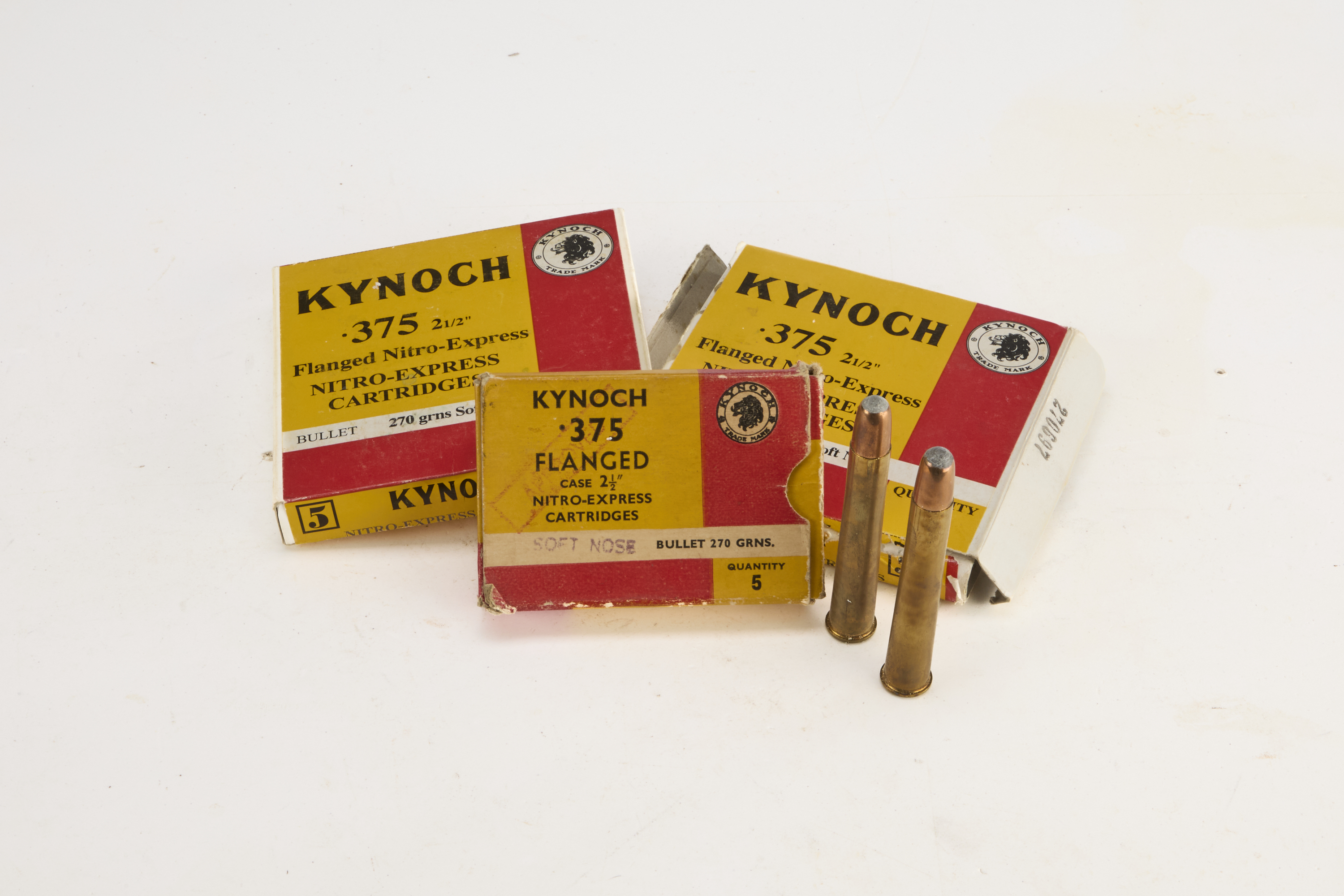 Lot 185: KYNOCH .375 FLANGED CASE 2 1/2" NITRO-EXPRESS CARTRDIGES 270gr SOFT-NOSED, 10 OF