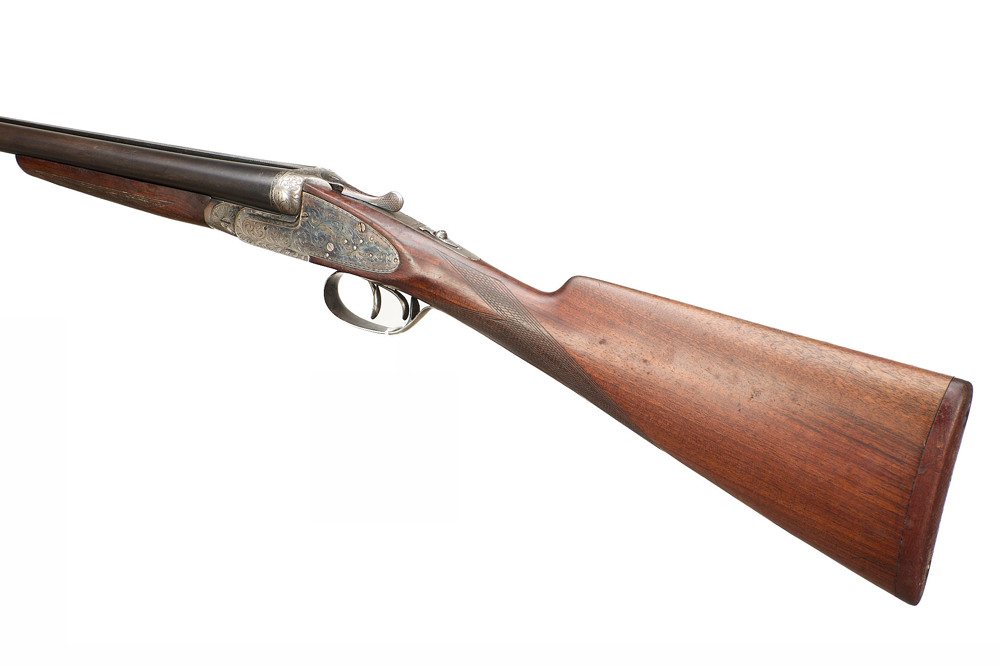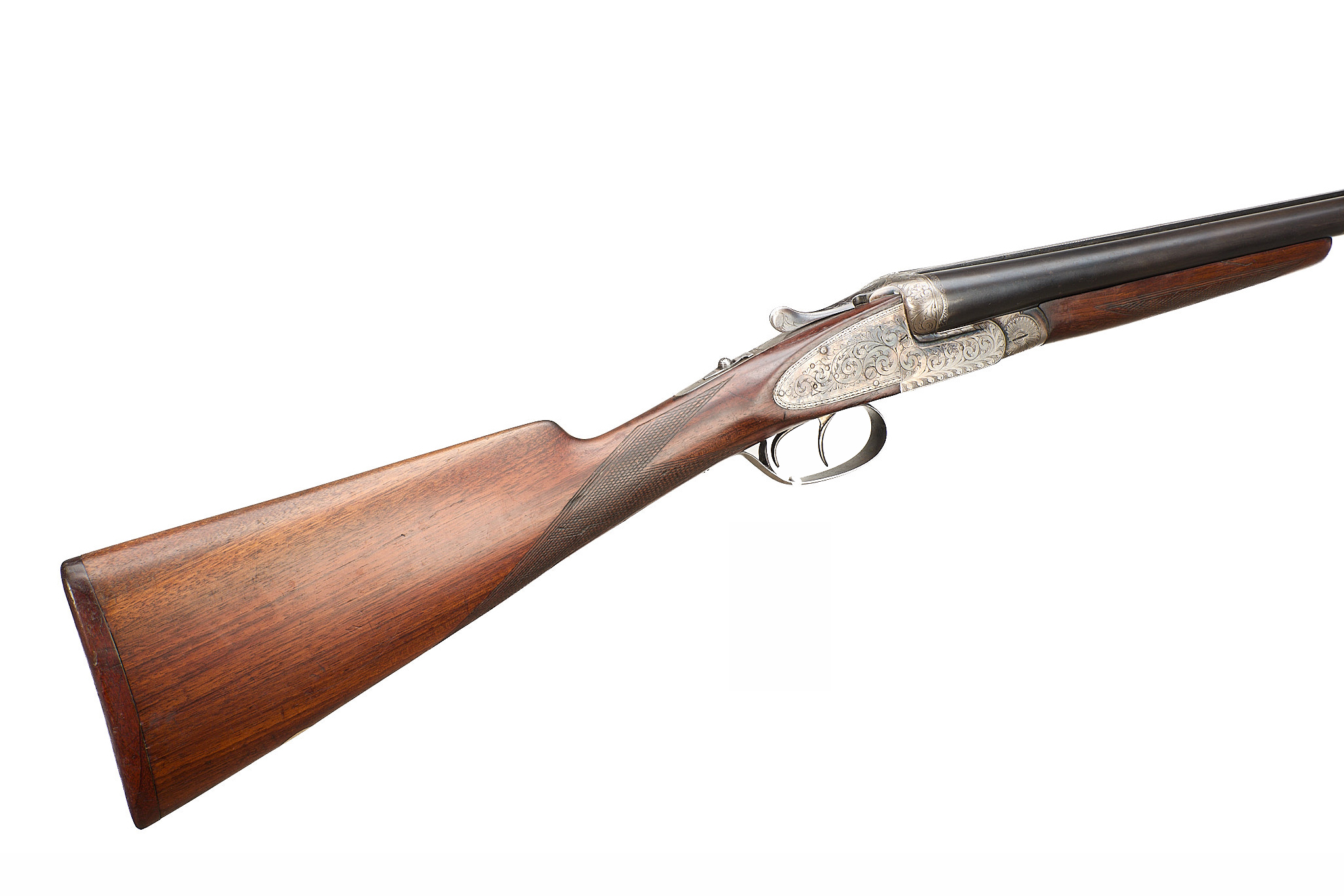 Plain extension to butt, chequered straight grip and forend. Tapered rib, top lever, automatic safety with ‘S’ engraved. The barrels engraved ‘SPECIALLY MADE FOR UK’. The action engraved acanthus scrolling.