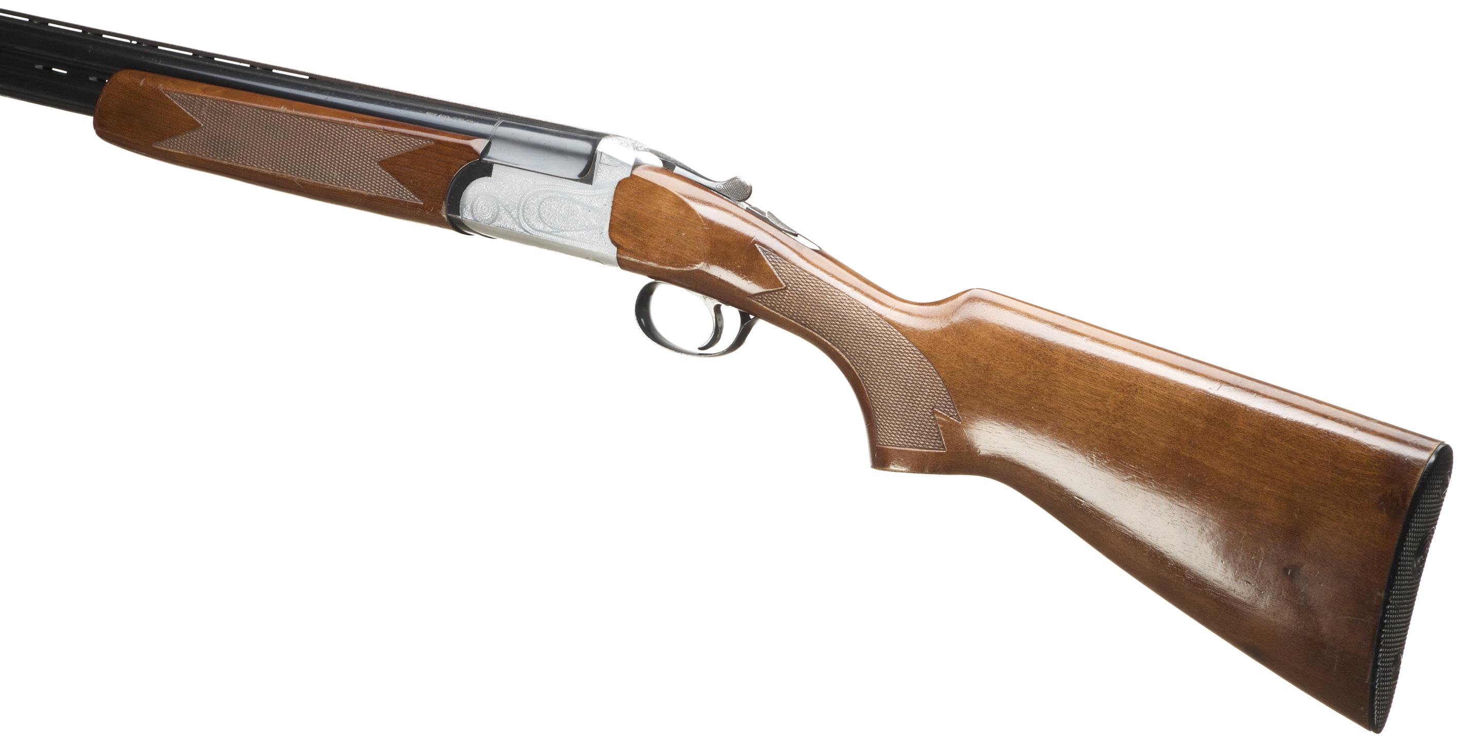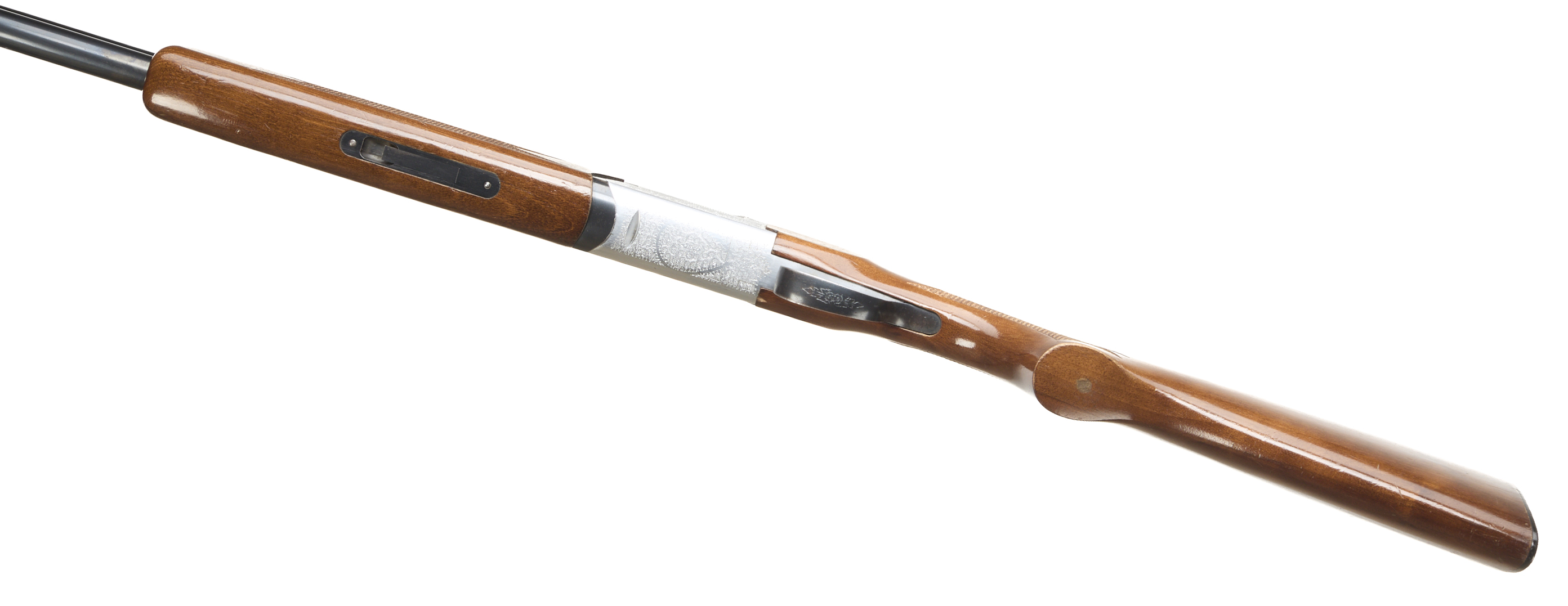 Ebonite butt pad, chequered semi-pistol grip and forend, ventilated top and mid rib. Acanthus scrolls to action. Selective single trigger and safety.