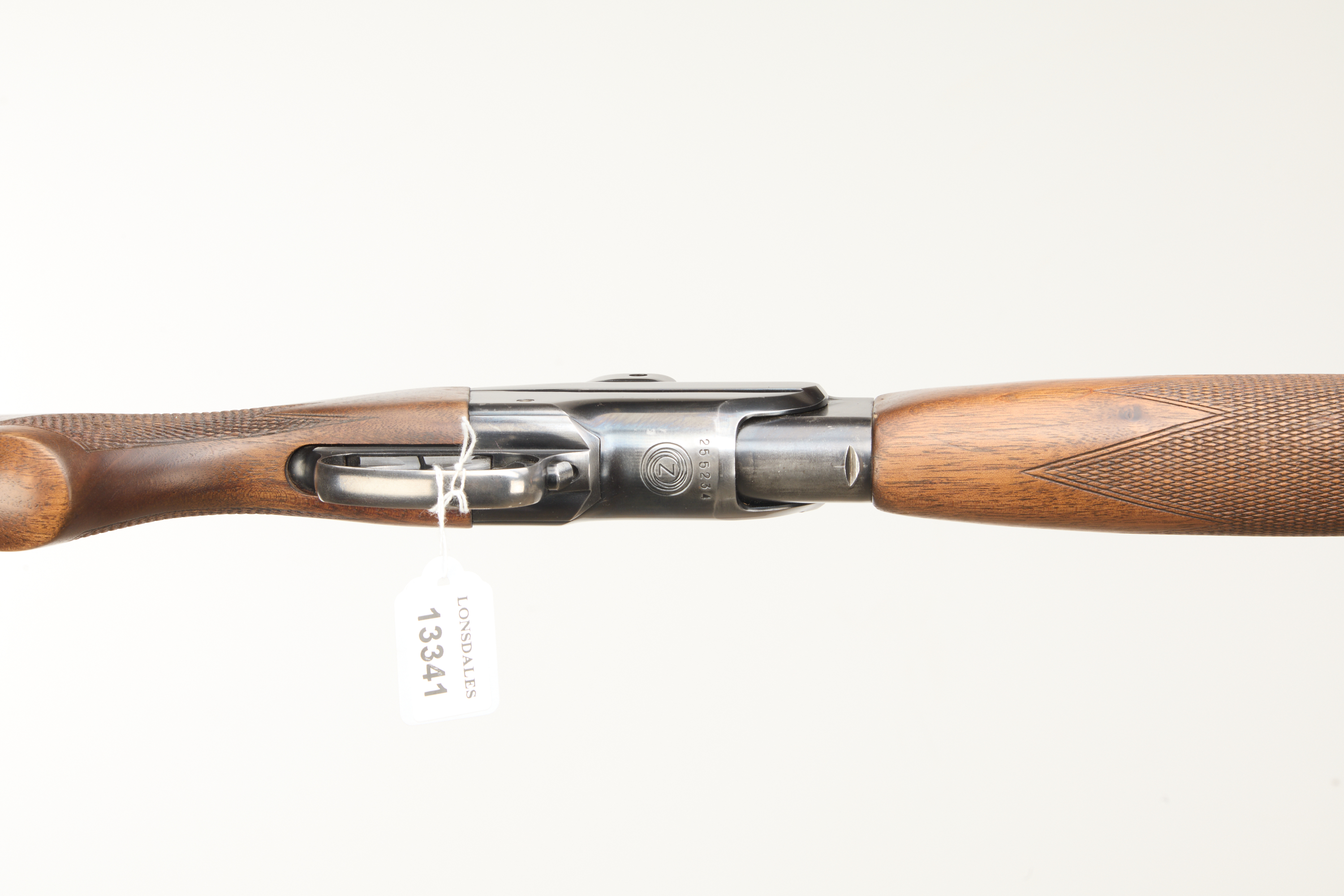 Plastic butt pad, chequered semi-pistol grip and forend. Unadorned action. Double trigger with the back trigger as a selective single trigger.