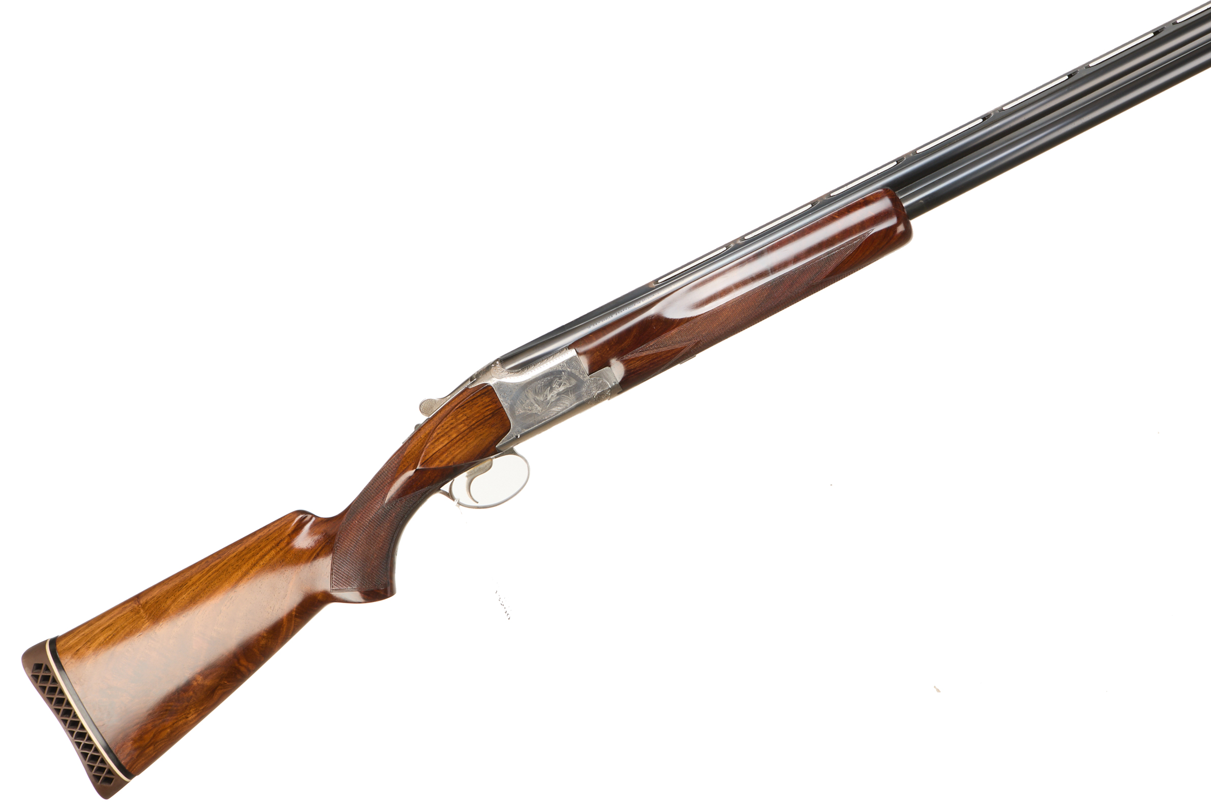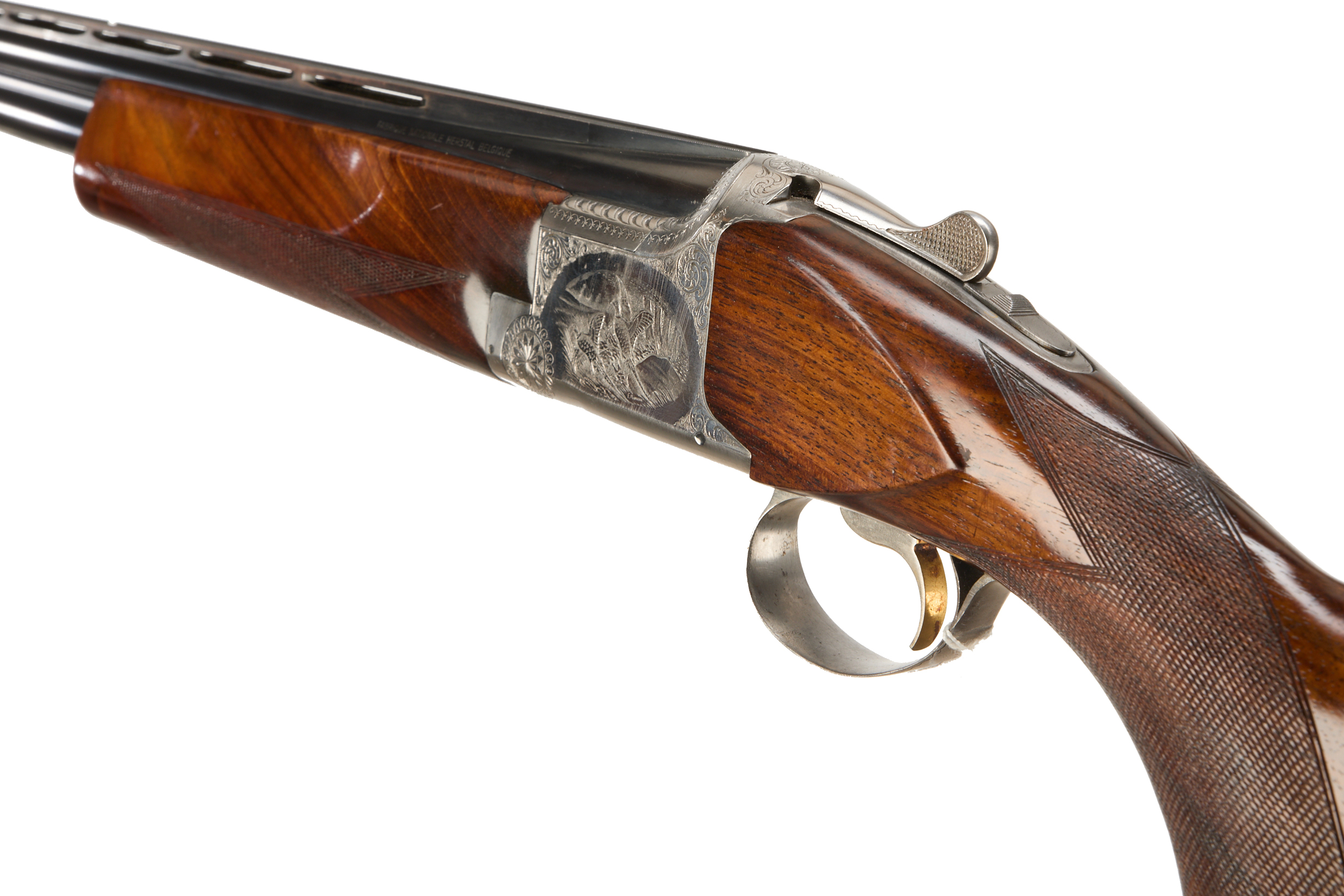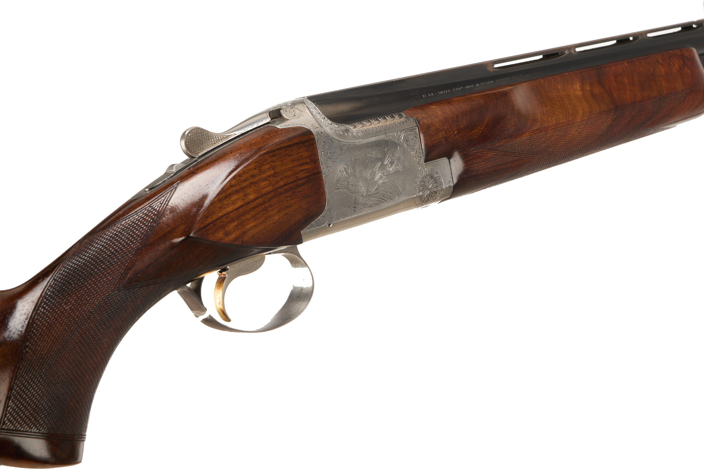 Ventilated butt pad, chequered full pistol grip and forend, straight grip, ventilated top rib. Aquatic scene engraved including waterfowl and surrounded by floral motifs to action. Integrated barrel selector (selective single trigger) and safety. Marechal engraved.