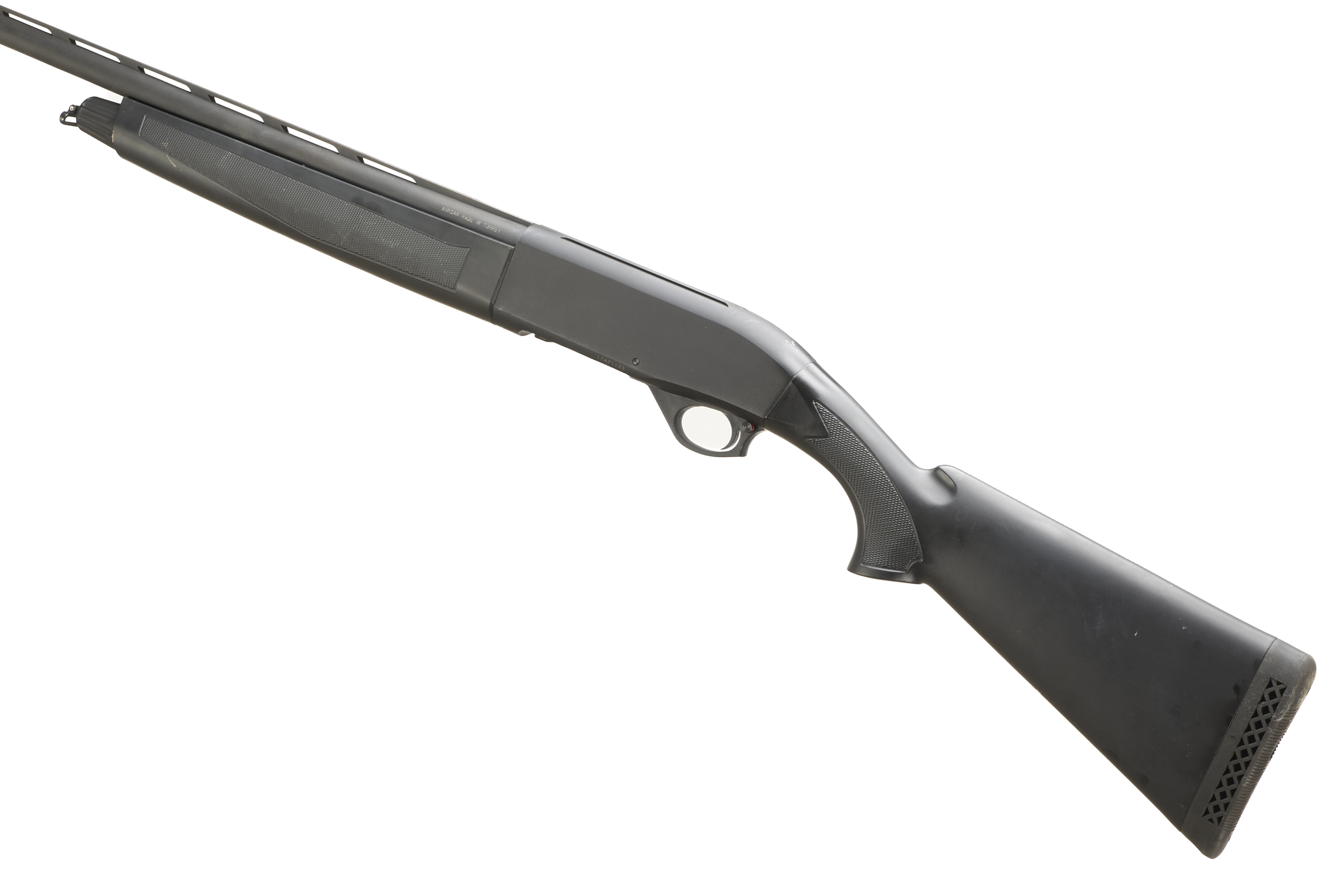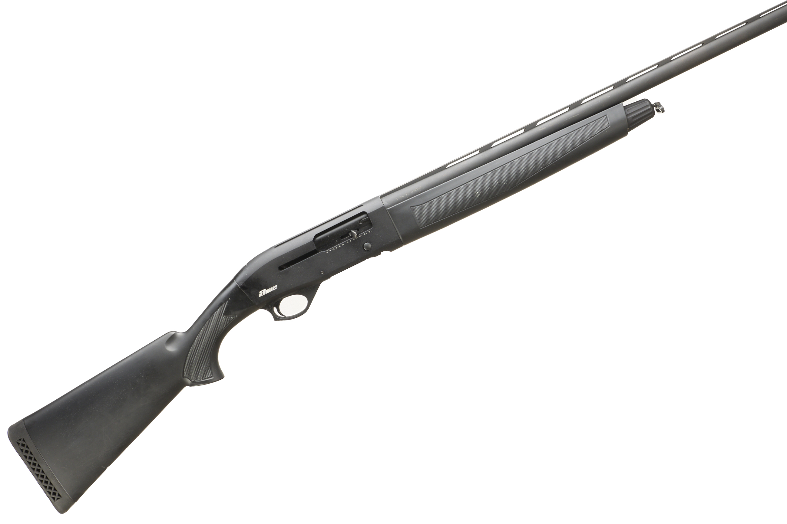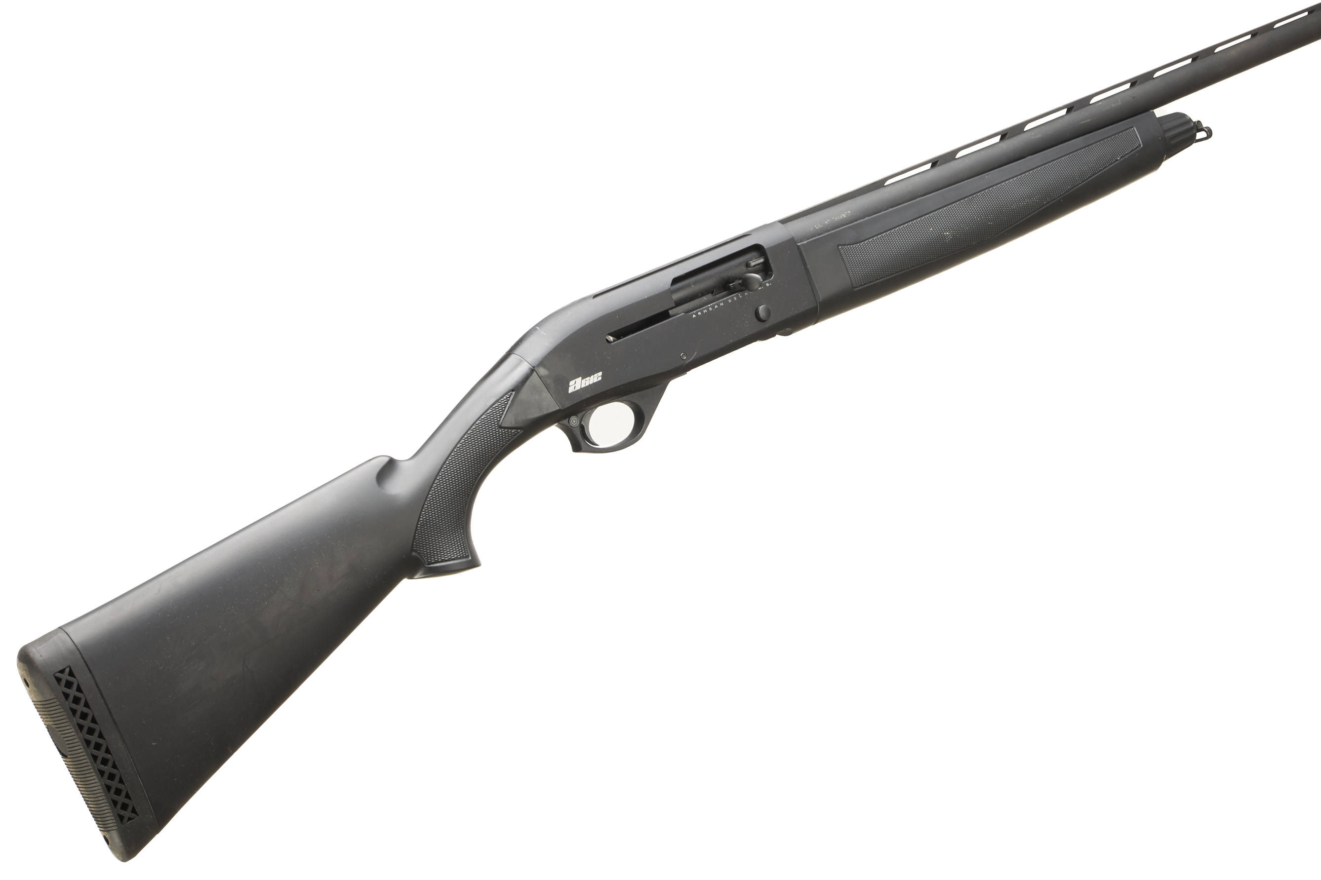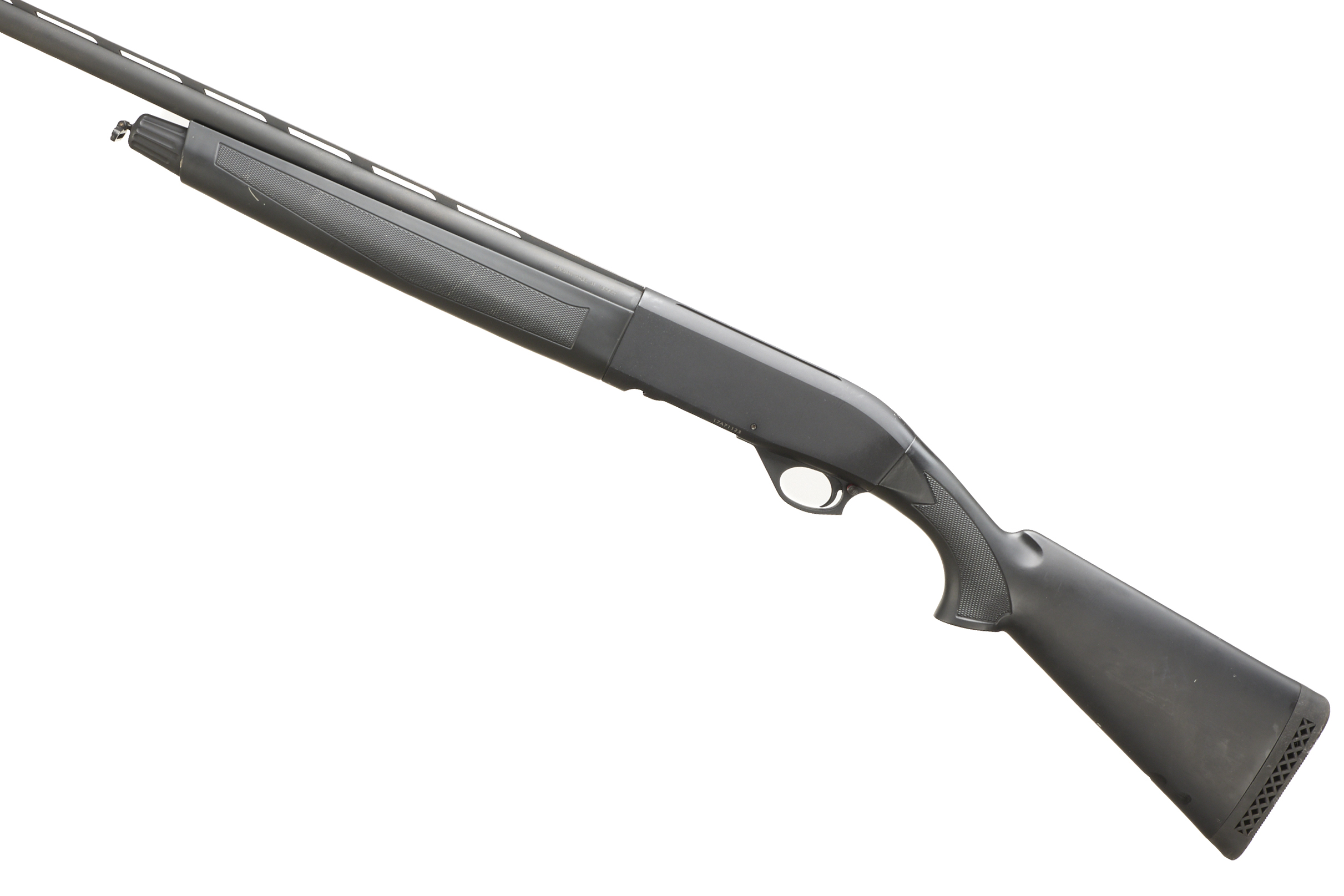 Ventilated butt pad, synthetic chequered pistol grip stock and forend. Ventilated top rib, plain, action.
