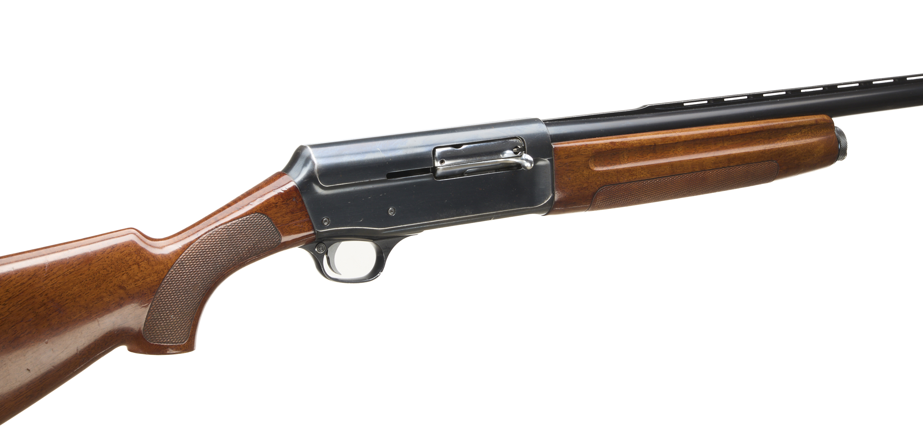 Ventilated butt pad, chequered pistol grip stock and forend. Ventilated top rib, unadorned action.