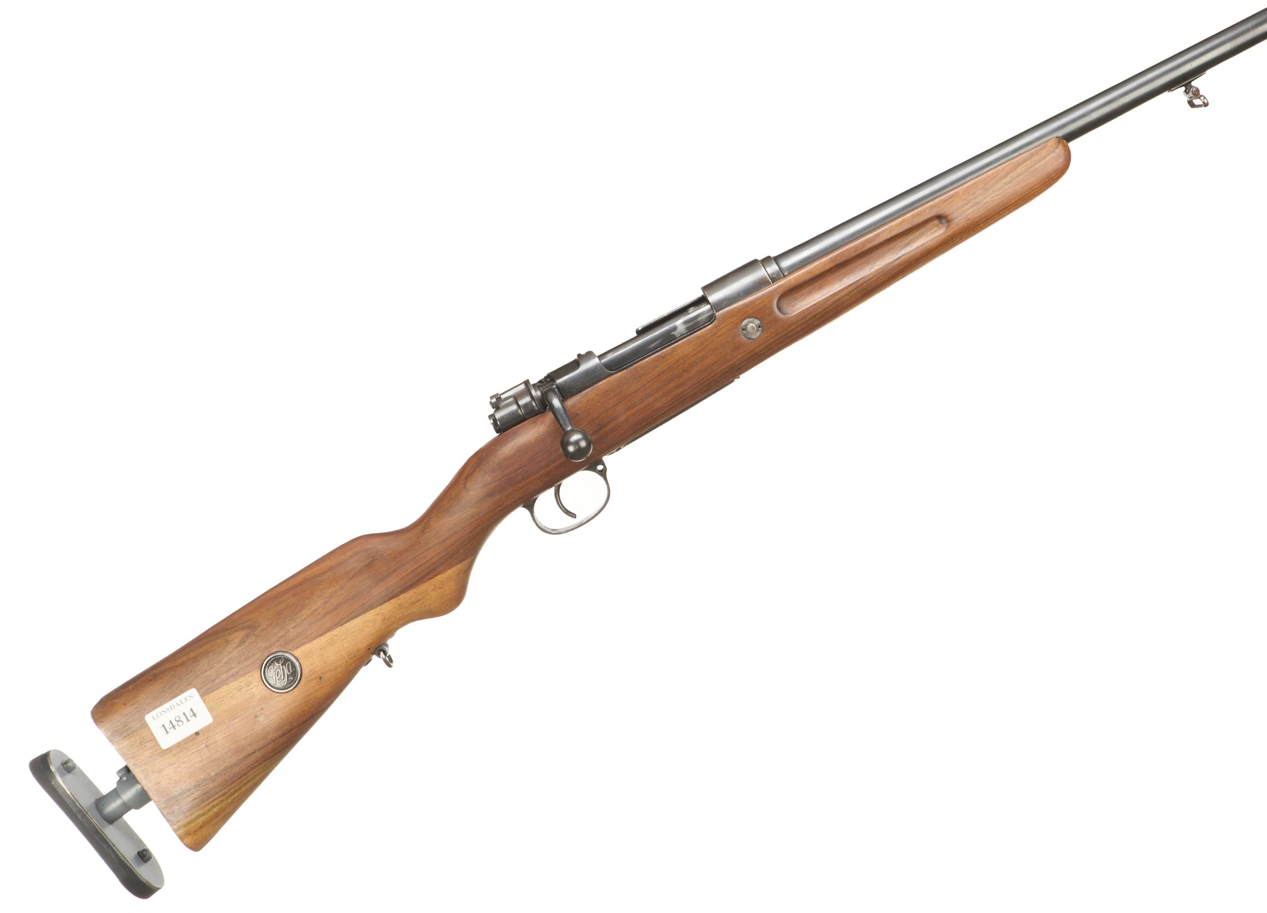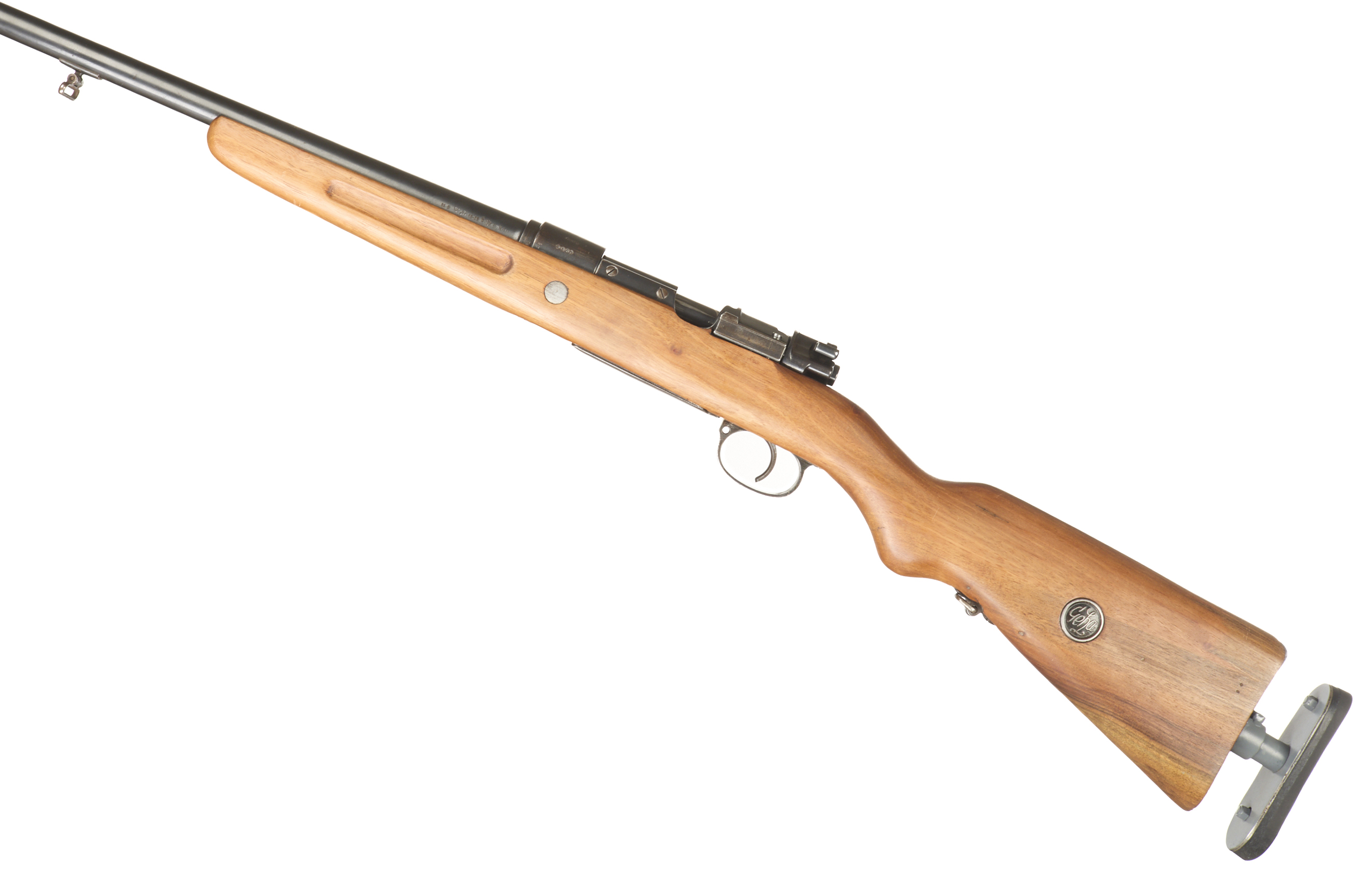 Adjustable cushioned butt pad, fully figured stock and forend. Internal magazine with hinged floor plate. Flag safety