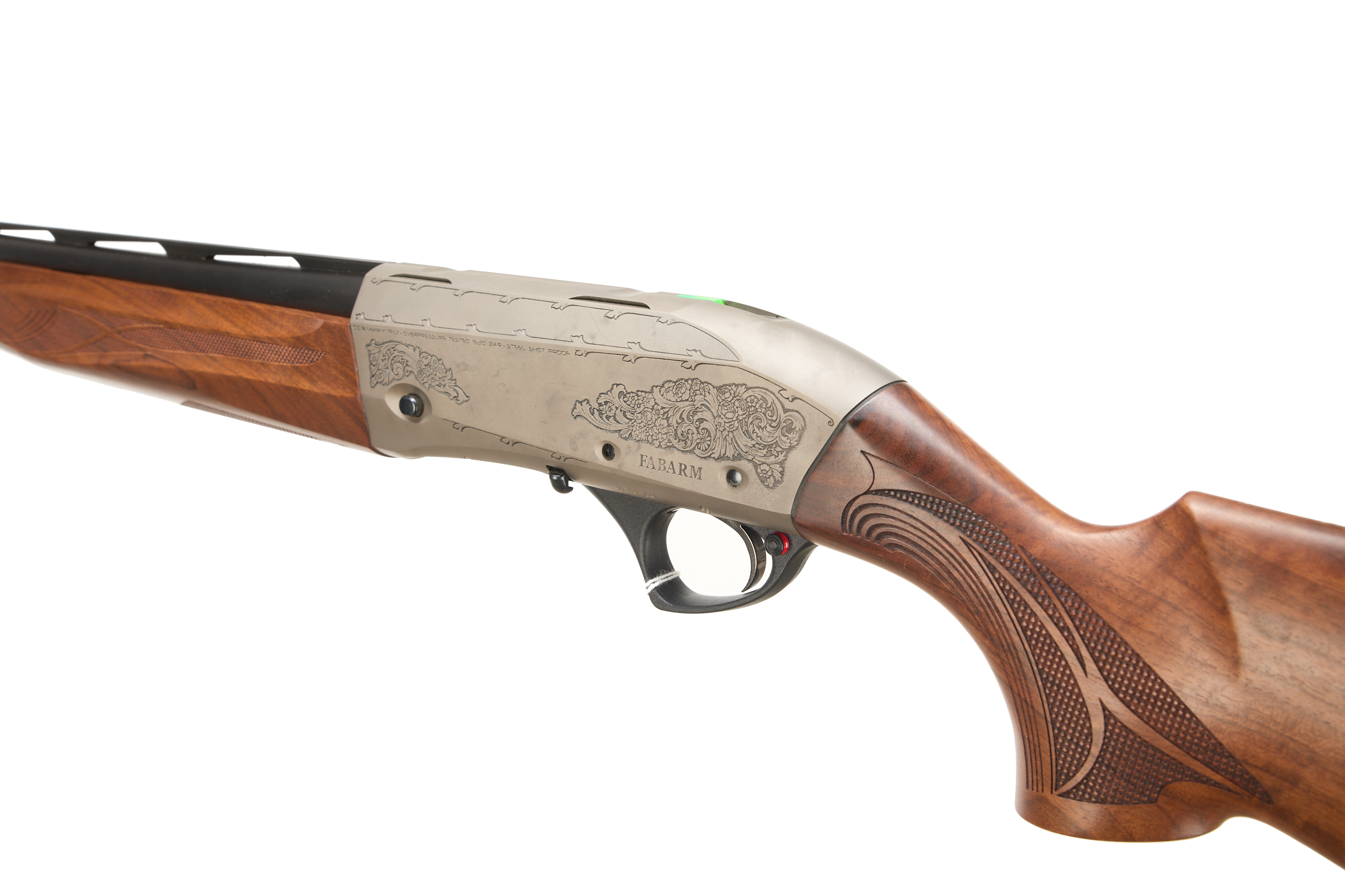 Perished rubber butt pad, scrolled, chequered pistol grip stock and forend. Ventilated 6mm machine-finished top rib. Alloy body, satin finish, acanthus enhancements, ‘FABARM’ and ‘XLR5’ to the right side, ‘100% MADE IN ITALY – OVERPRESSURE TESTED 1630 BAR – STEEL SHOT PROOF” to the left. In the manufacturer’s formed case with sling swivels, all spares for choke with original case.