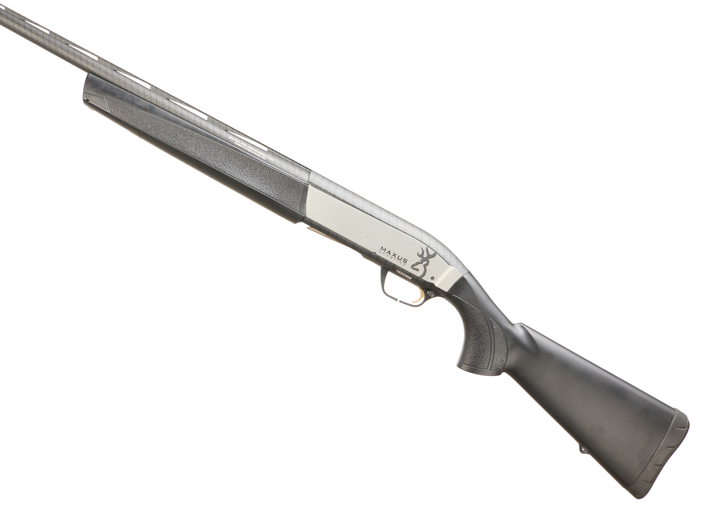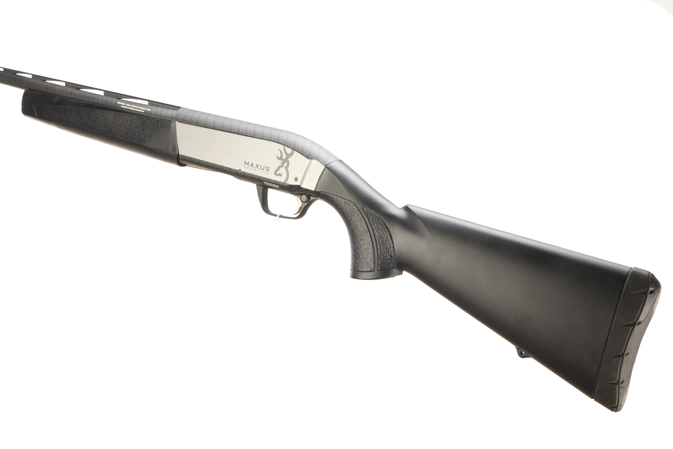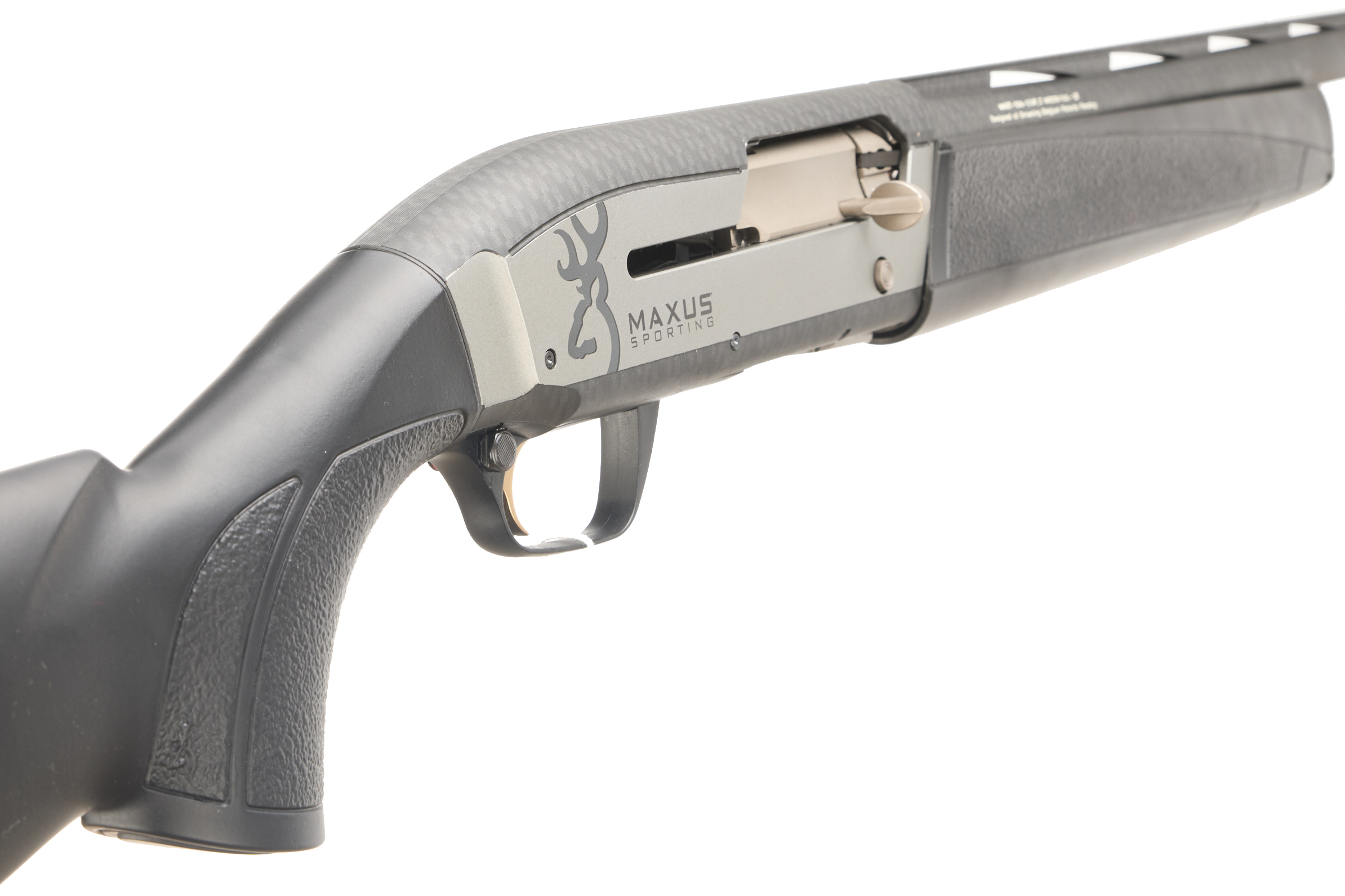 Cushioned, rubber butt pad, synthetic stock, textured pistol grip and forend. Ventilated, machine-finished top rib, plain, matt action with ‘MAXUS’ motif. Steel Proof.