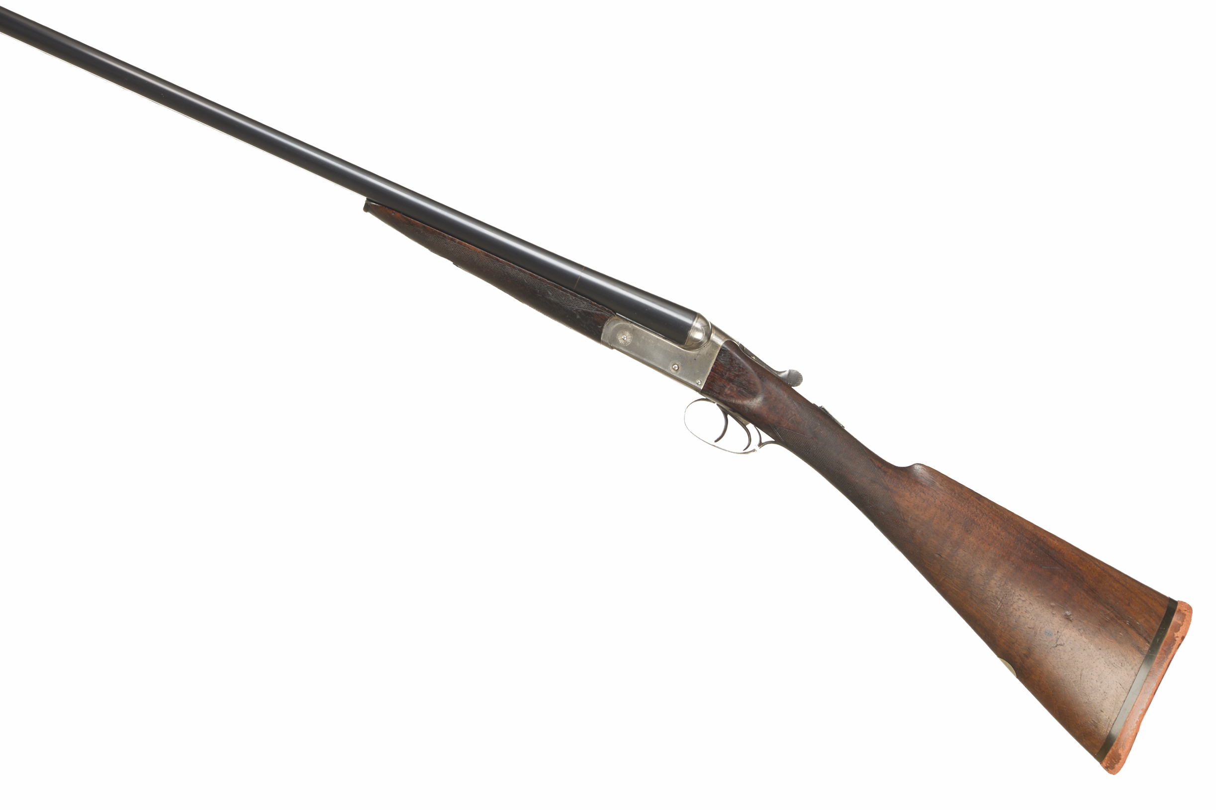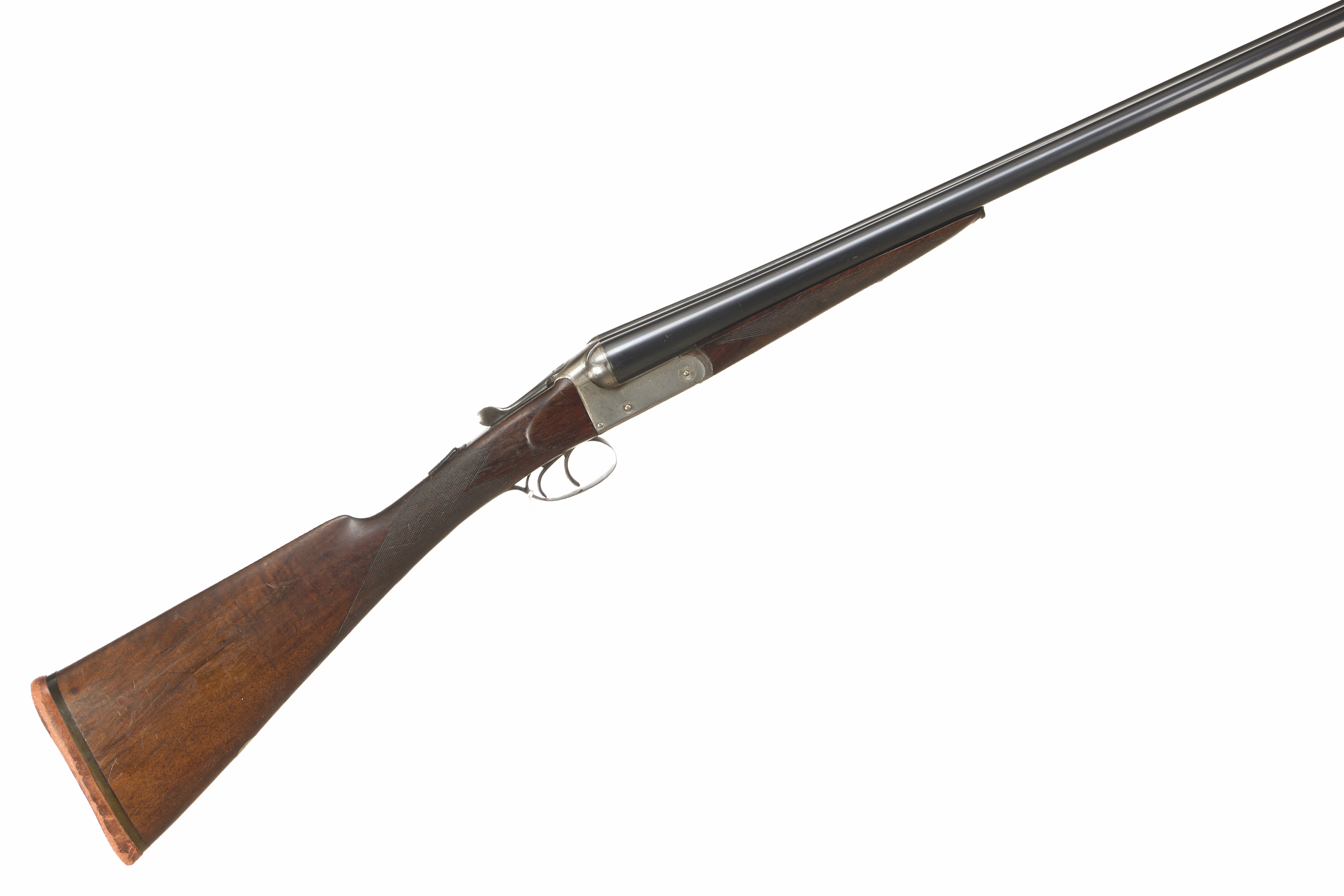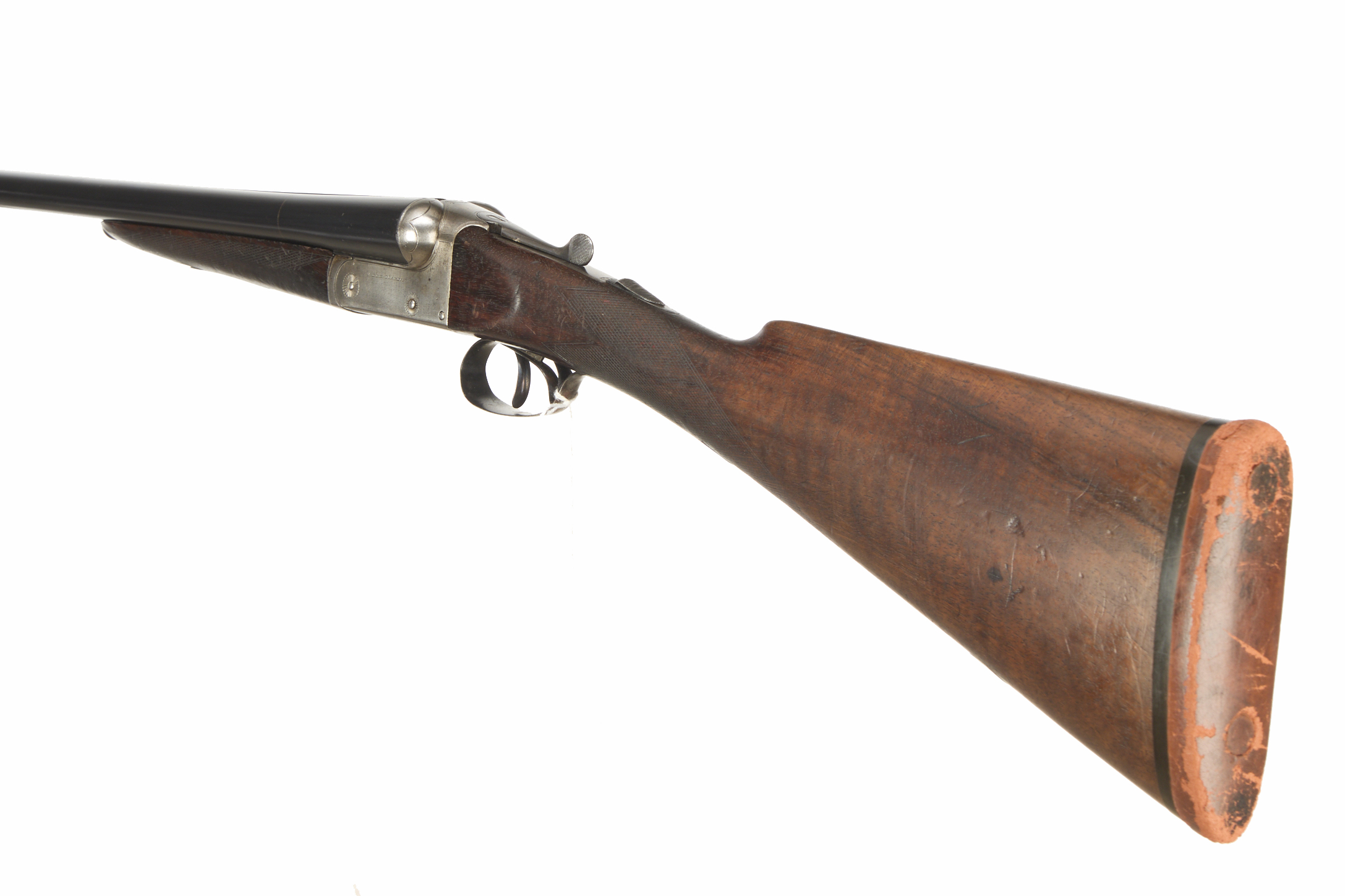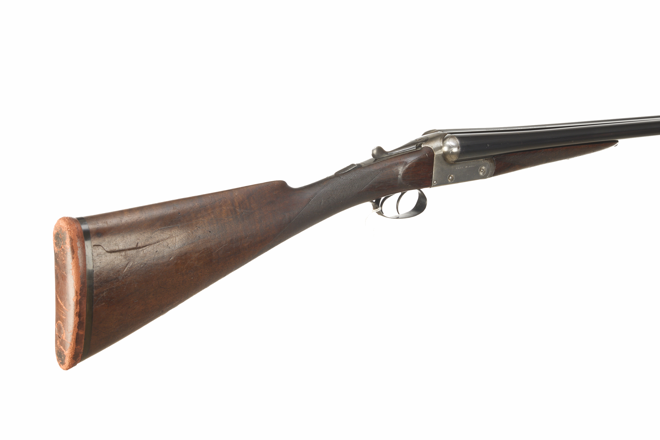 Rubber (perished) butt, chequered straight grip and forend with horn finial. Tapered rib engraved ‘SLEEVED BY SMITH & SOMERS LTD ABERDEEN’ 1964. Top lever, automatic safety with ‘SAFE’ engraved. The action unadorned.