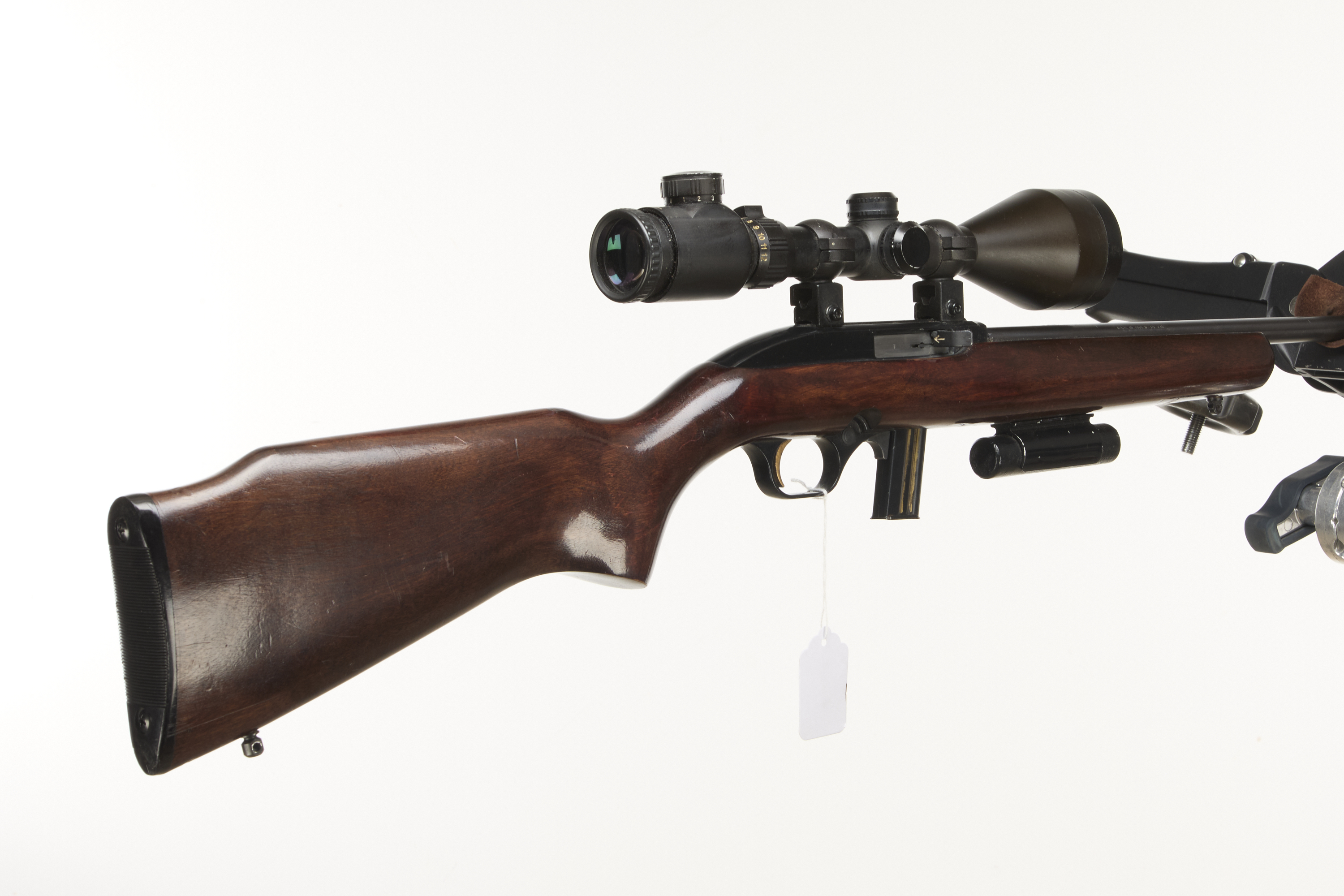 Chequered butt plate and semi-pistol grip, rounded forend. Screwcut, Detachable magazine.