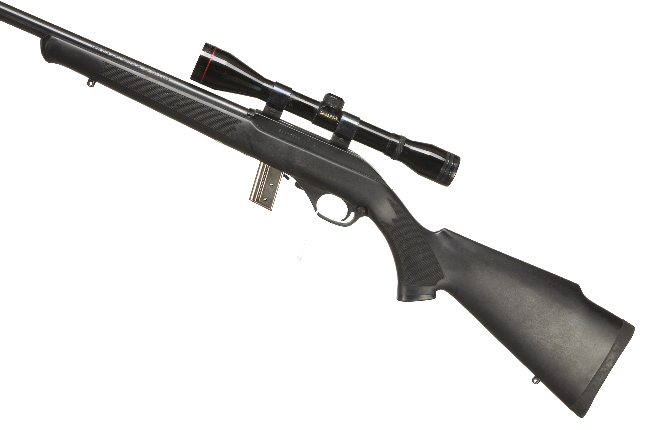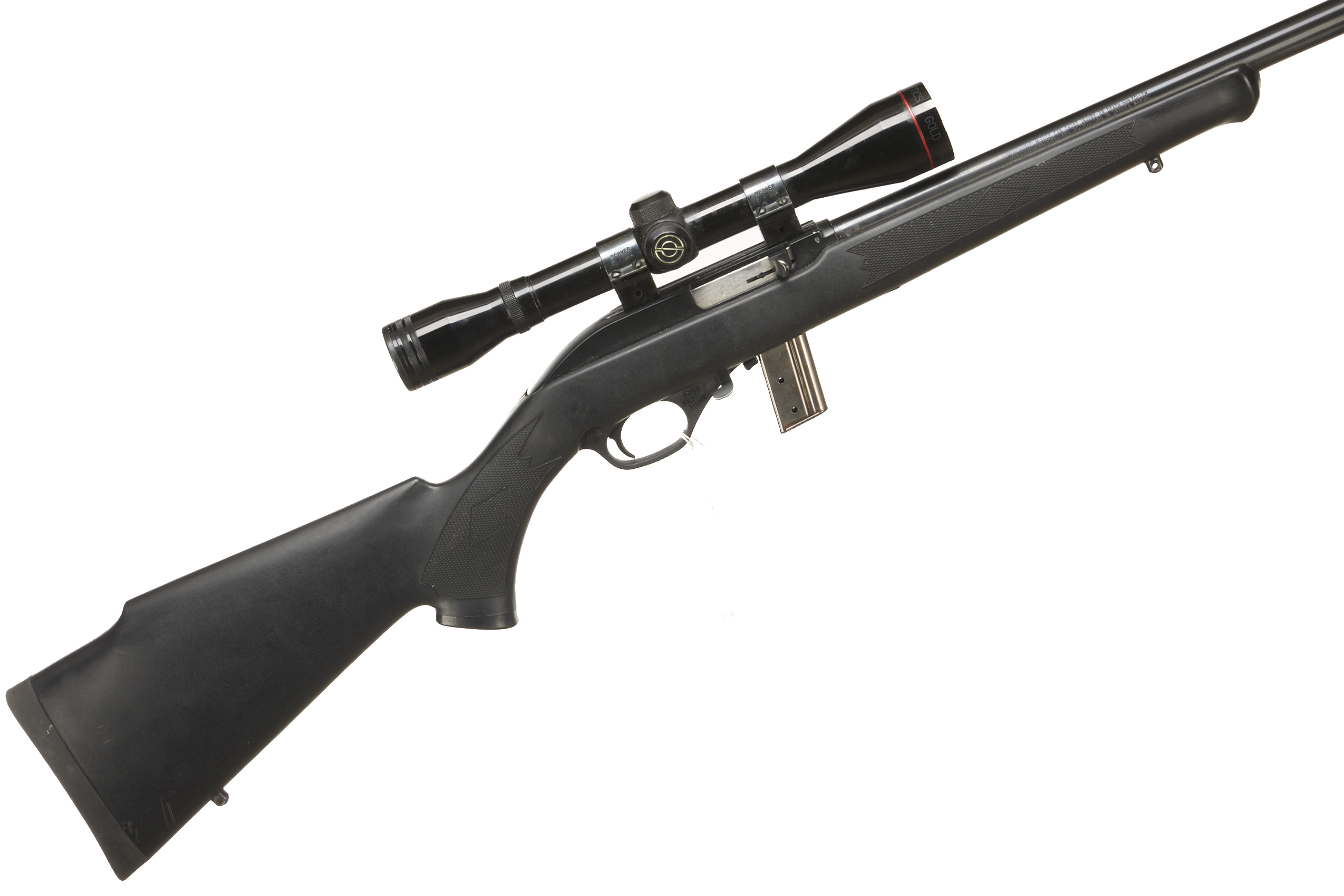 Cushioned butt plate and semi-pistol grip, Synthetic stock. Schnabel forend. Screwcut. Detachable magazine.