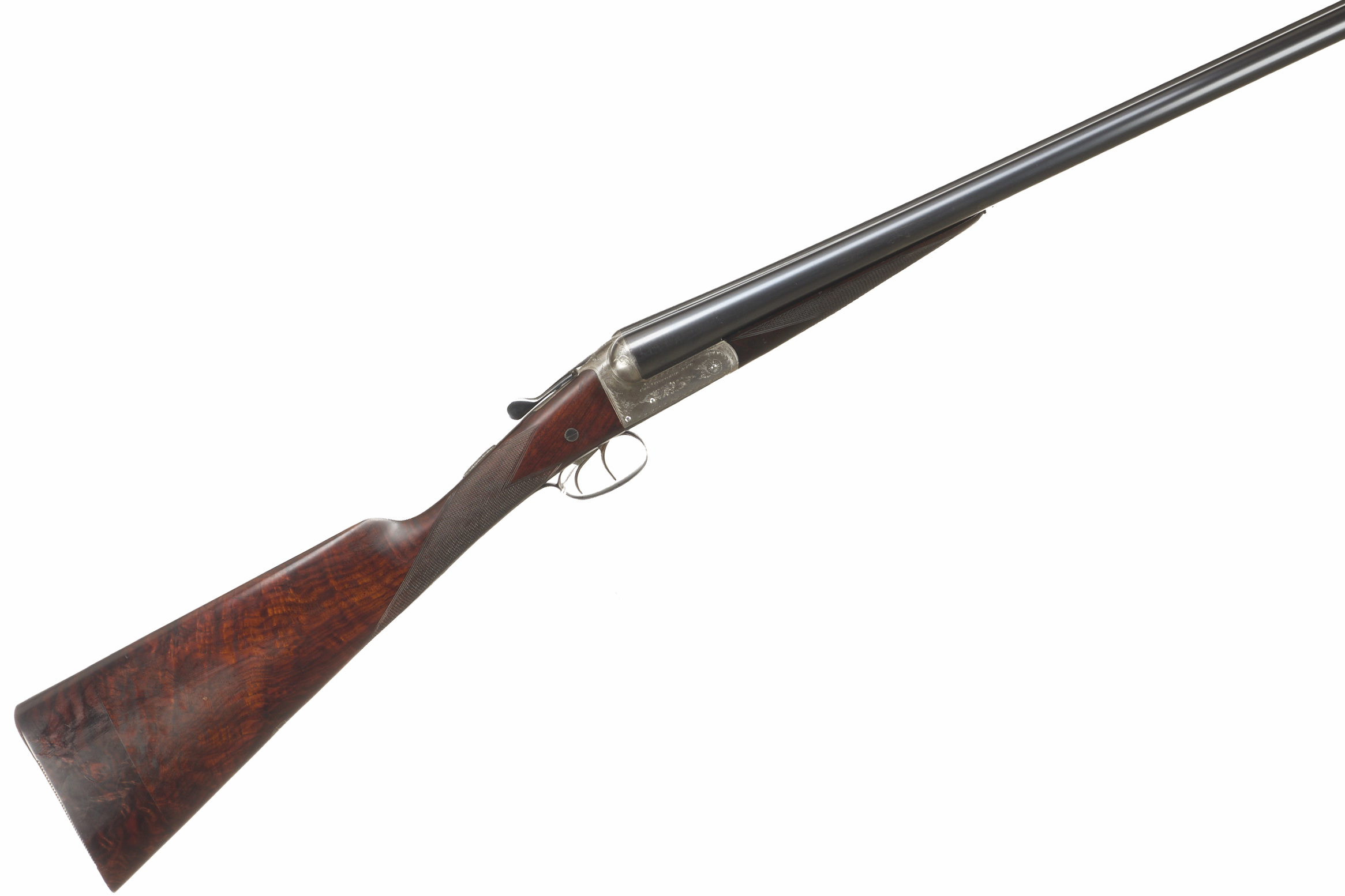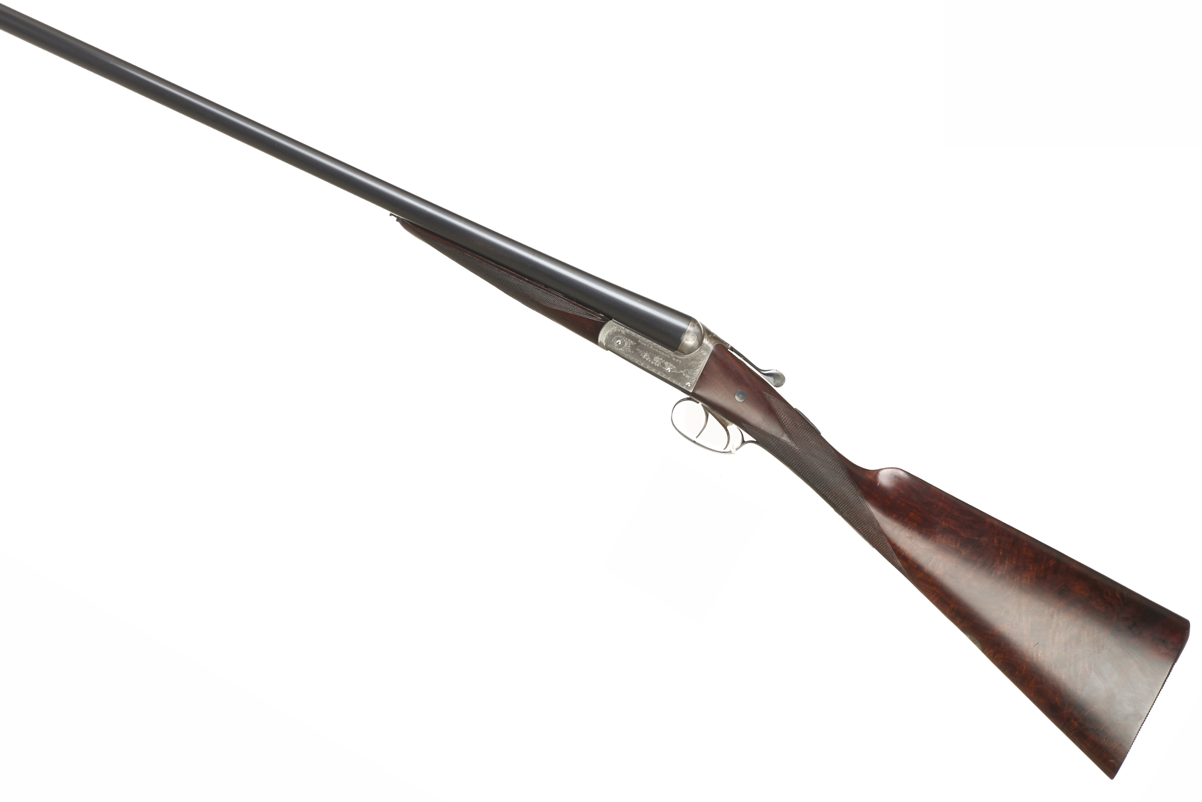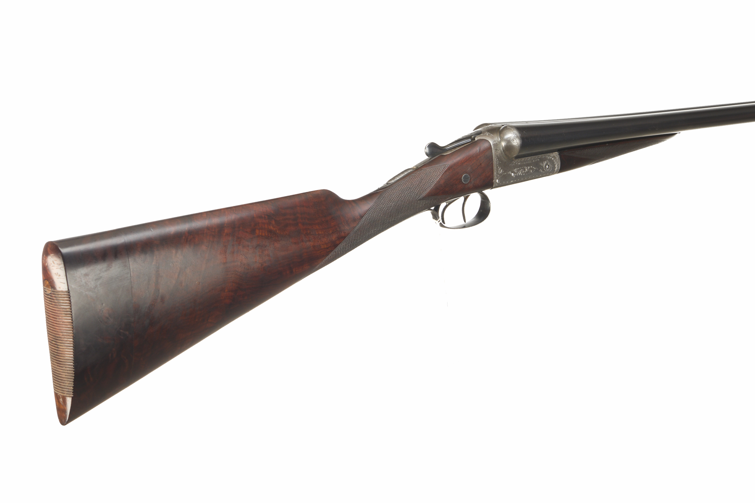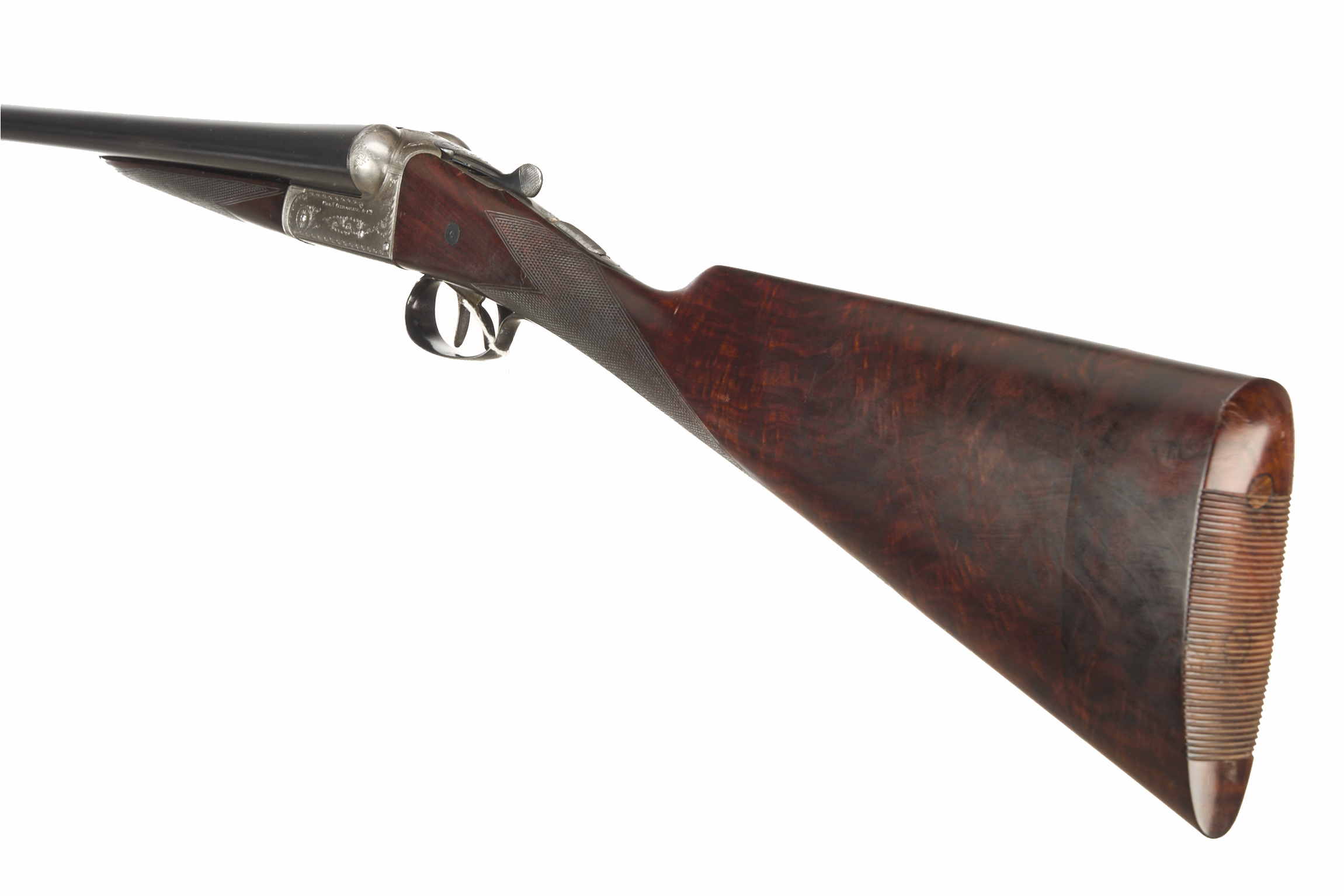 Ribbed butt, well-matched extension to nicely figured stock, chequered straight grip and forend. Tapered rib engraved ‘CHAS OSBORNE & CO LONDON’. Top lever, automatic safety with ‘SAFE’ inlaid in gold. The action bright with acanthus scrolling.