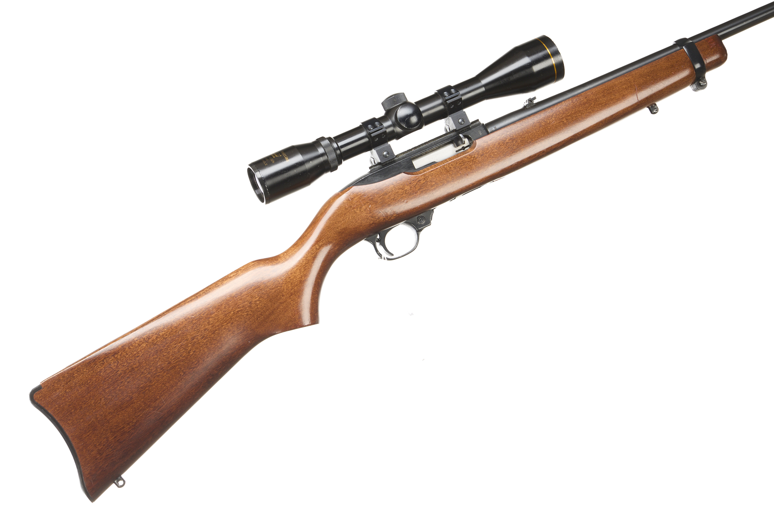 Smooth butt plate, semi-pistol grip, rounded forend. Screwcut, post foresight, rearsight. Sound moderator. Detachable magazine. Sling studs.