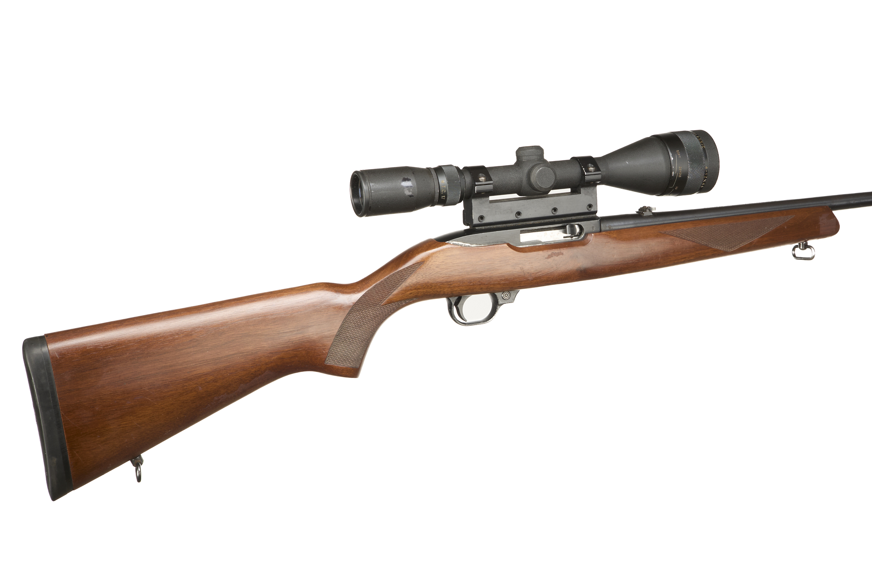 Rubber butt, semi-pistol grip, rounded forend. Screwcut, bedaforesight, folding rearsight. Detachable magazine, safety. Simmons Whitetail 4-12 x 44 scope.