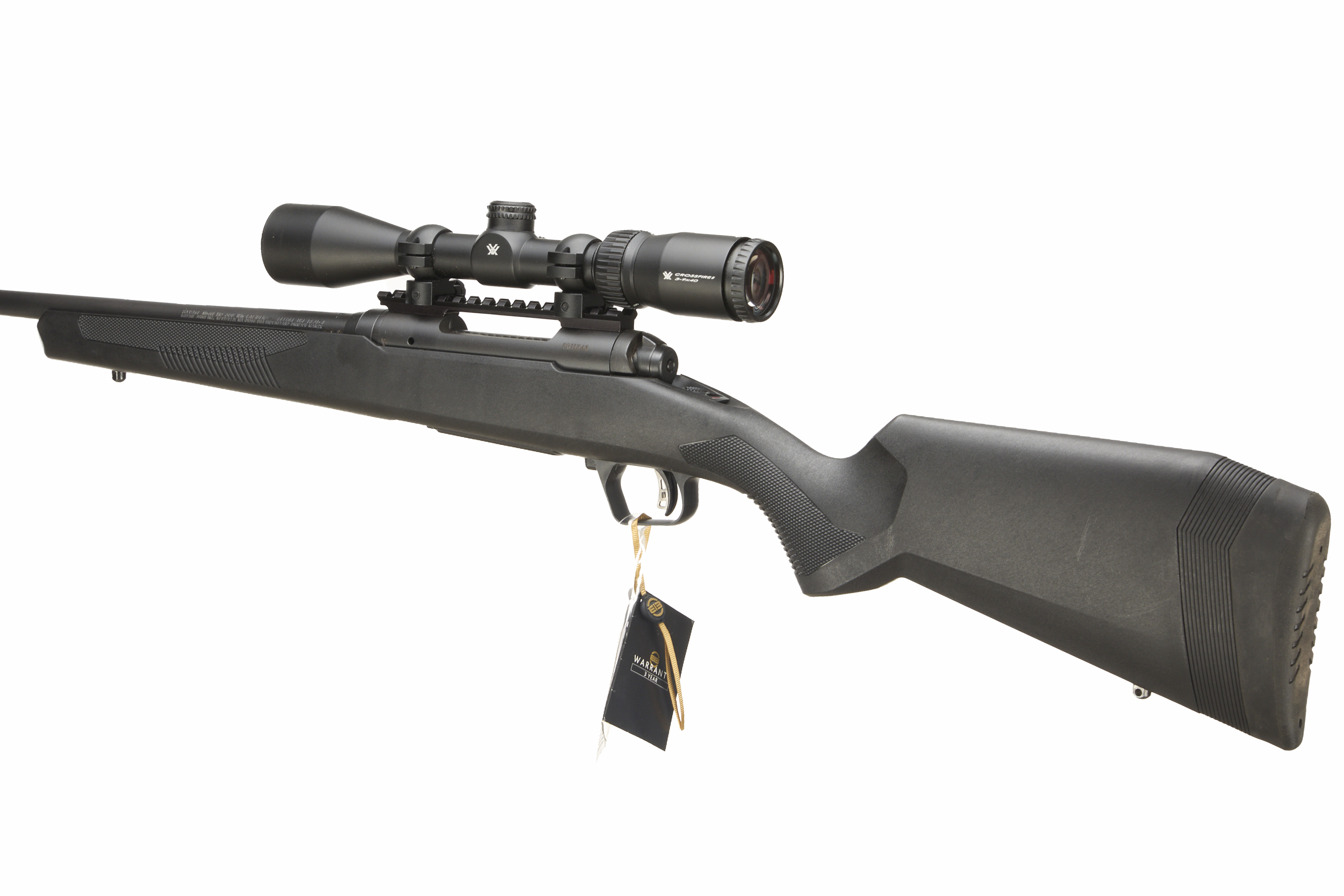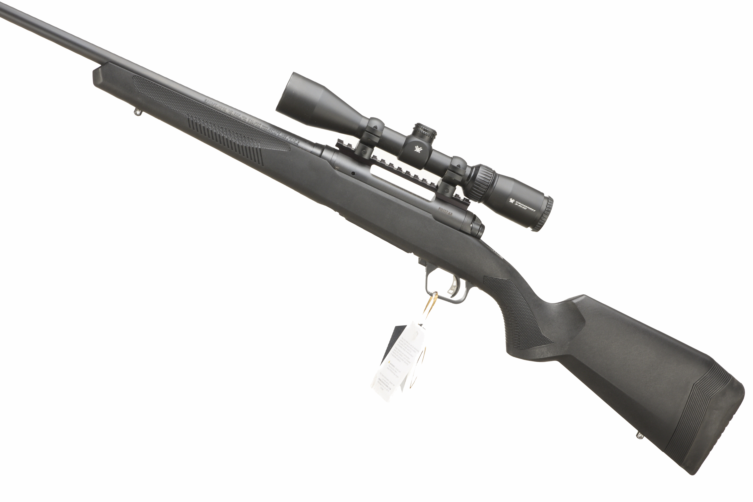 Cushioned butt. Synthetic stock with semi-pistol grip, rounded forend. Screwcut muzzle, swivel studs. unsighted barrel. Detachable magazine.