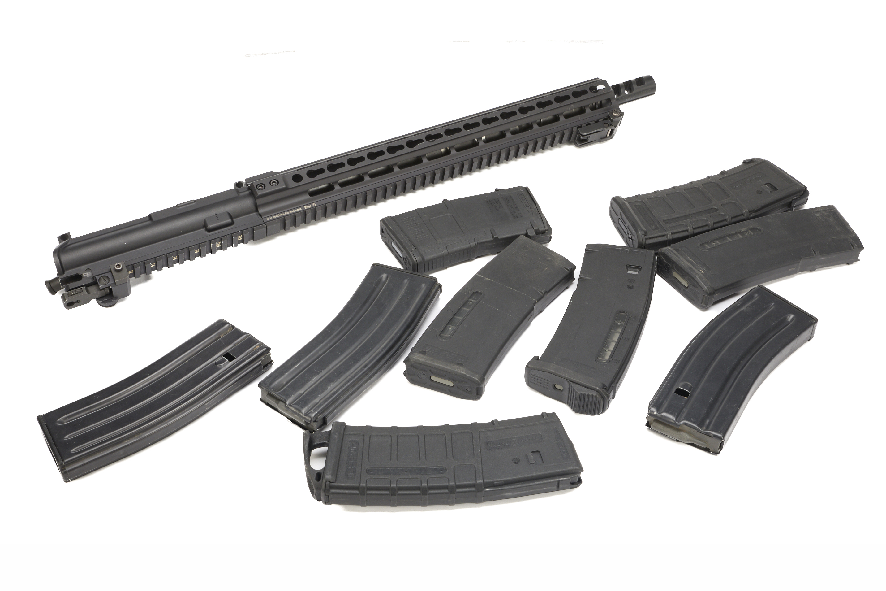 Has spare barrel and nine spare Magazines mixed Emag, Magpul and RG brands.