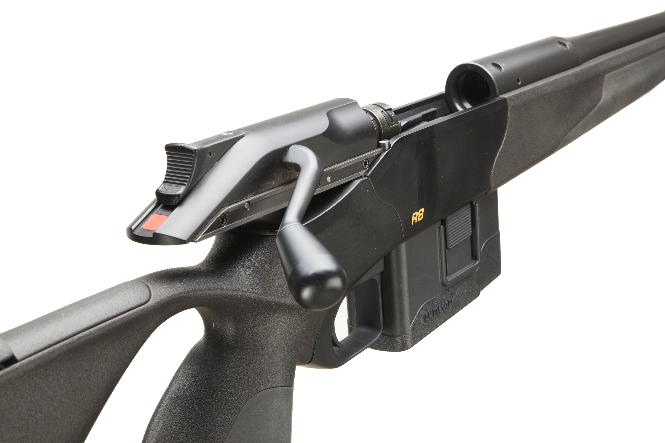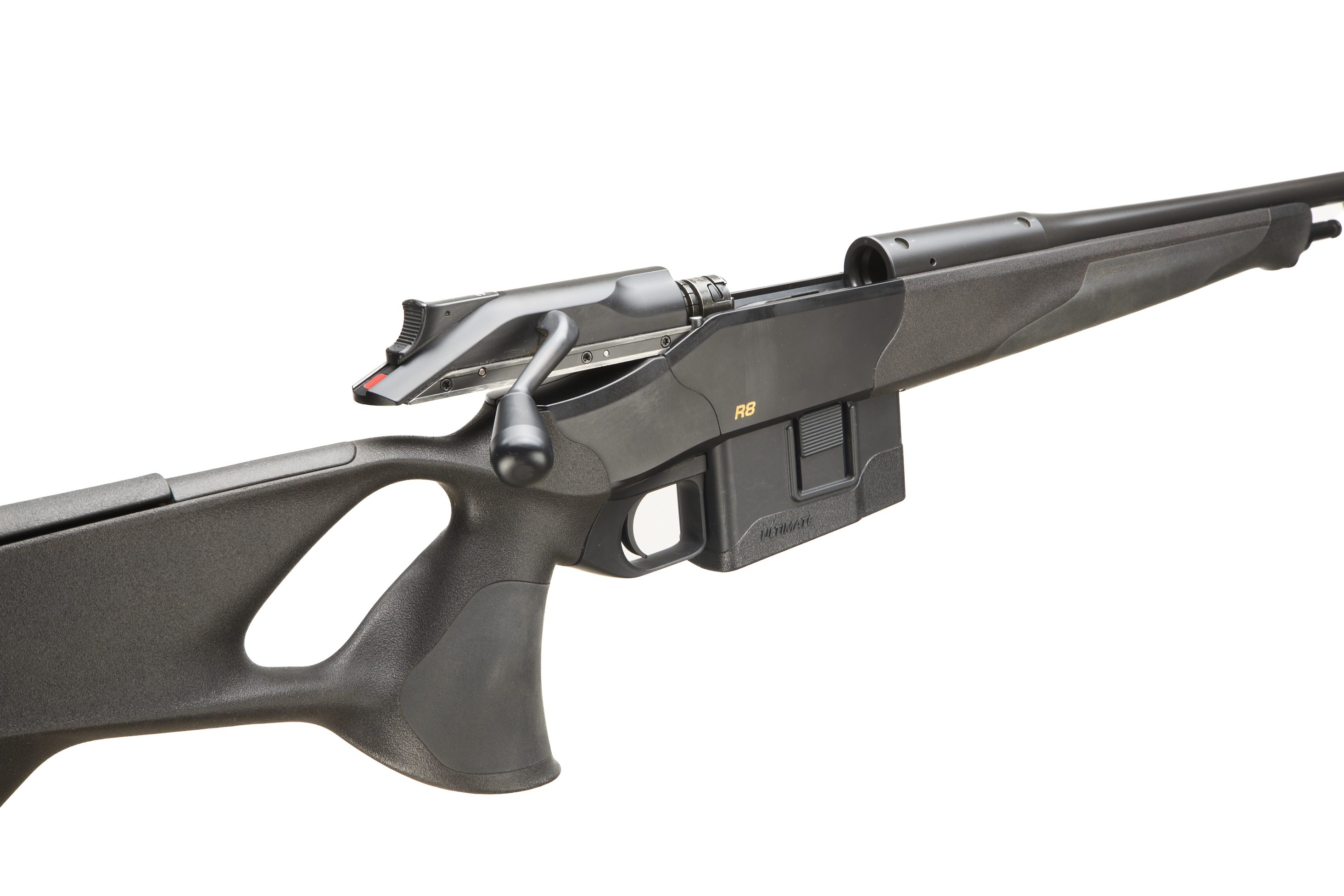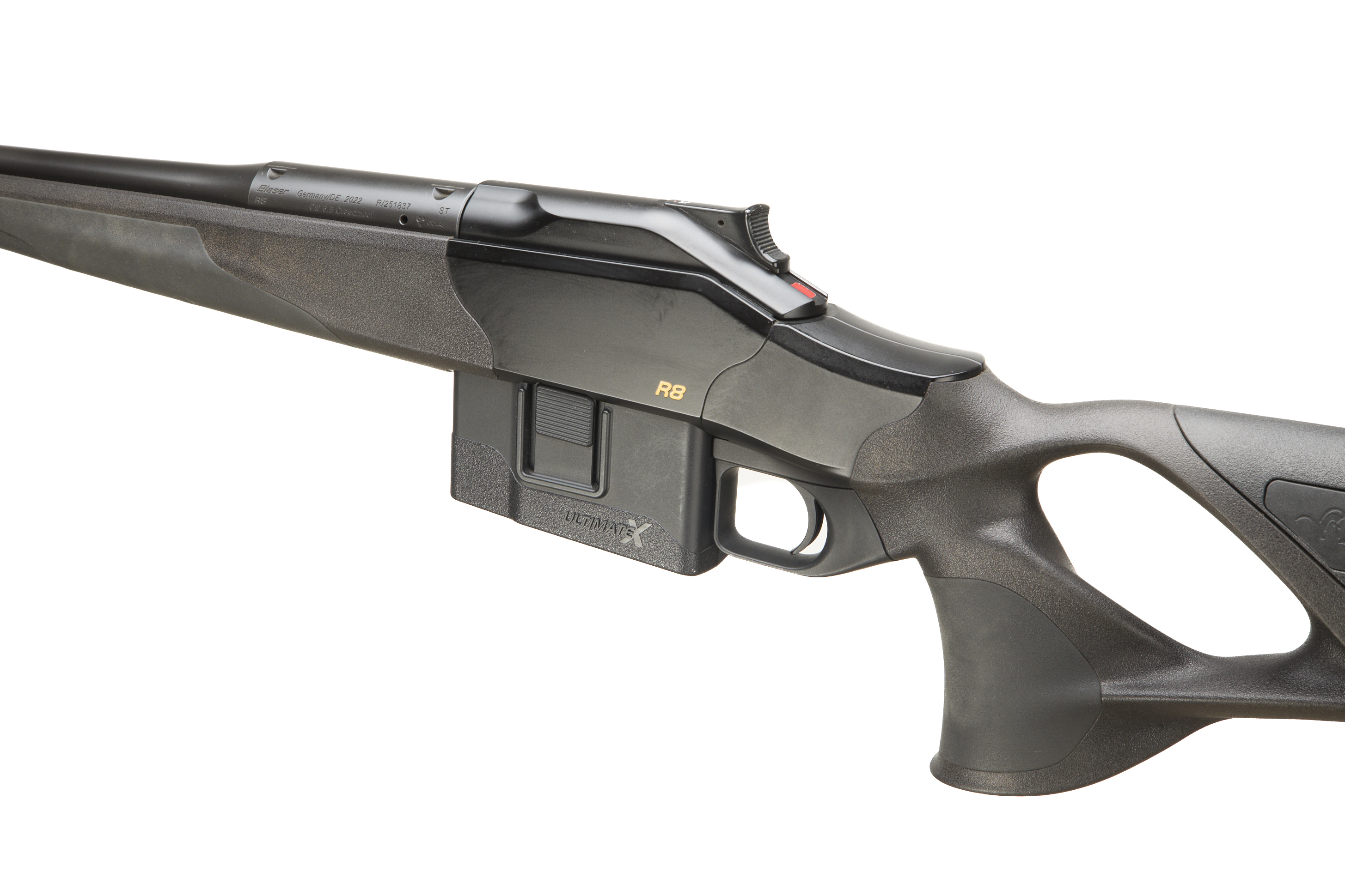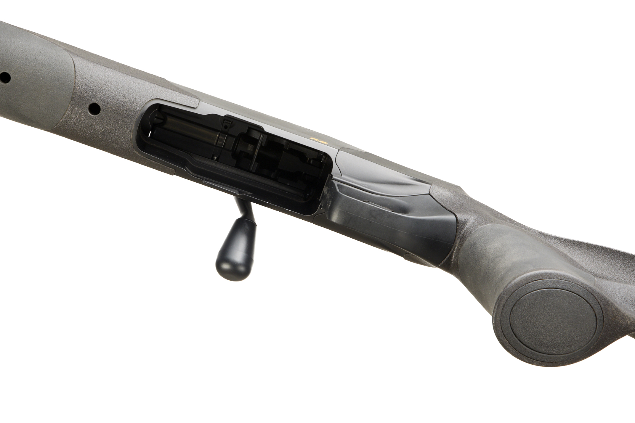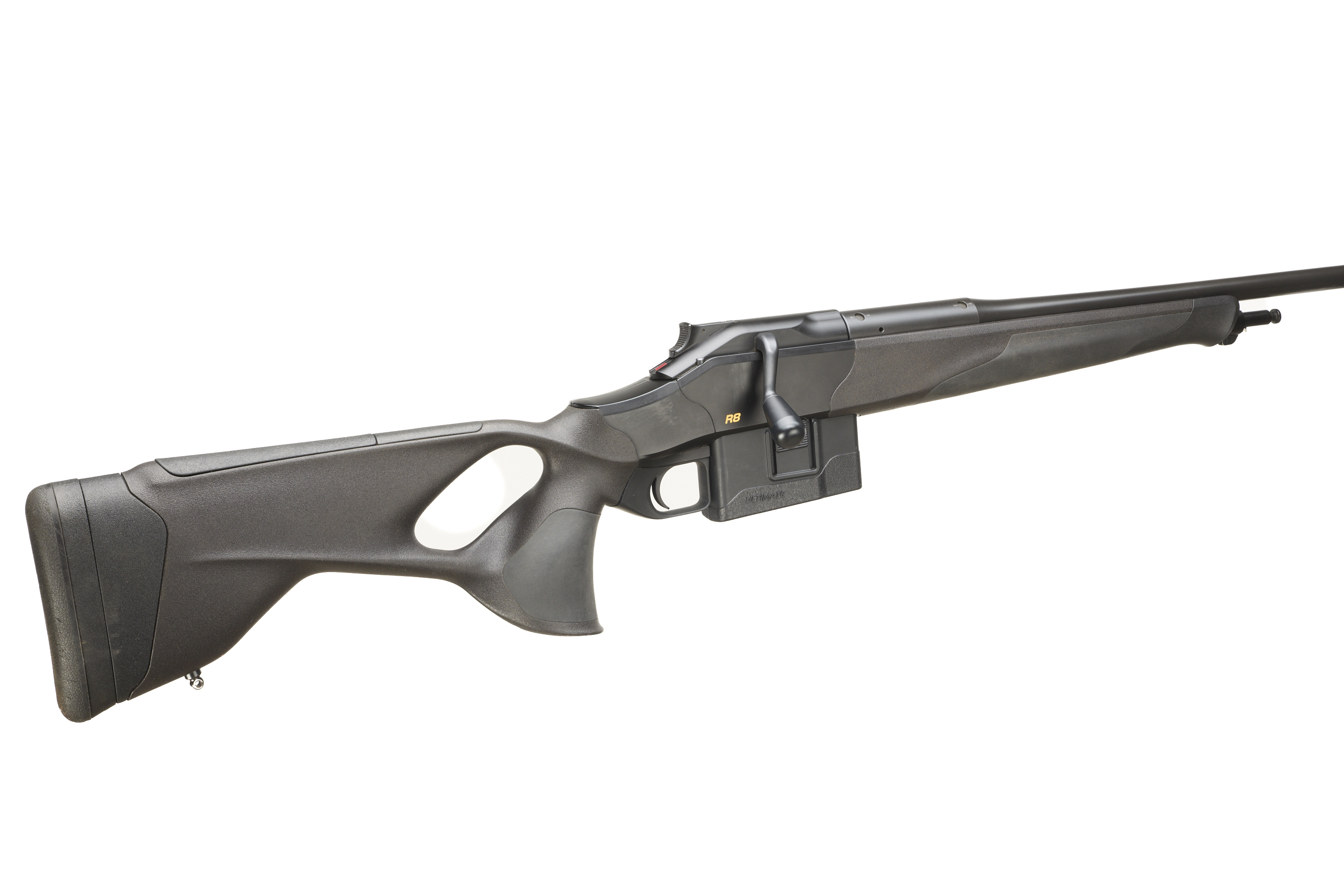 Cushioned extendable butt, Synthetic stock, adjustable cheek comb. semi-pistol grip, Schnabel forend. Sling attachments. Screw cut muzzle, unsighted barrel. Bipod attachment. detachable magazine.
