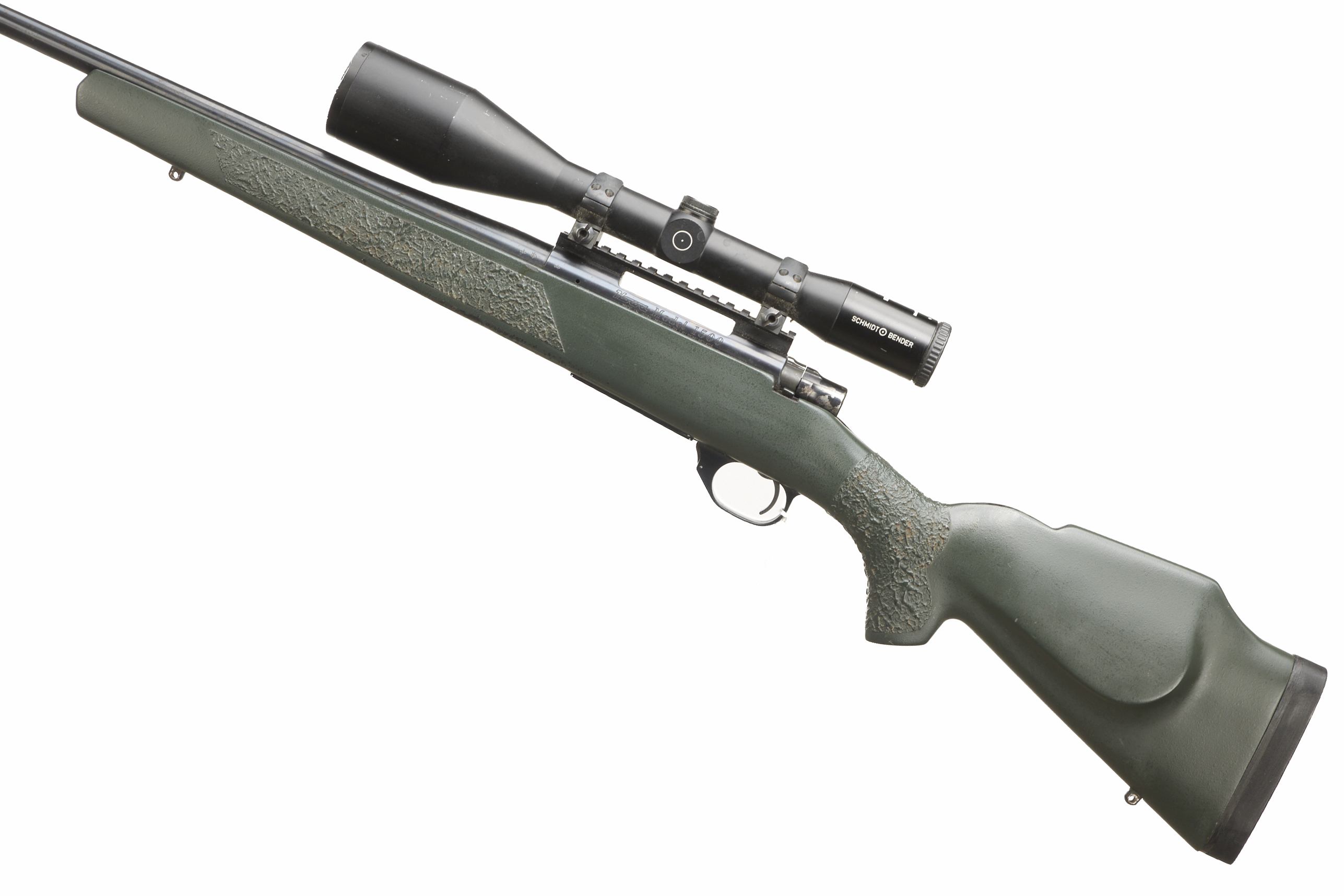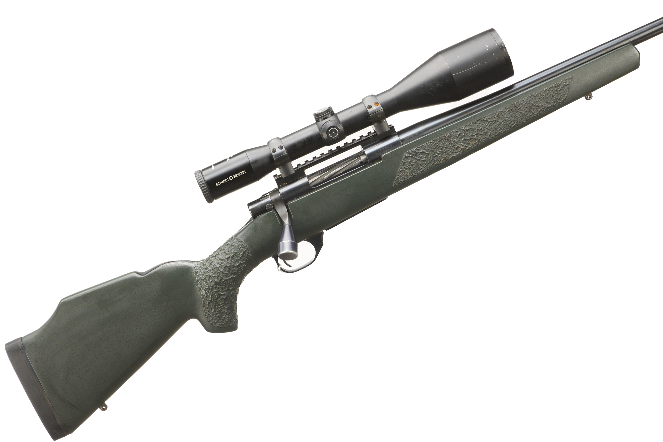 Cushioned butt, semi-pistol grip, Synthetic stock with rounded forend. Screwcut muzzle, unsighted barrel. Internal magazine with hinged floor plate.