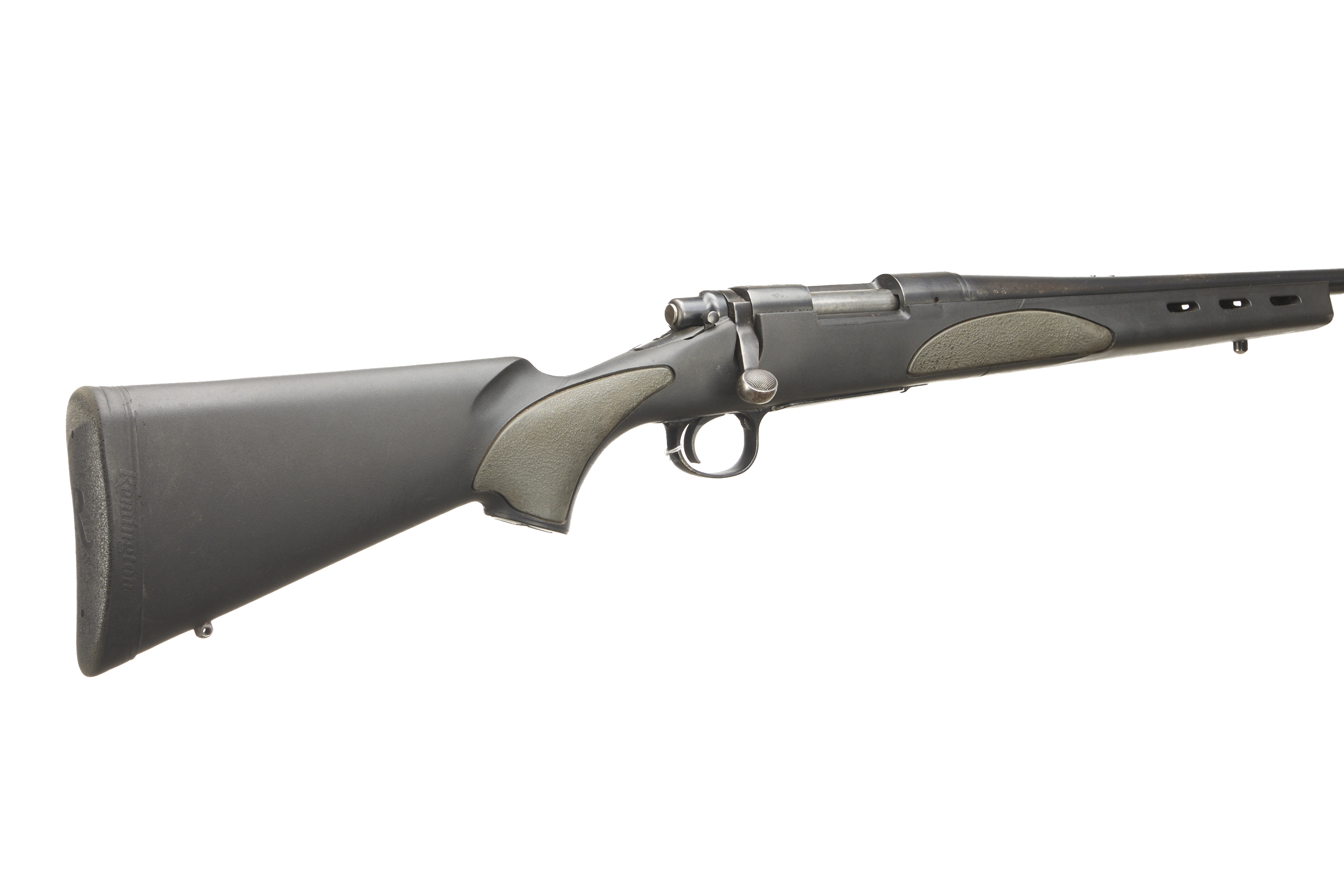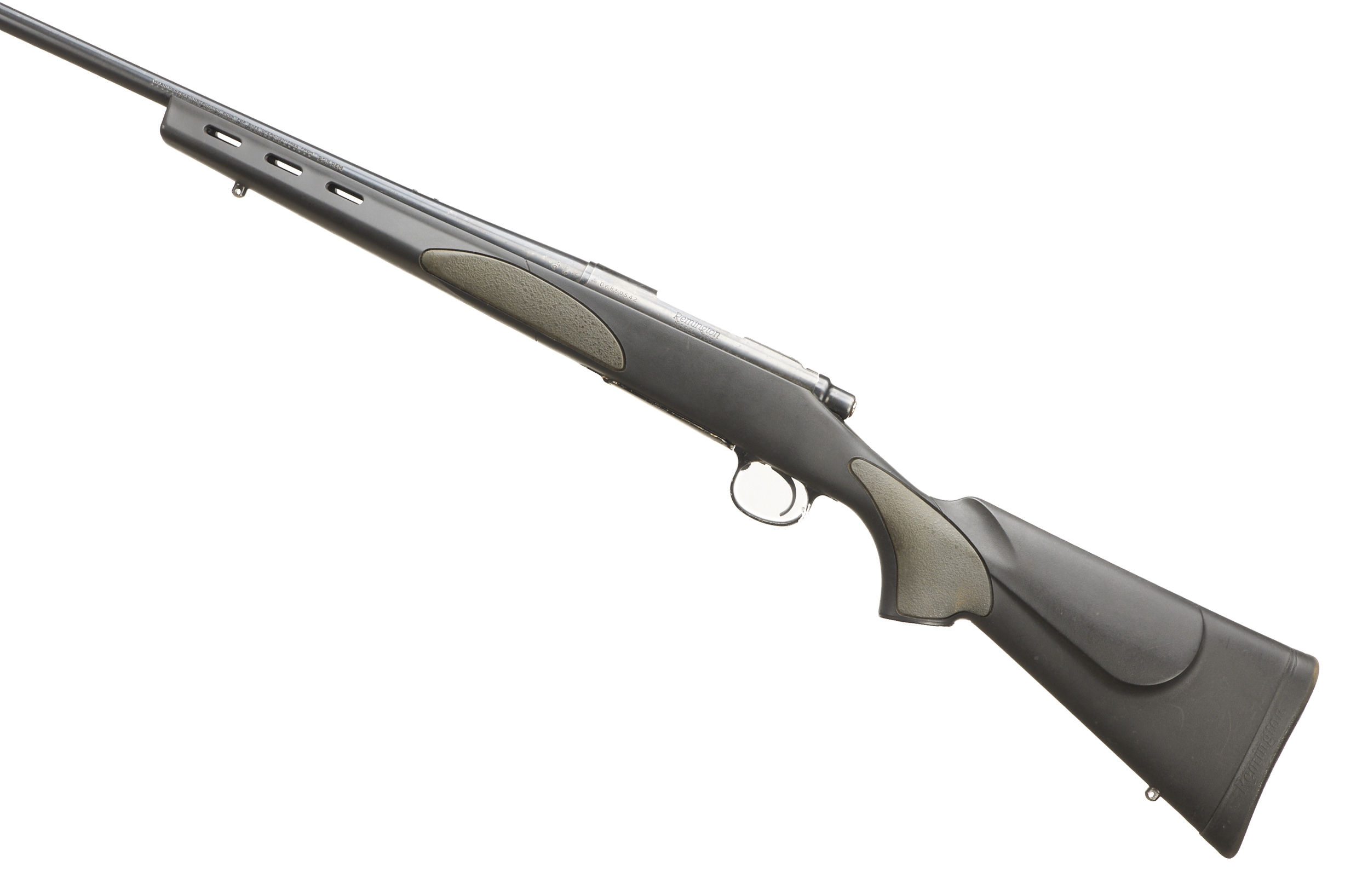 Cushioned butt, semi-pistol grip, Synthetic stock with square forend. Swivel studs. Screwcut muzzle, unsighted barrel. Internal magazine with hinged floor plate.