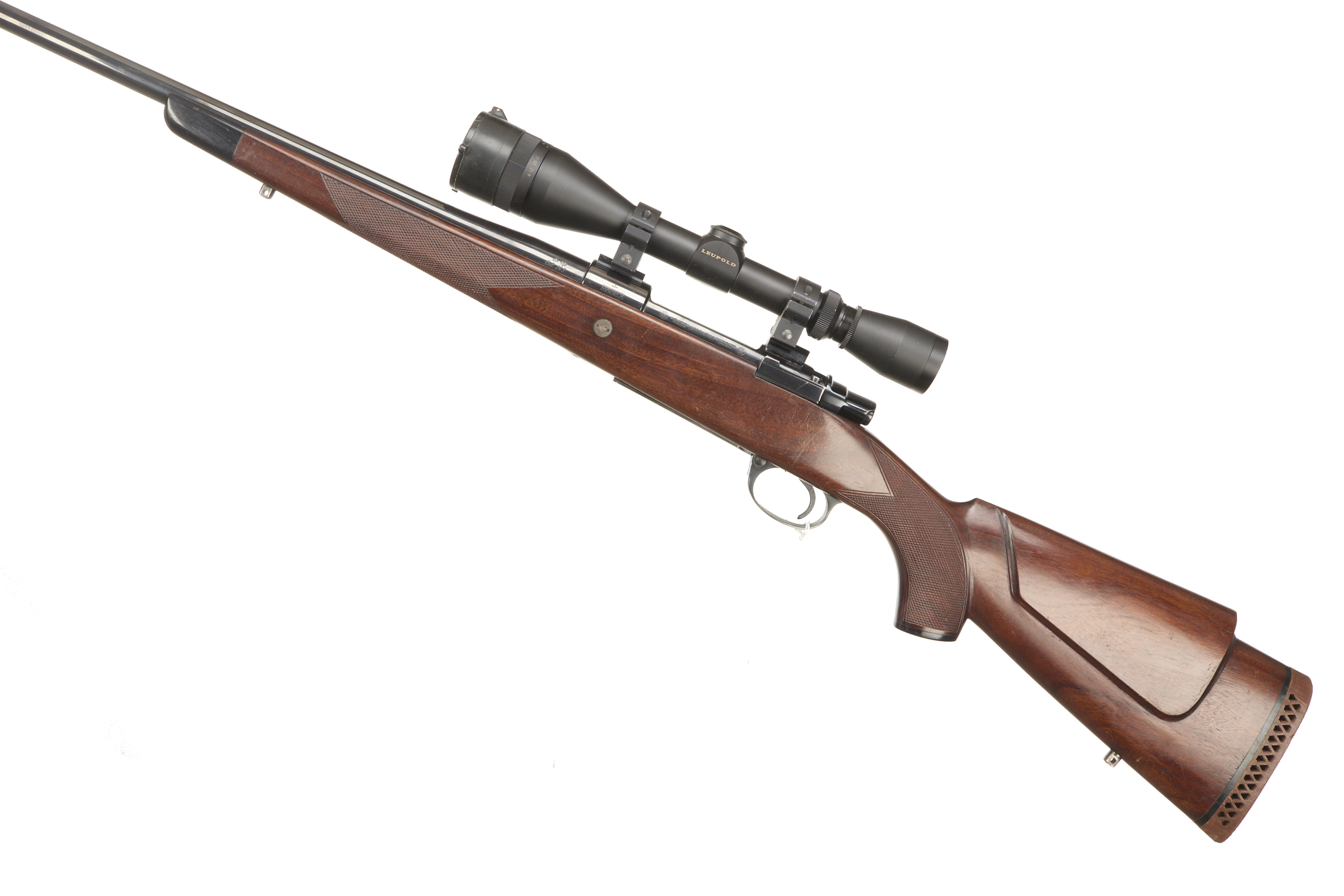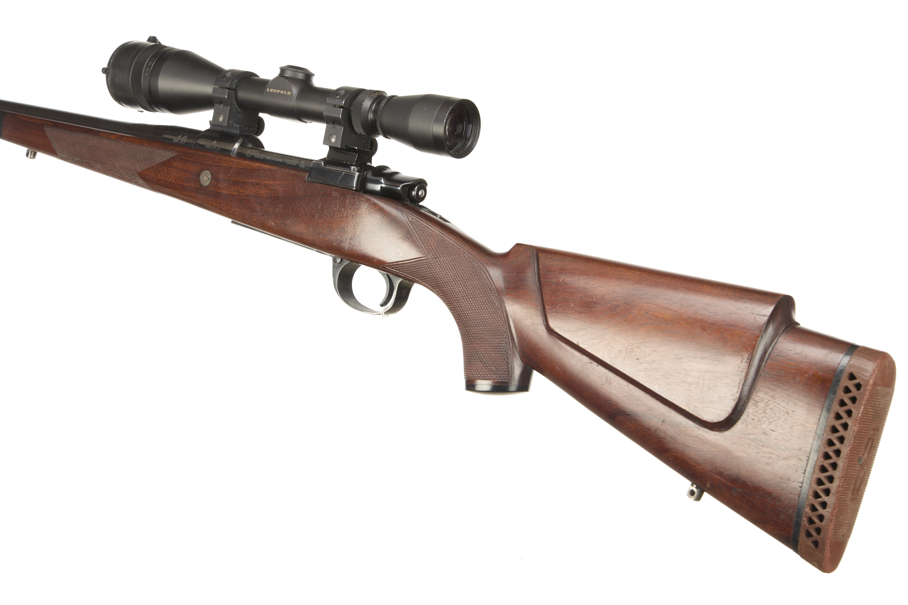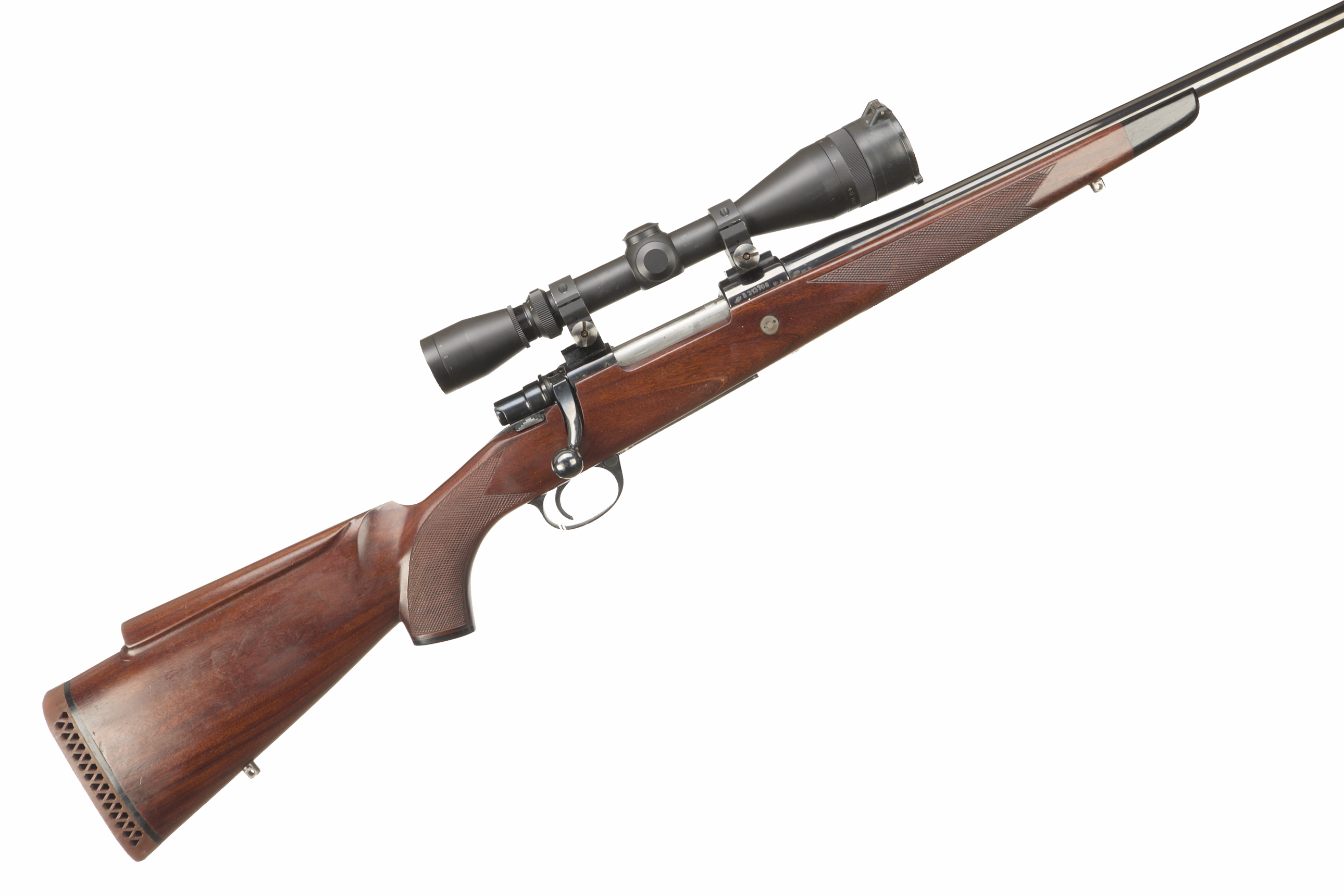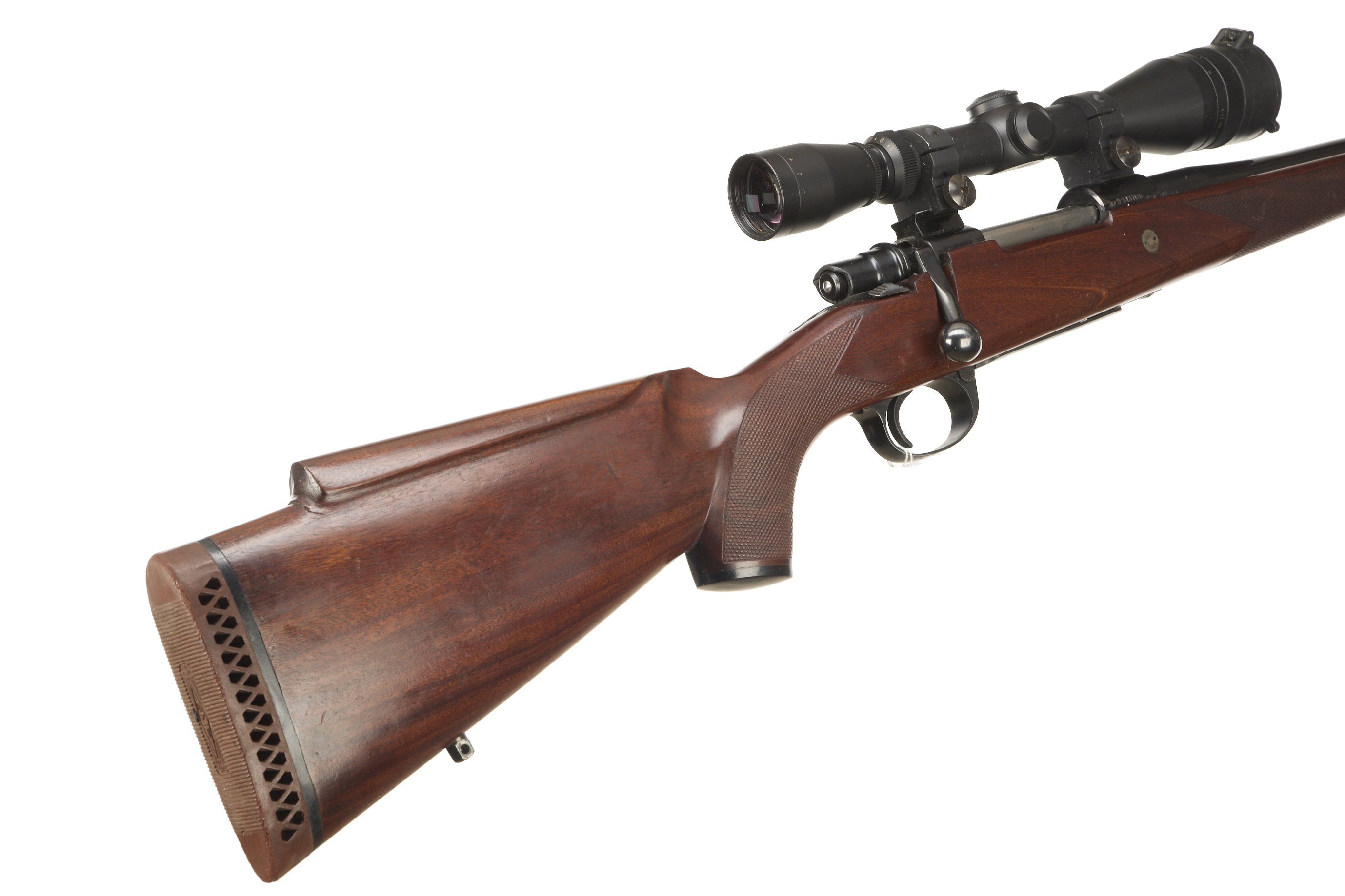 Ventilated butt, raised cheek comb semi-pistol grip, rounded forend. Sling attachments. Screwcut muzzle. Internal magazine with hinged floor plate.
