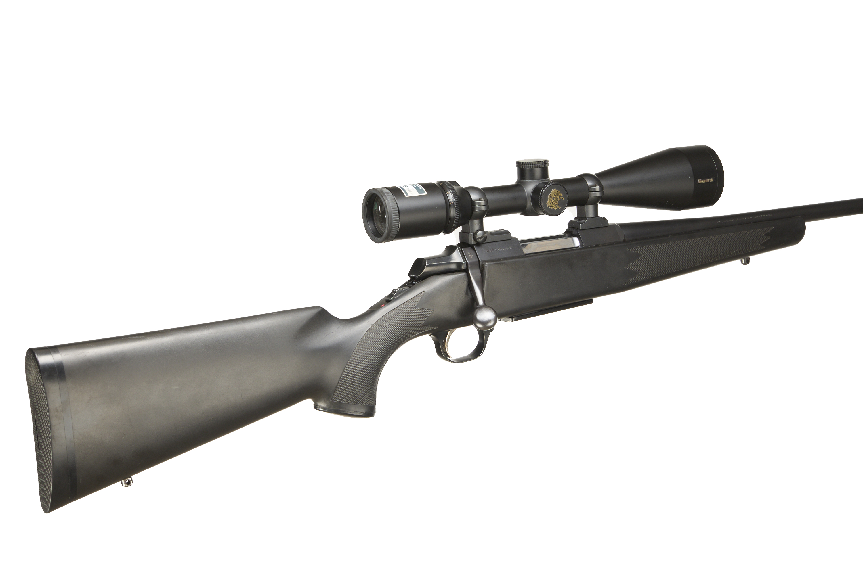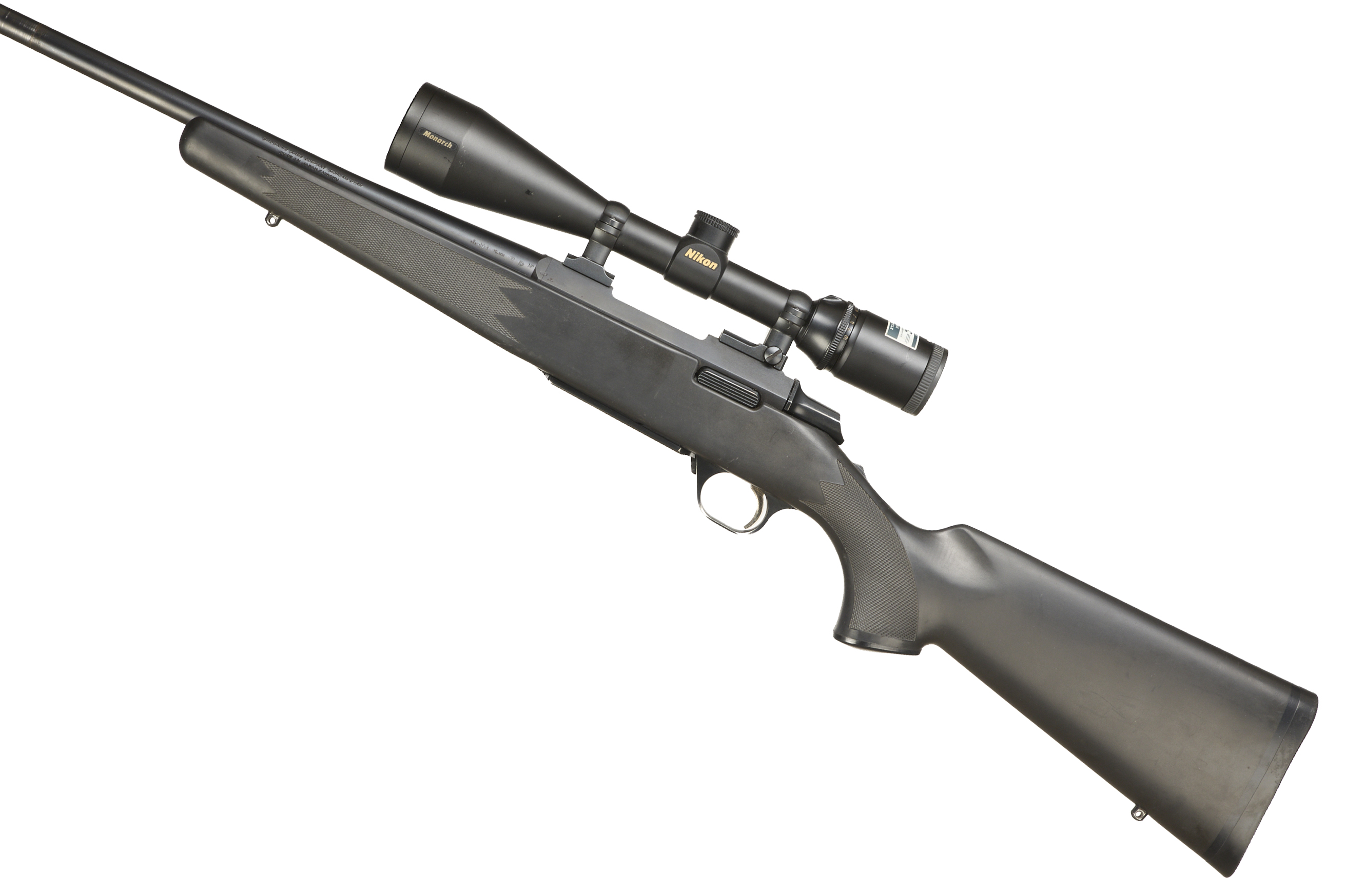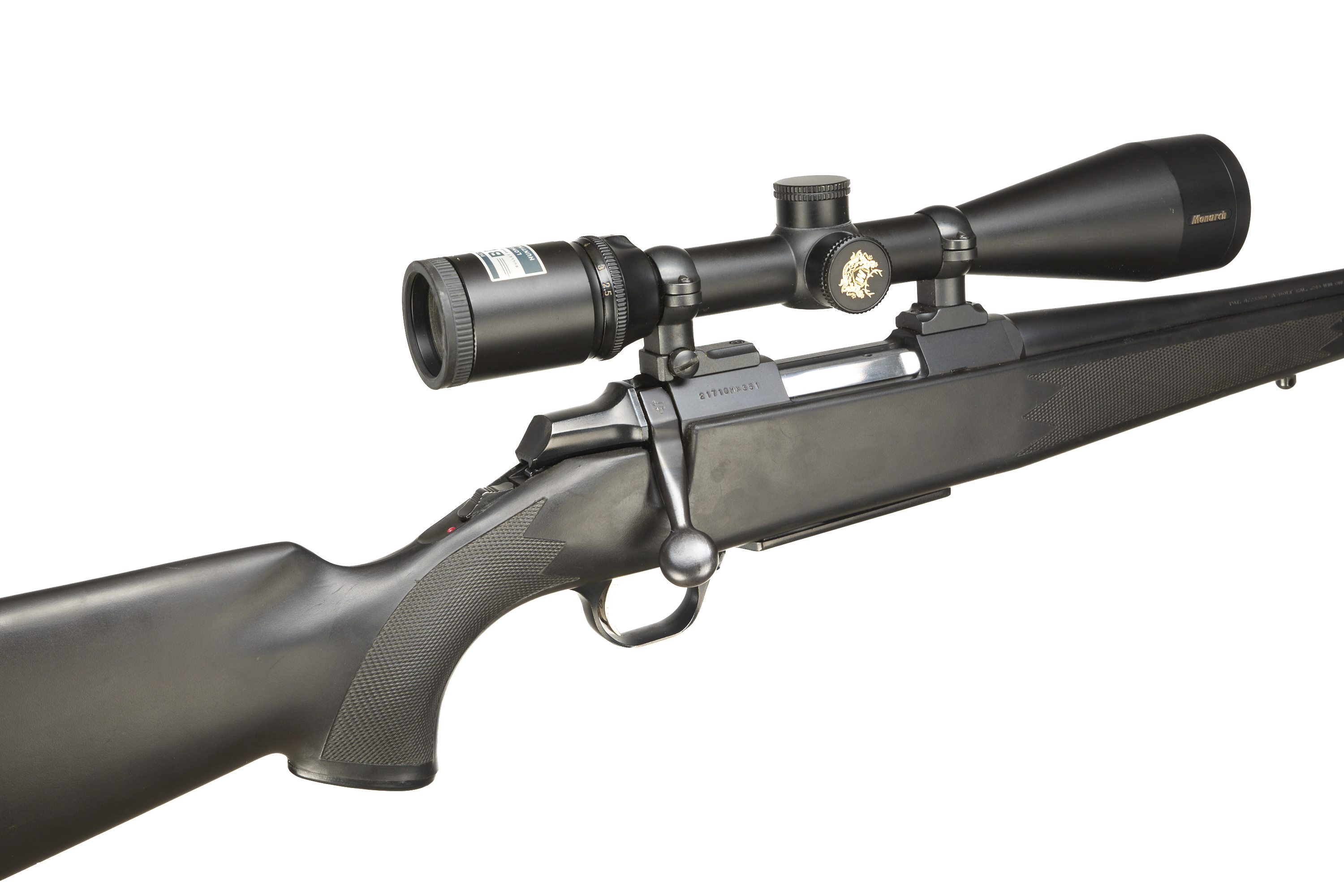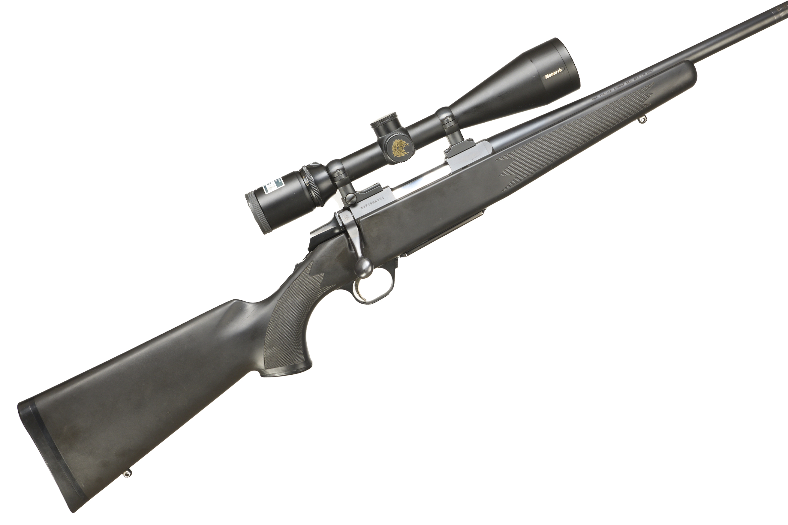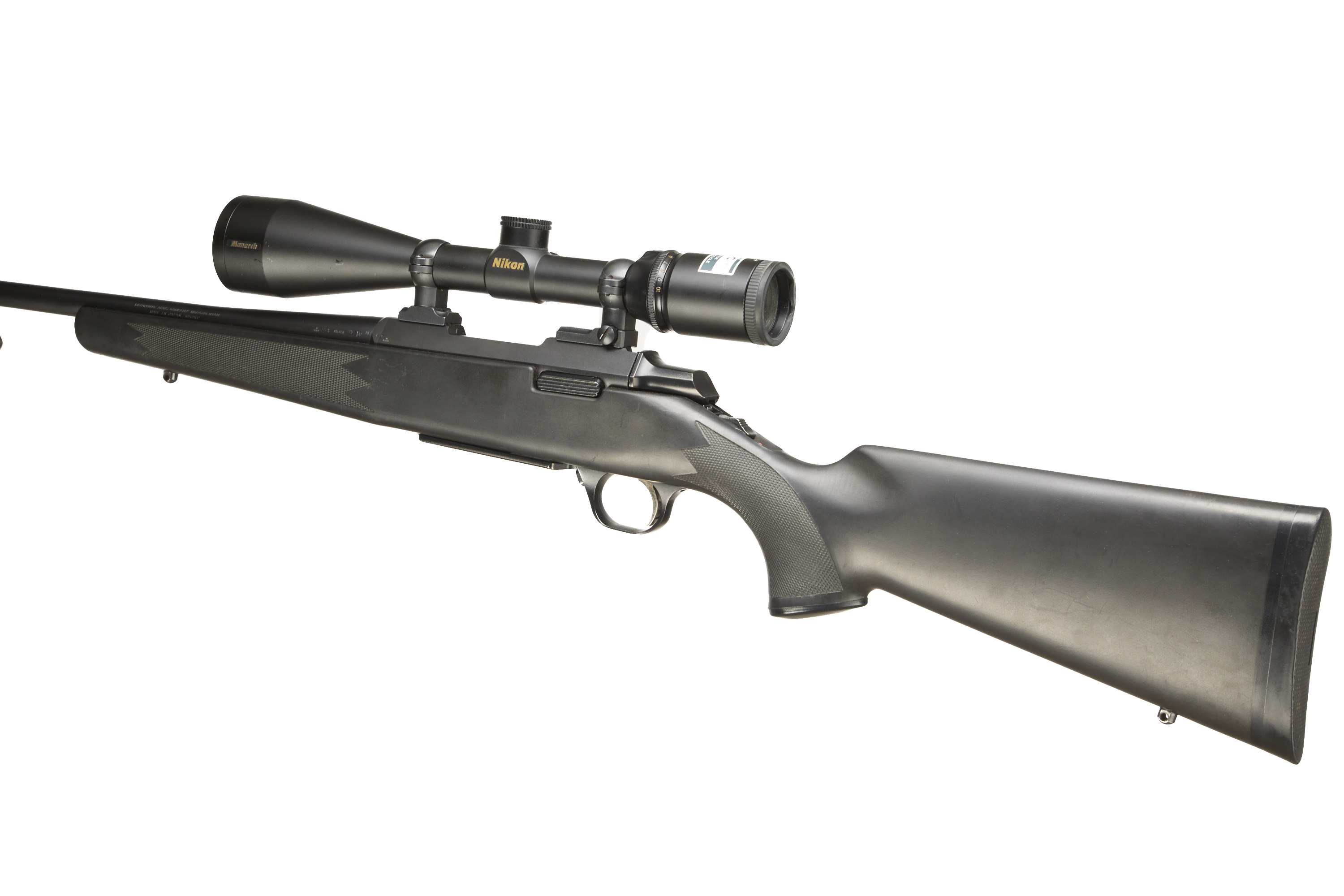 Cushioned butt, synthetic semi-pistol grip, rounded forend. Sling attachments. Screwcut. Internal magazine with hinged floor plate.