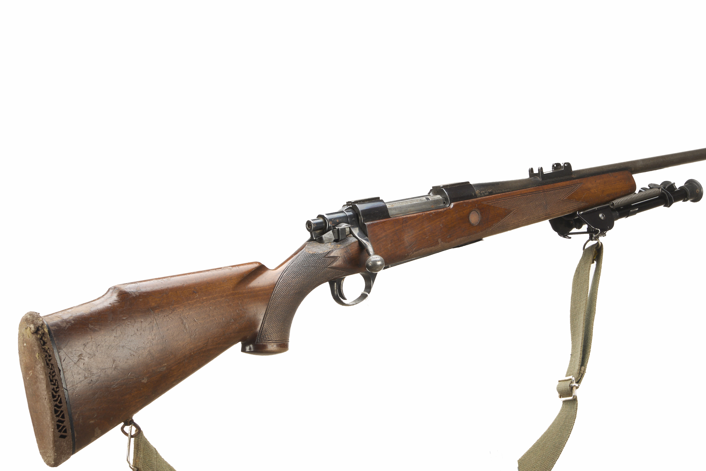 Cushioned butt, semi-pistol grip, rounded forend. Bipod. Plain muzzle, Internal magazine with hinged floor plate.