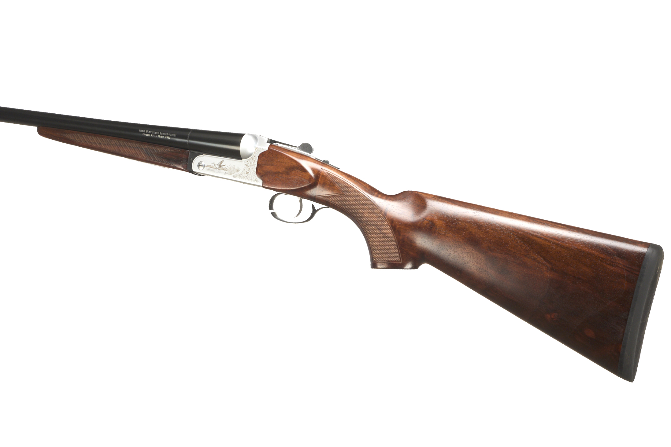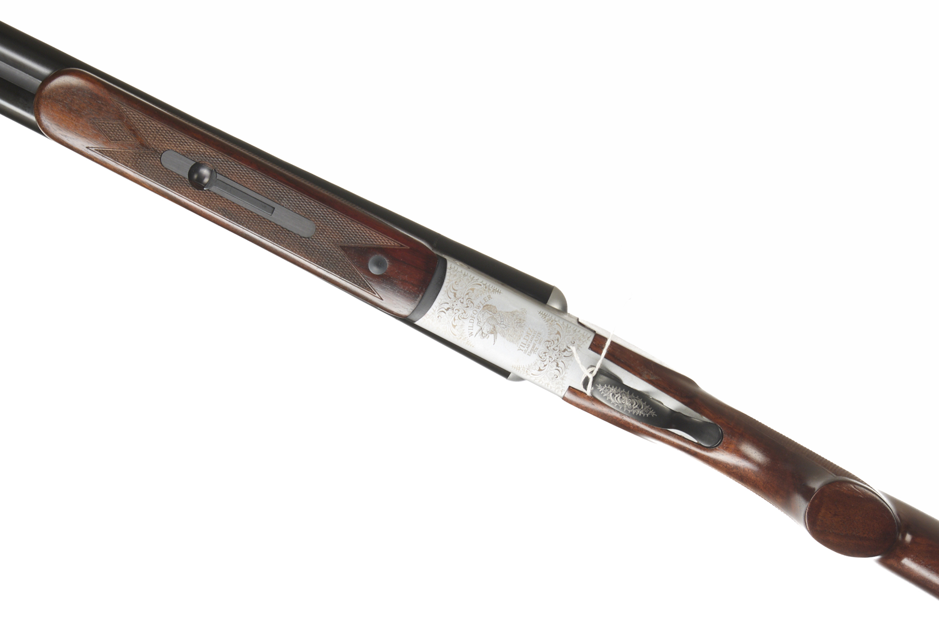 Cushioned rubber butt, chequered semi-pistol grip and forend. Extending multi-chokes, sunken rib, top lever, automatic safety with integral barrel selector. The action with avian scenes and acanthus scrolling.