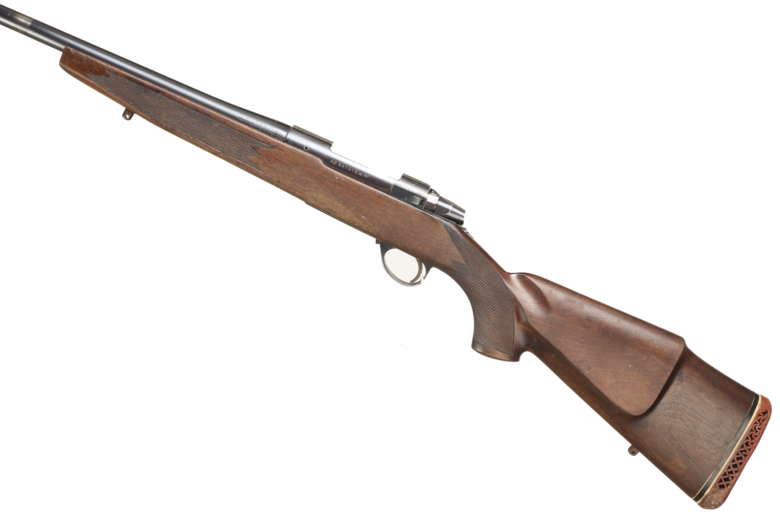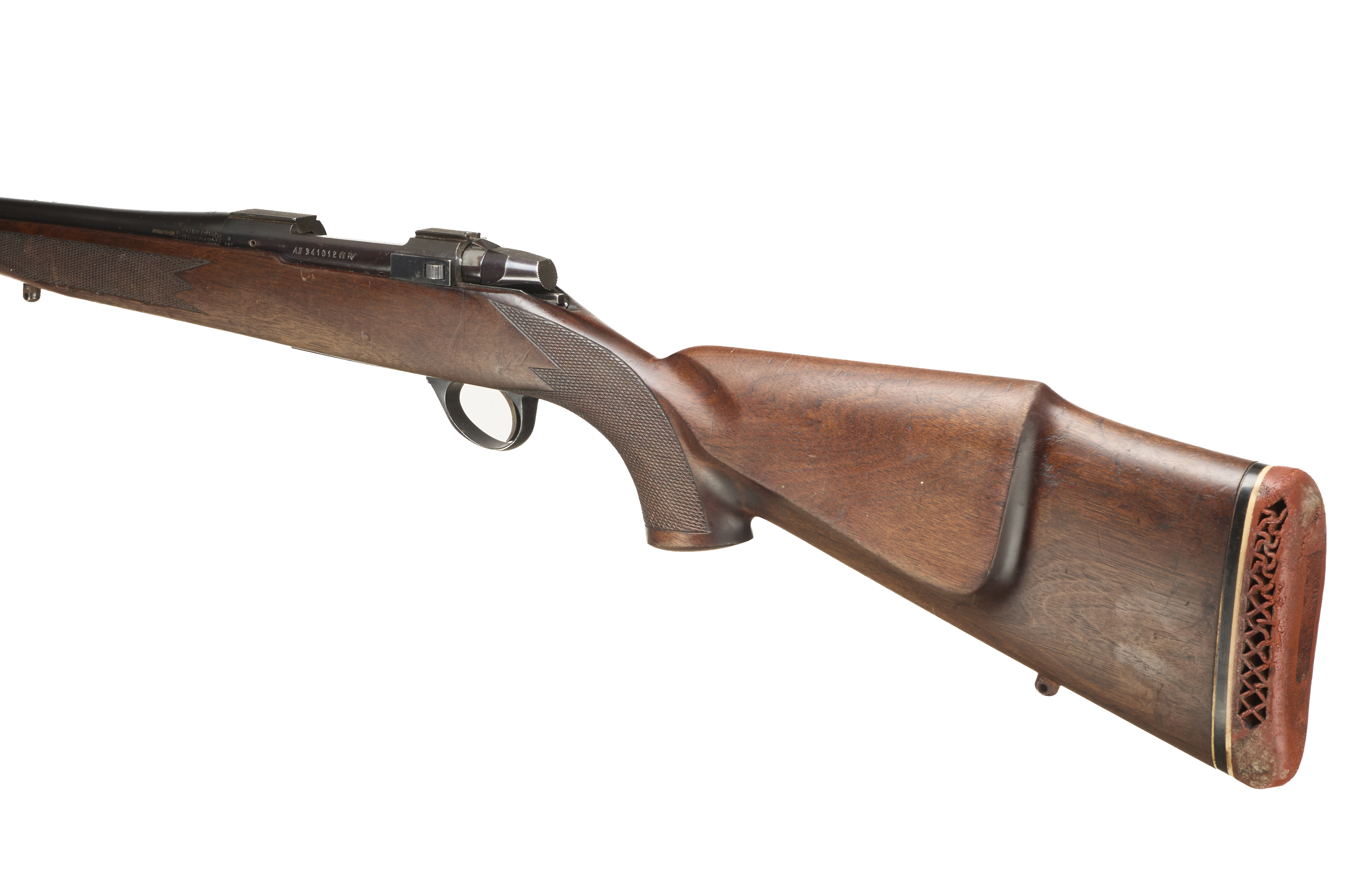 Ventilated butt, semi-pistol grip, rounded forend. Sling attachments. Screw cut muzzle, unsighted barrel. Internal magazine with hinged floor plate.