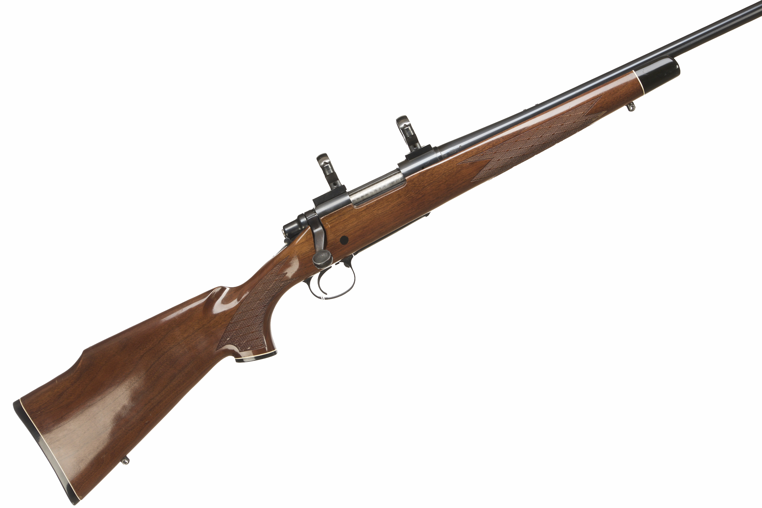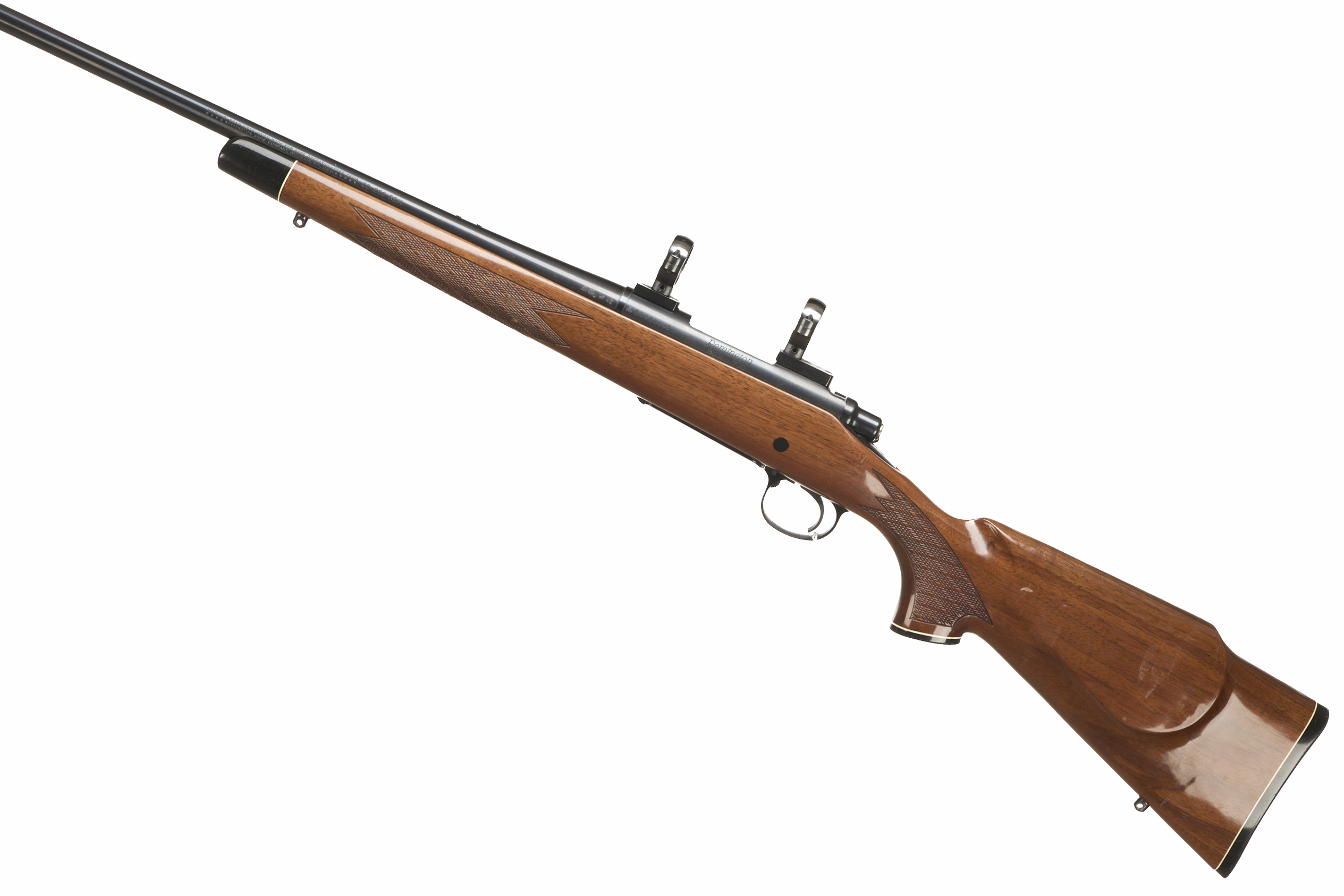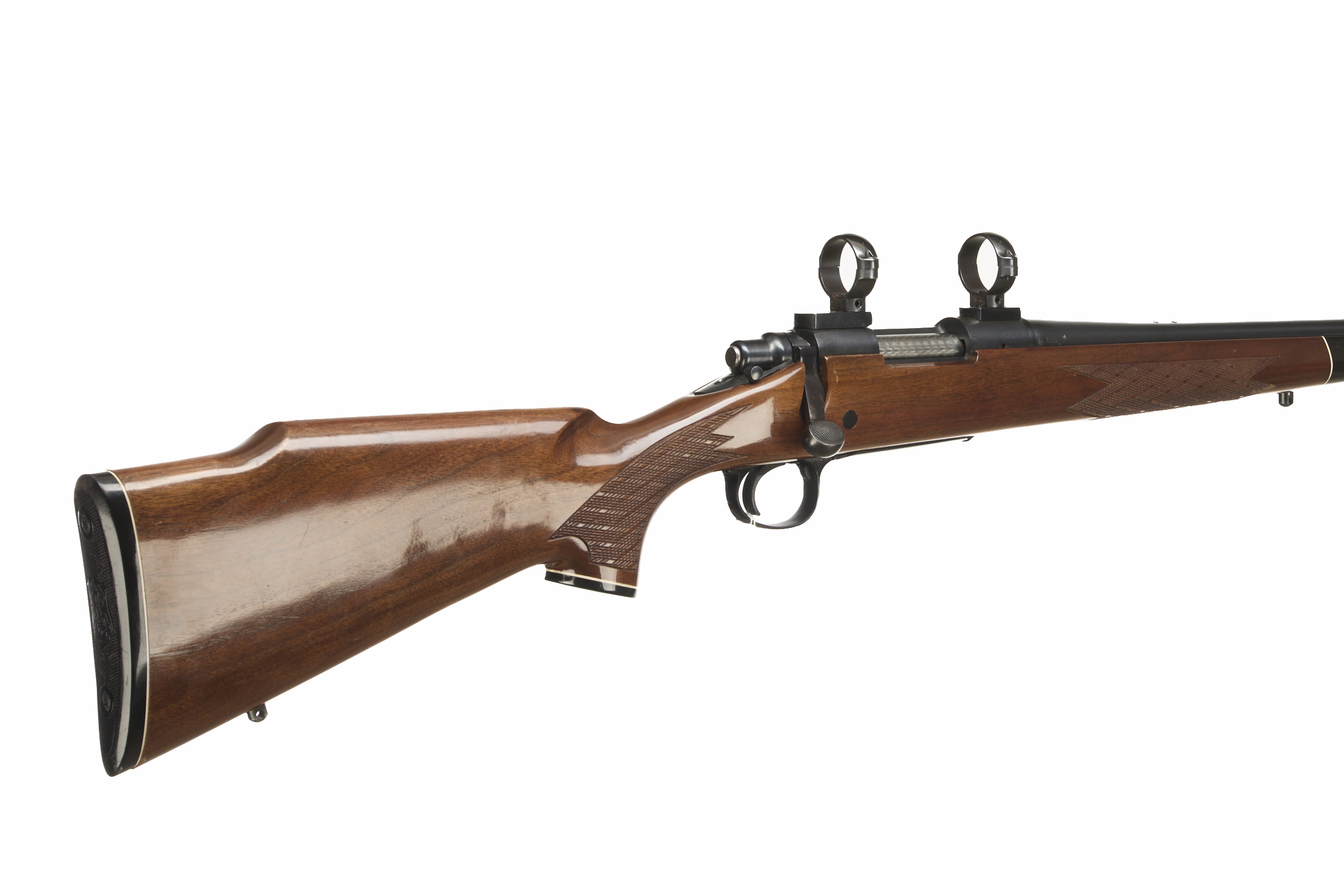 Chequered butt, semi-pistol grip with rosewood cap, rounded rosewood forend. Screwcut muzzle, unsighted barrel. Internal magazine with hinged floor plate. 30mm scope rings.