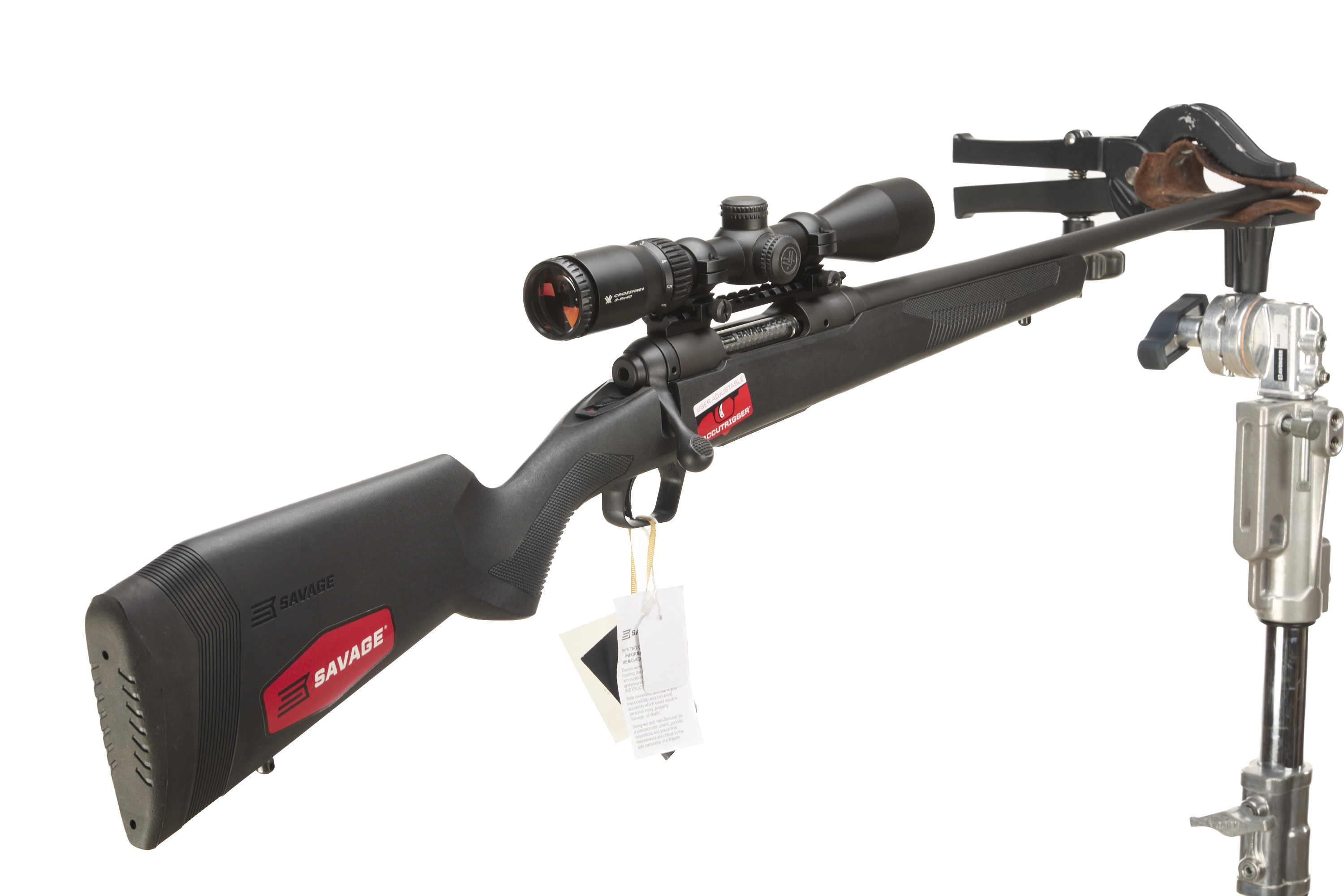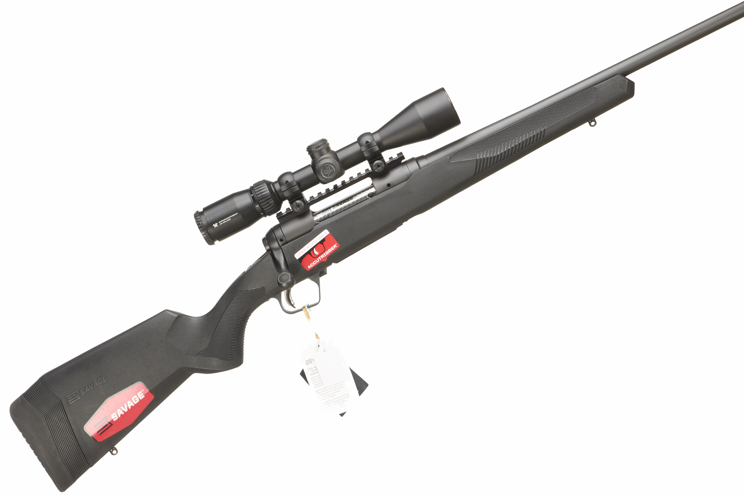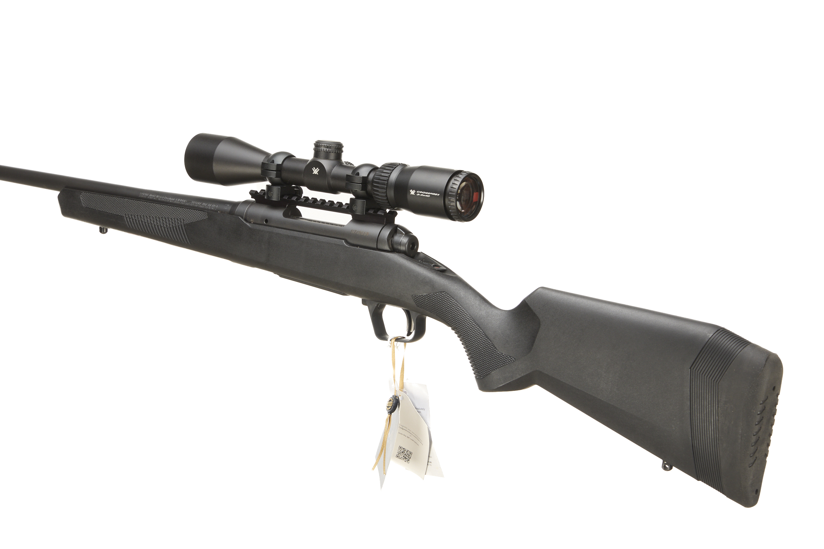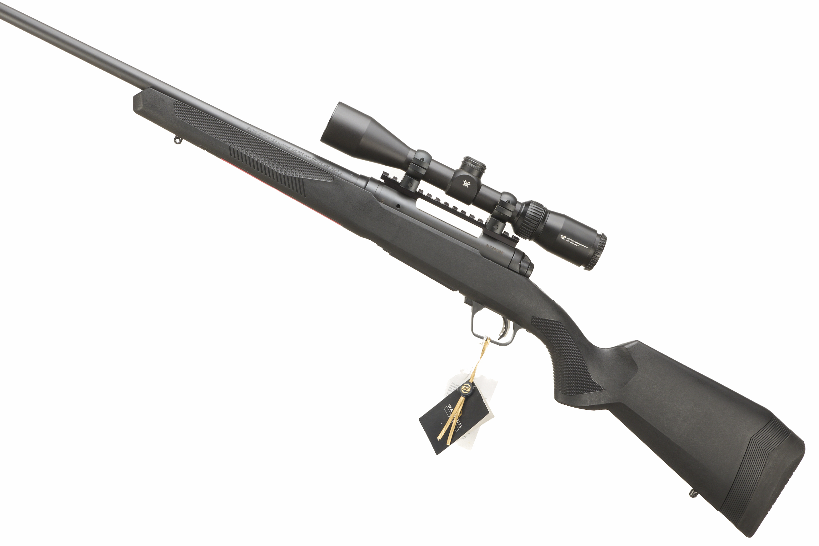 Cushioned butt, synthetic semi-pistol grip, rounded forend. Sling attachments. Screw cut muzzle, box detachable magazine.