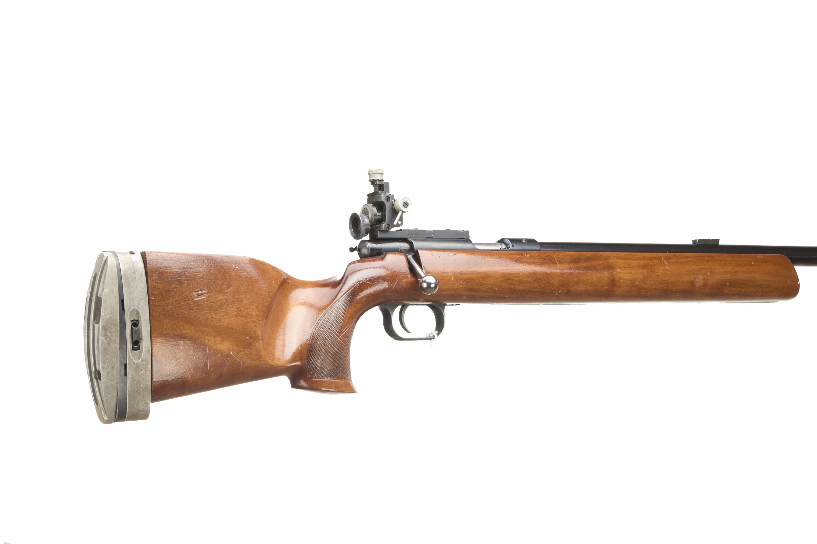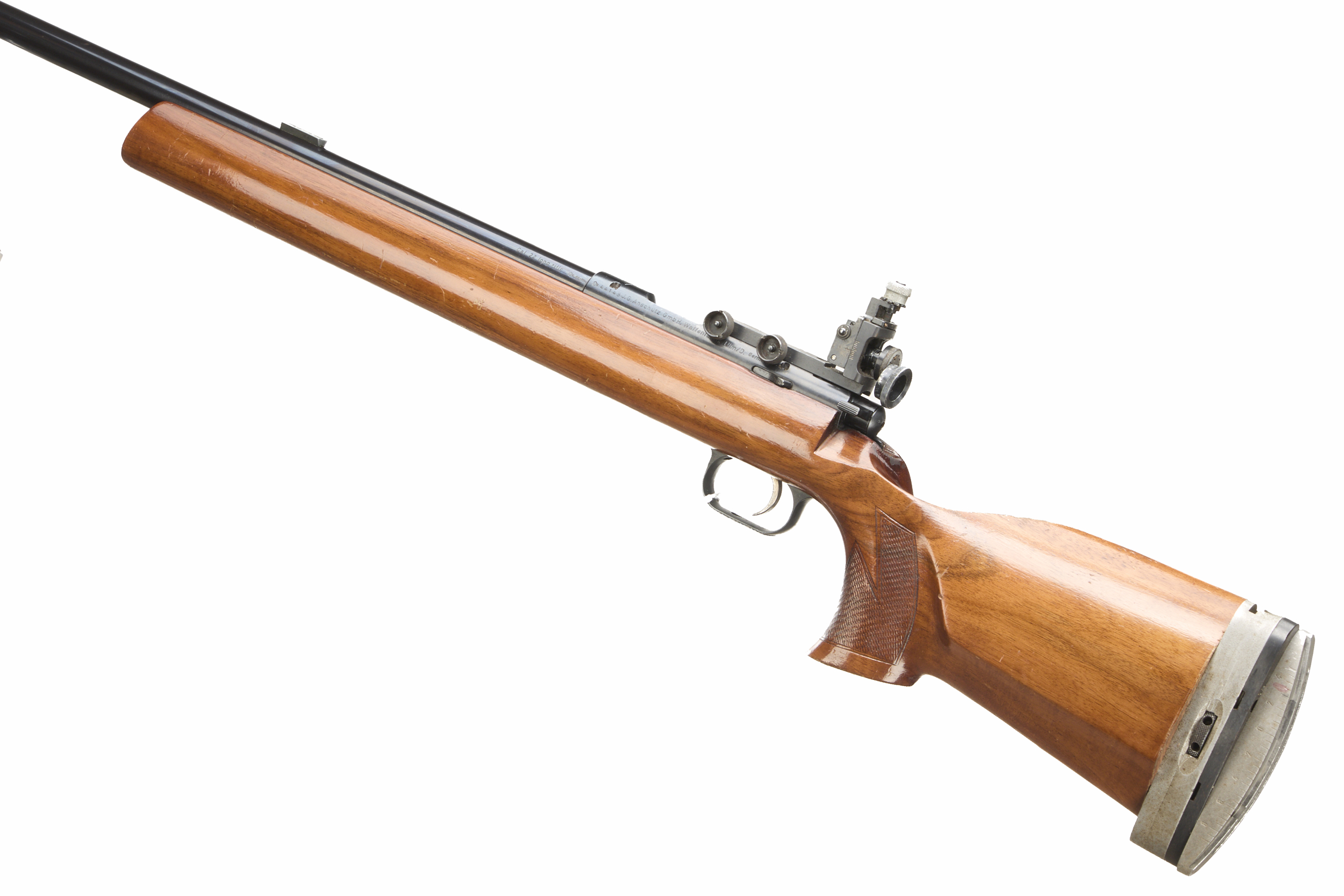 Adjustable butt pad, fully-figured target stock with full pistol grip, aluminium rail, dioptre rearsight, side safety.