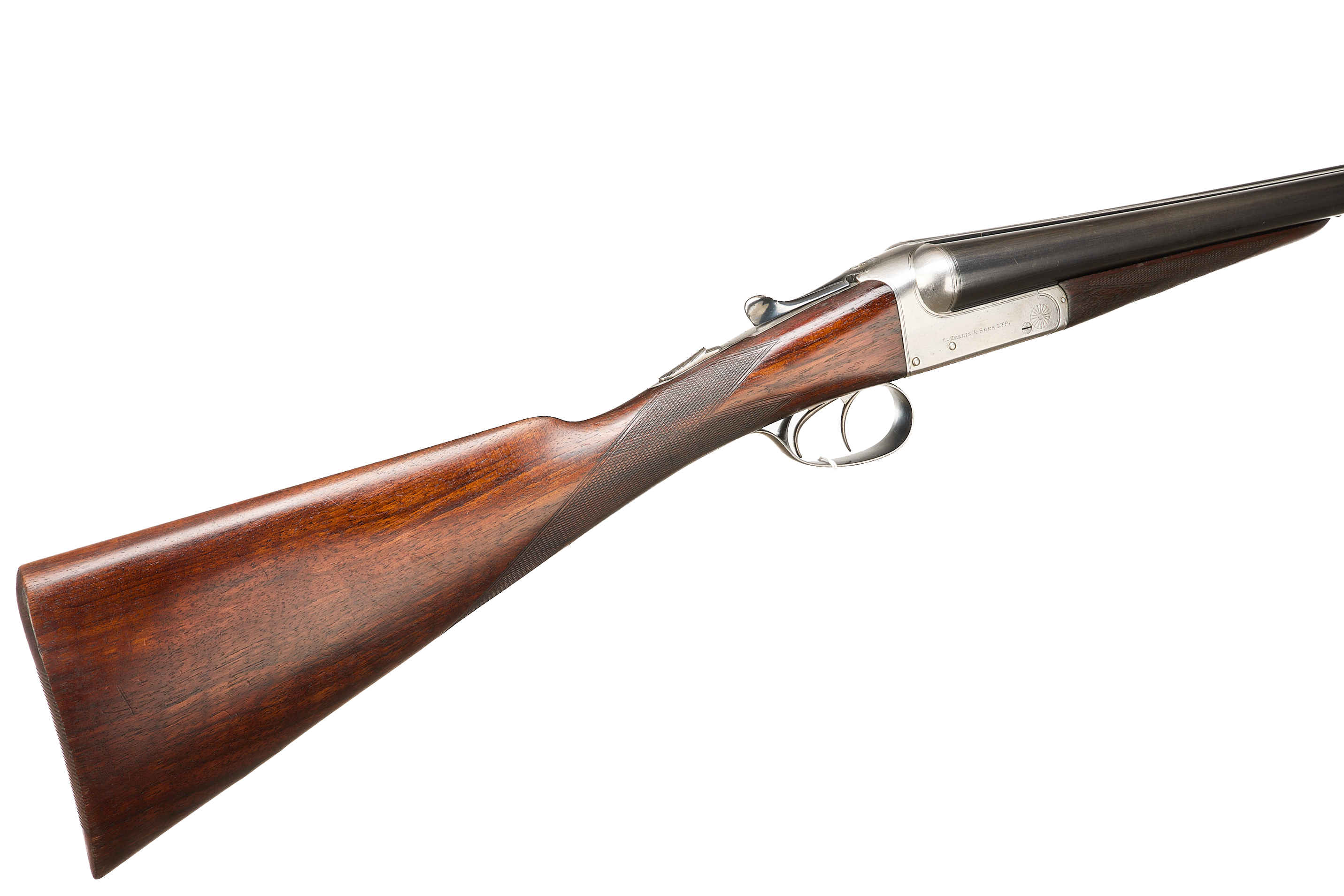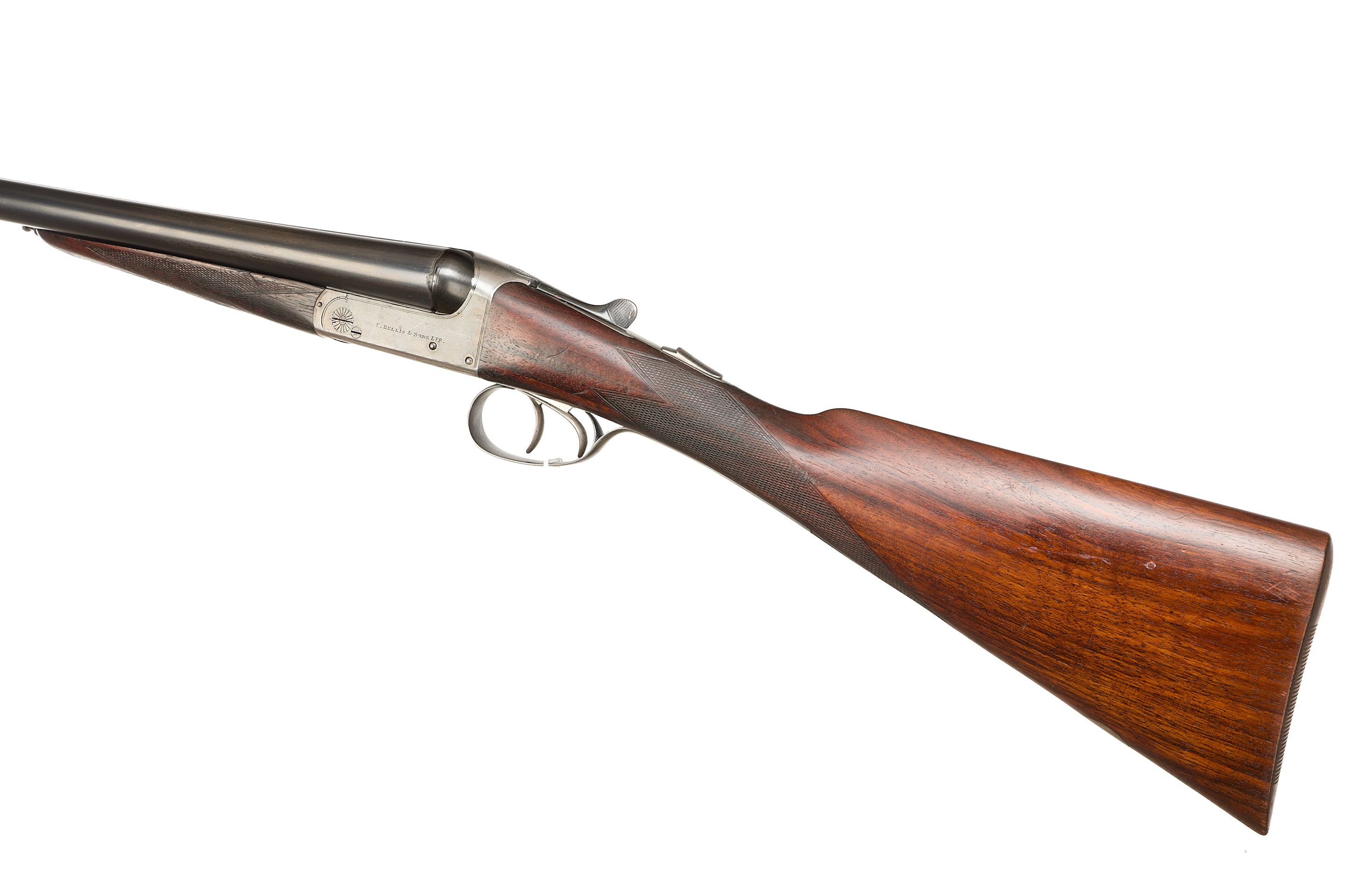 Ribbed butt, chequered straight grip and forend. Concaved rib engraved ‘Charles Hellis etc’.