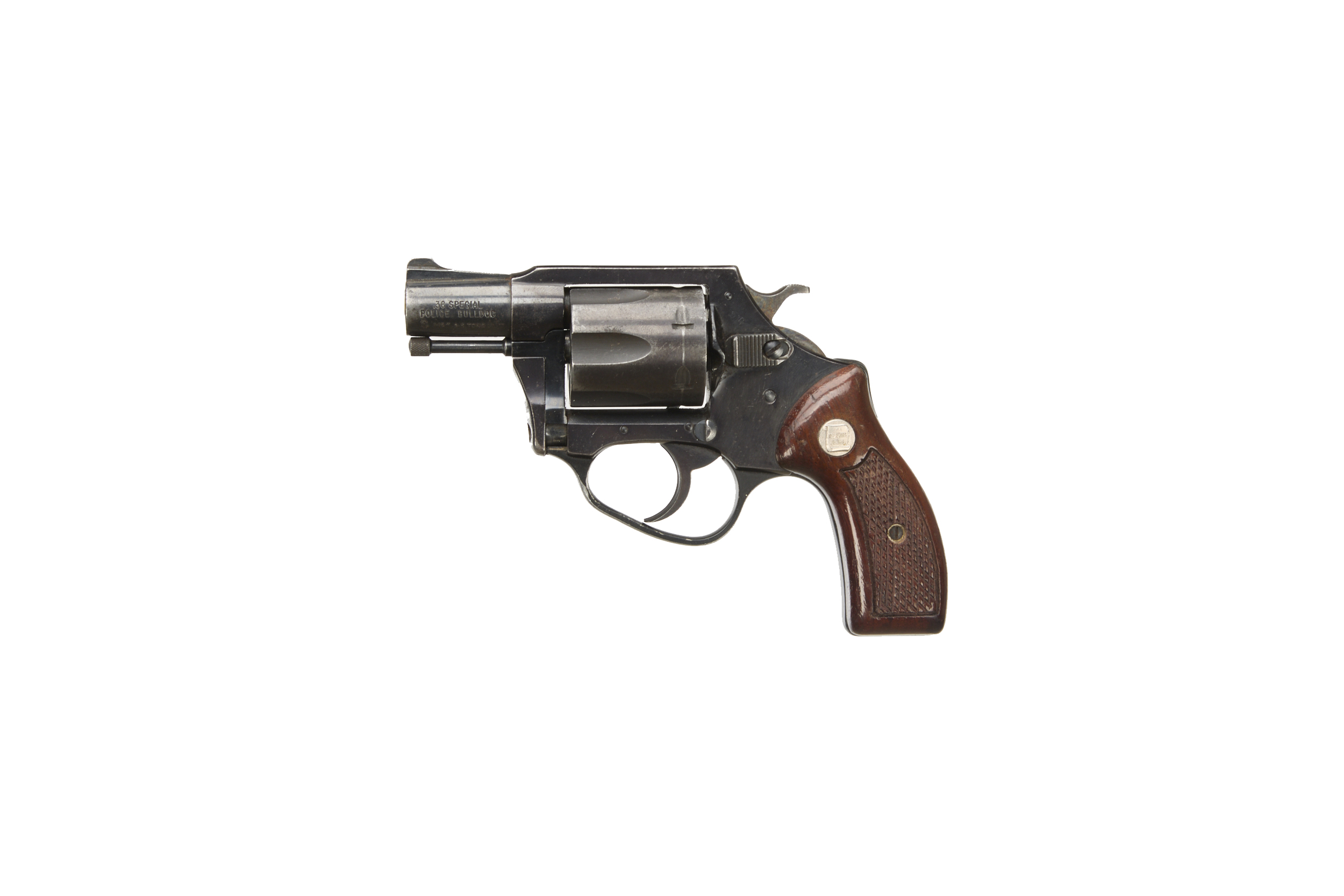 1 3/4" sighted, barrel. 6 shot fluted cylinder, blued frame, chequered grips.