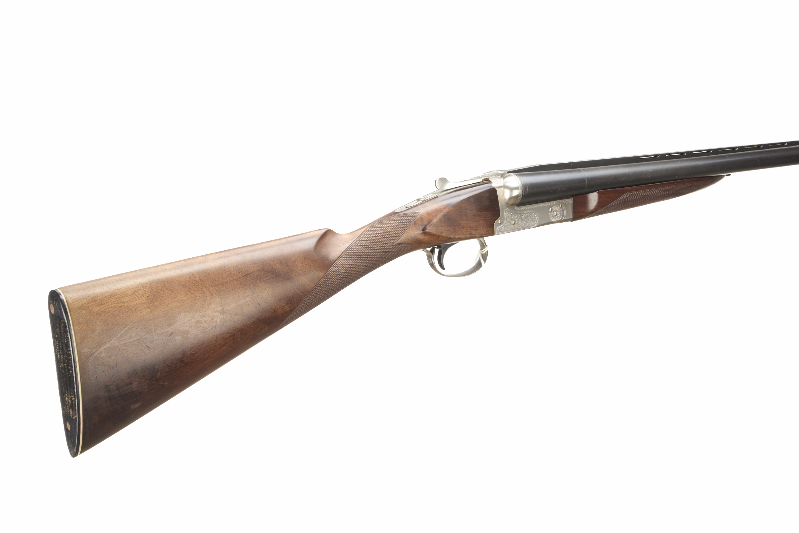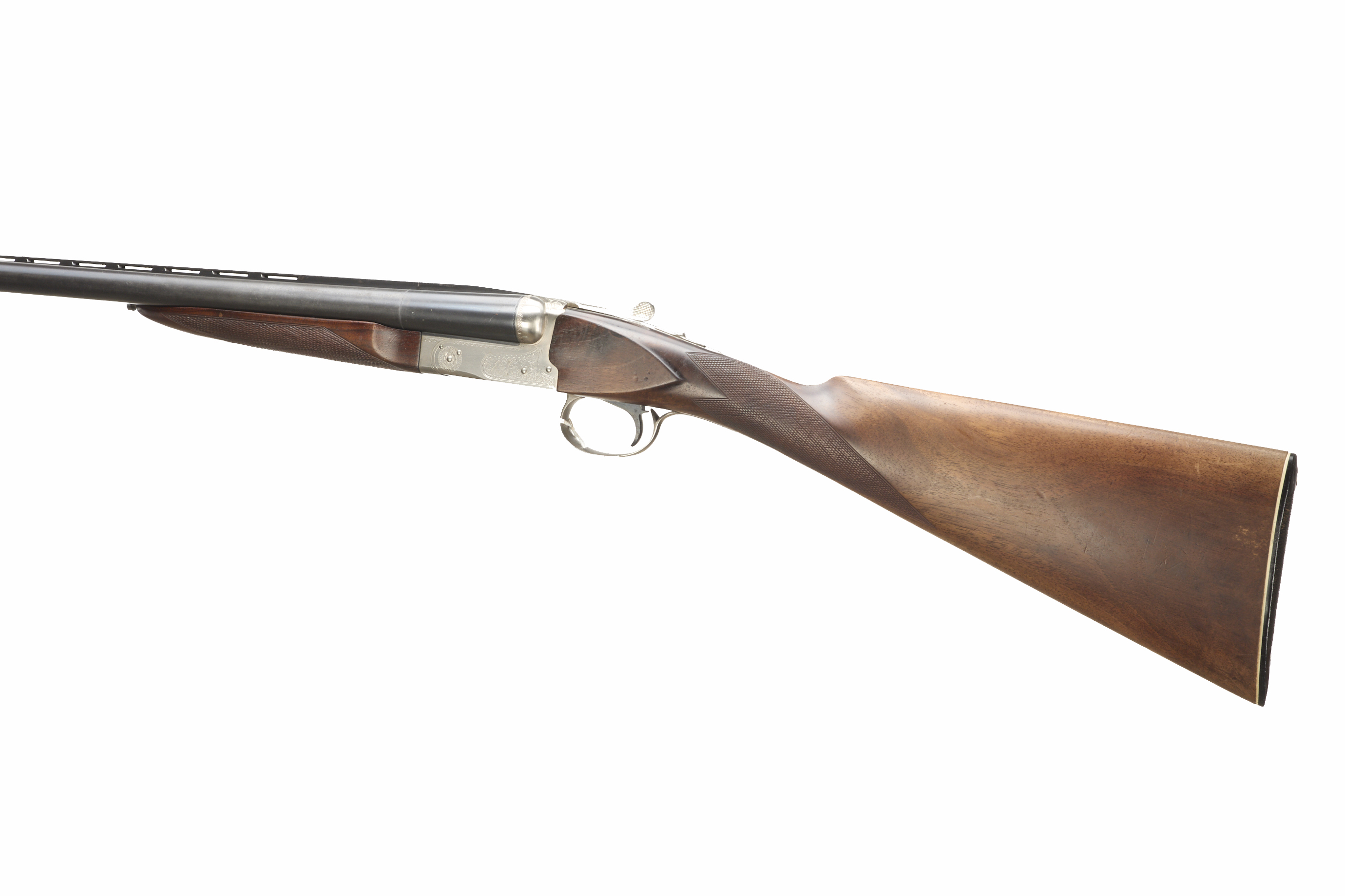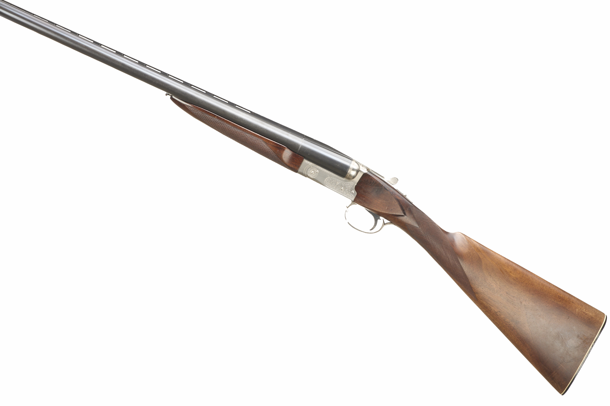 Ribbed, ebonite butt, chequered straight grip and broad forend. Tapered, sighting rib engraved ‘PIGEON GRADE’. Top lever, automatic safety with integral barrel selector. The action engraved with bouquets, scrolled border, ‘WINCHESTER’ and a pigeon to the underside.