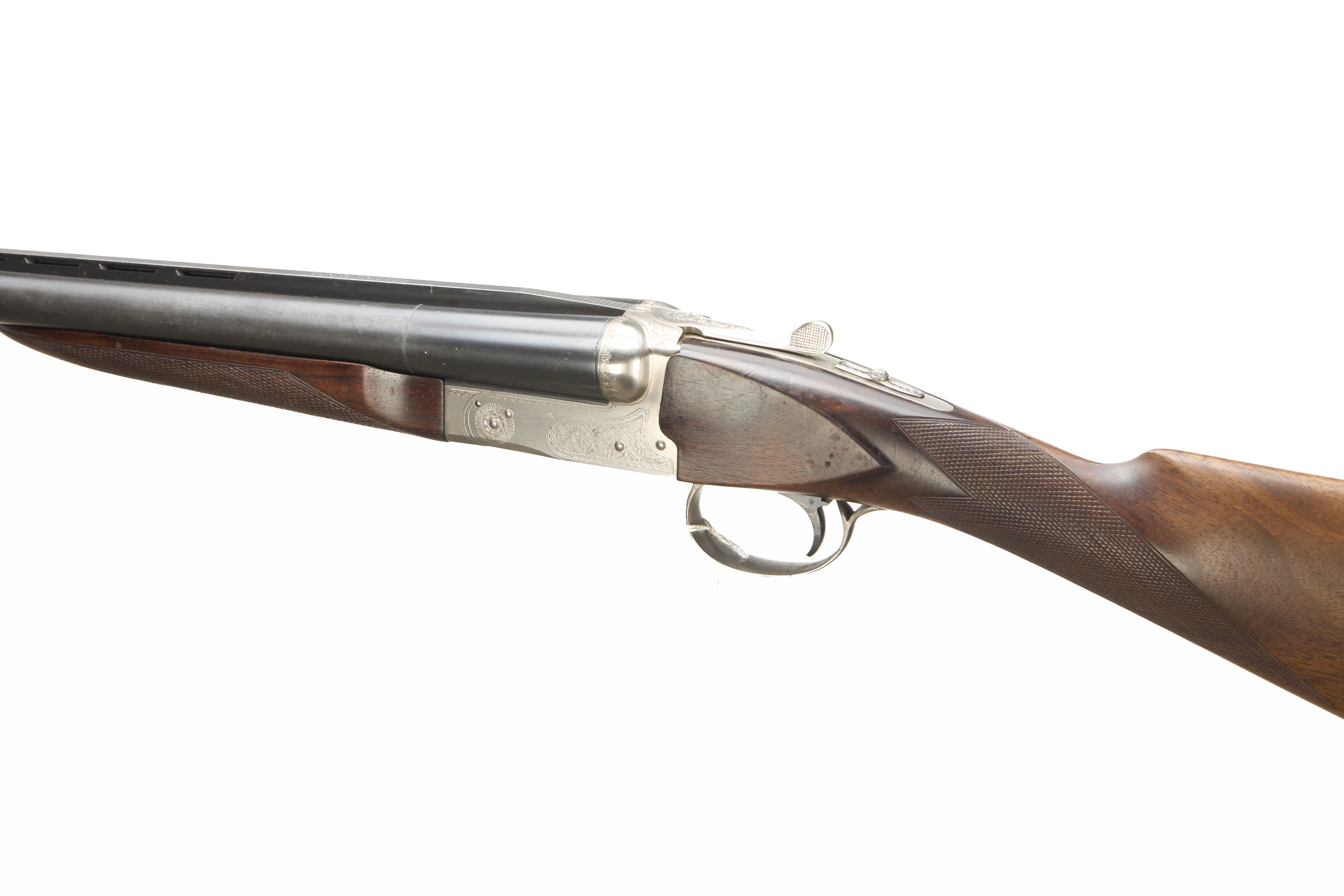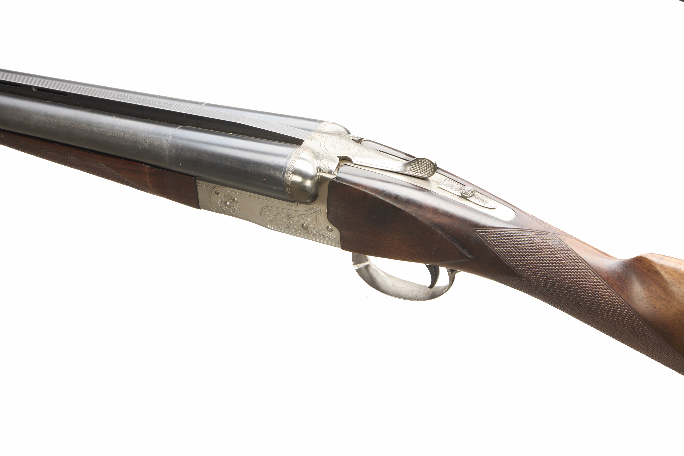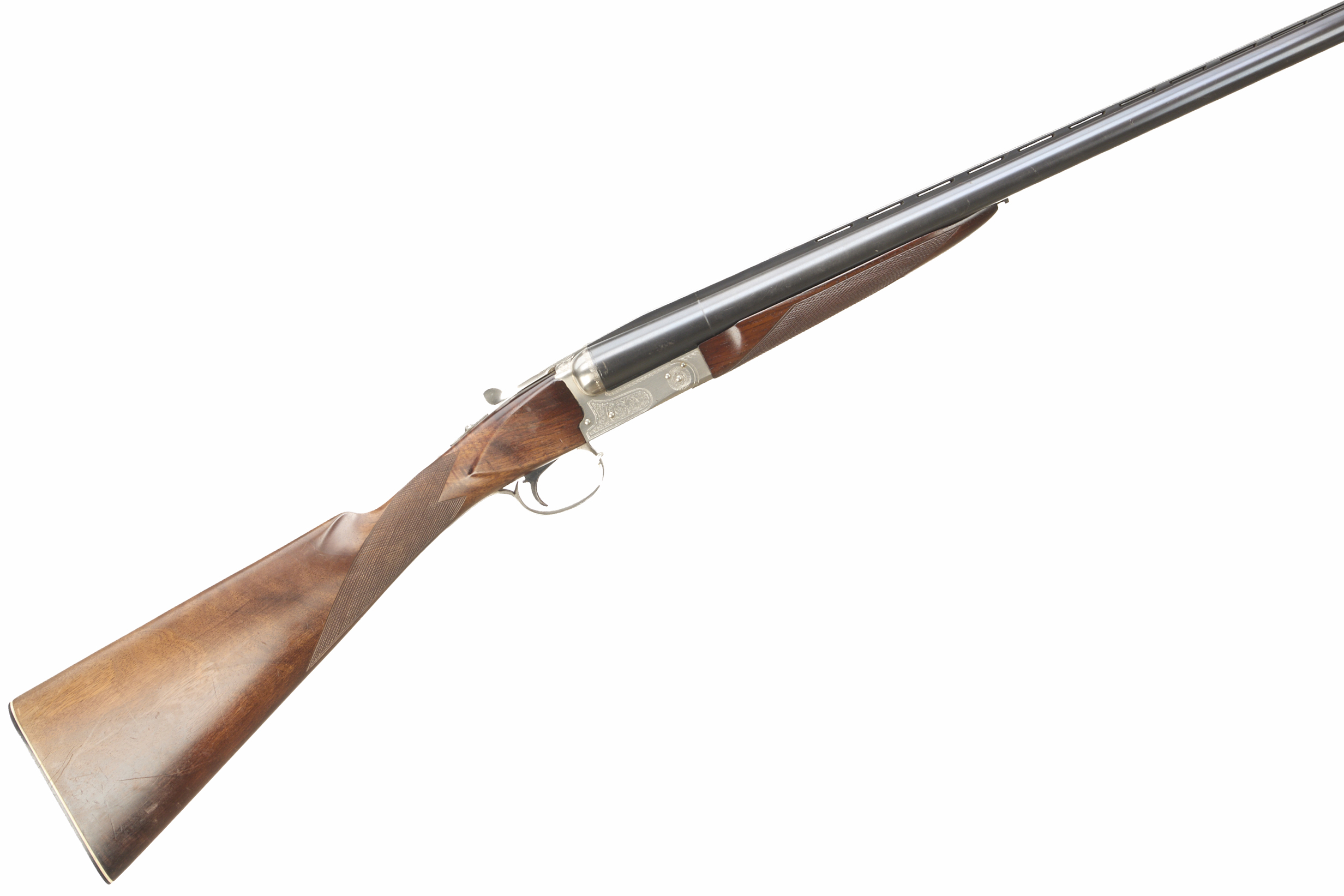 Ribbed, ebonite butt, chequered straight grip and broad forend. Tapered, sighting rib engraved ‘PIGEON GRADE’. Top lever, automatic safety with integral barrel selector. The action engraved with bouquets, scrolled border, ‘WINCHESTER’ and a pigeon to the underside.