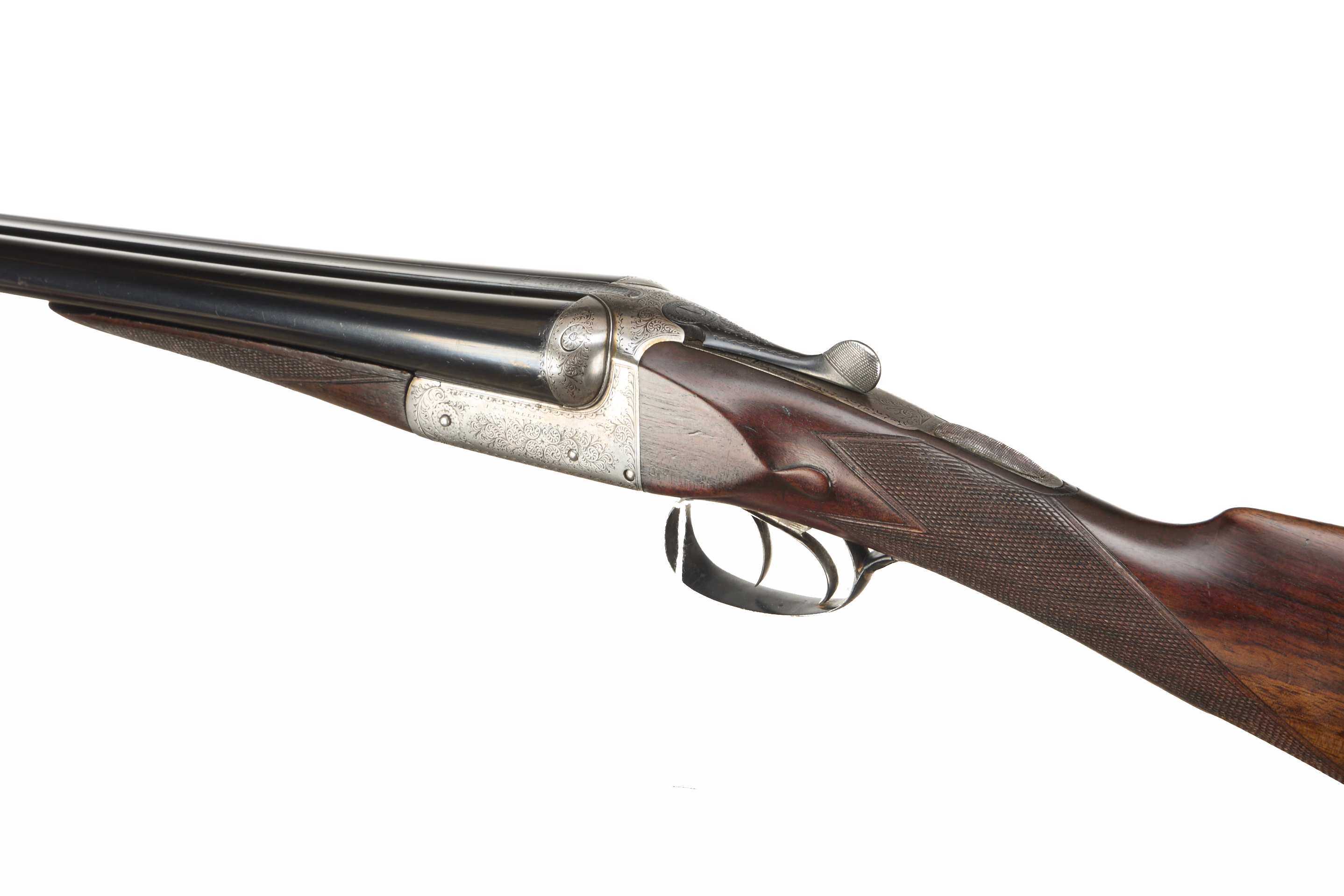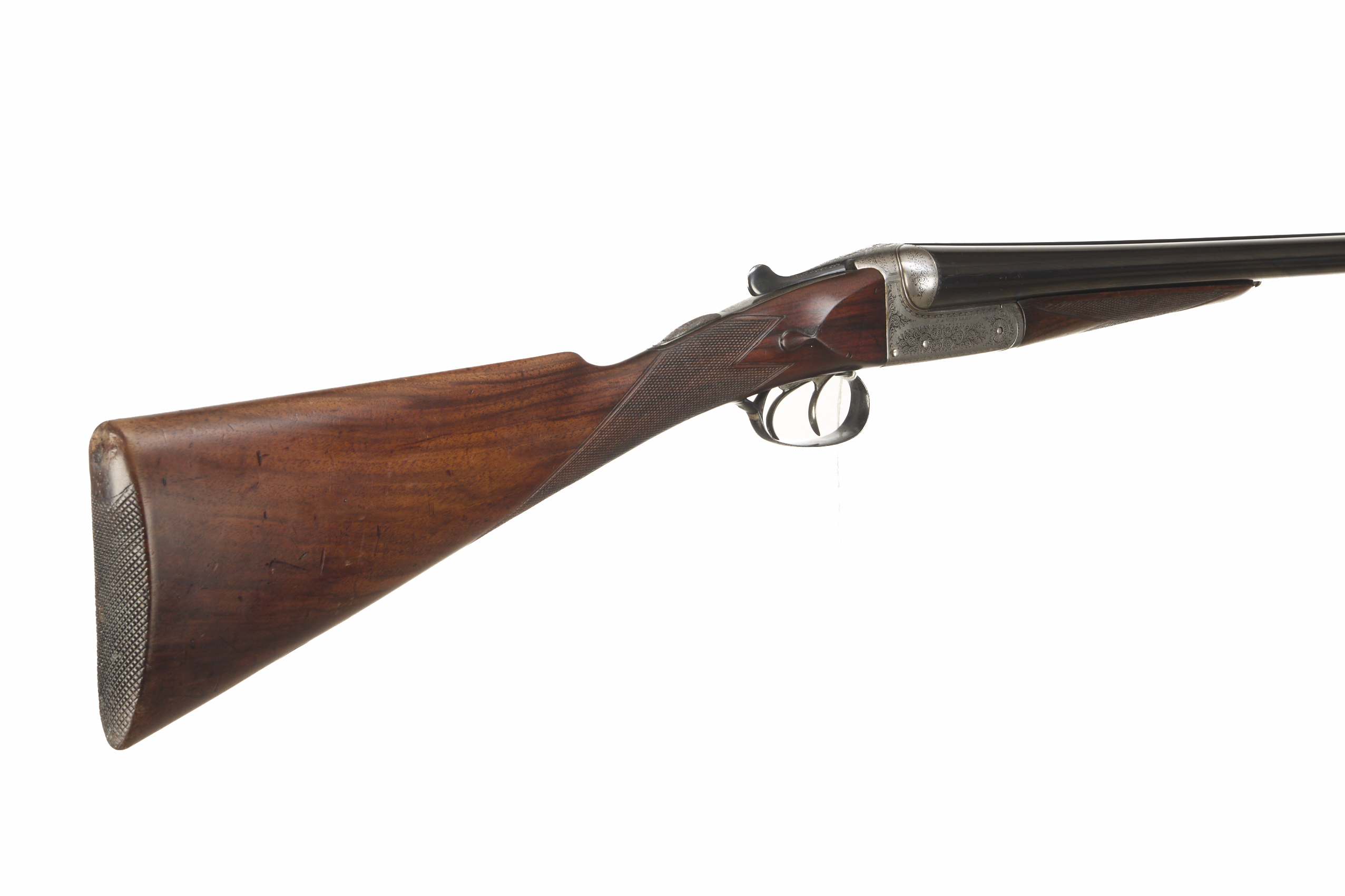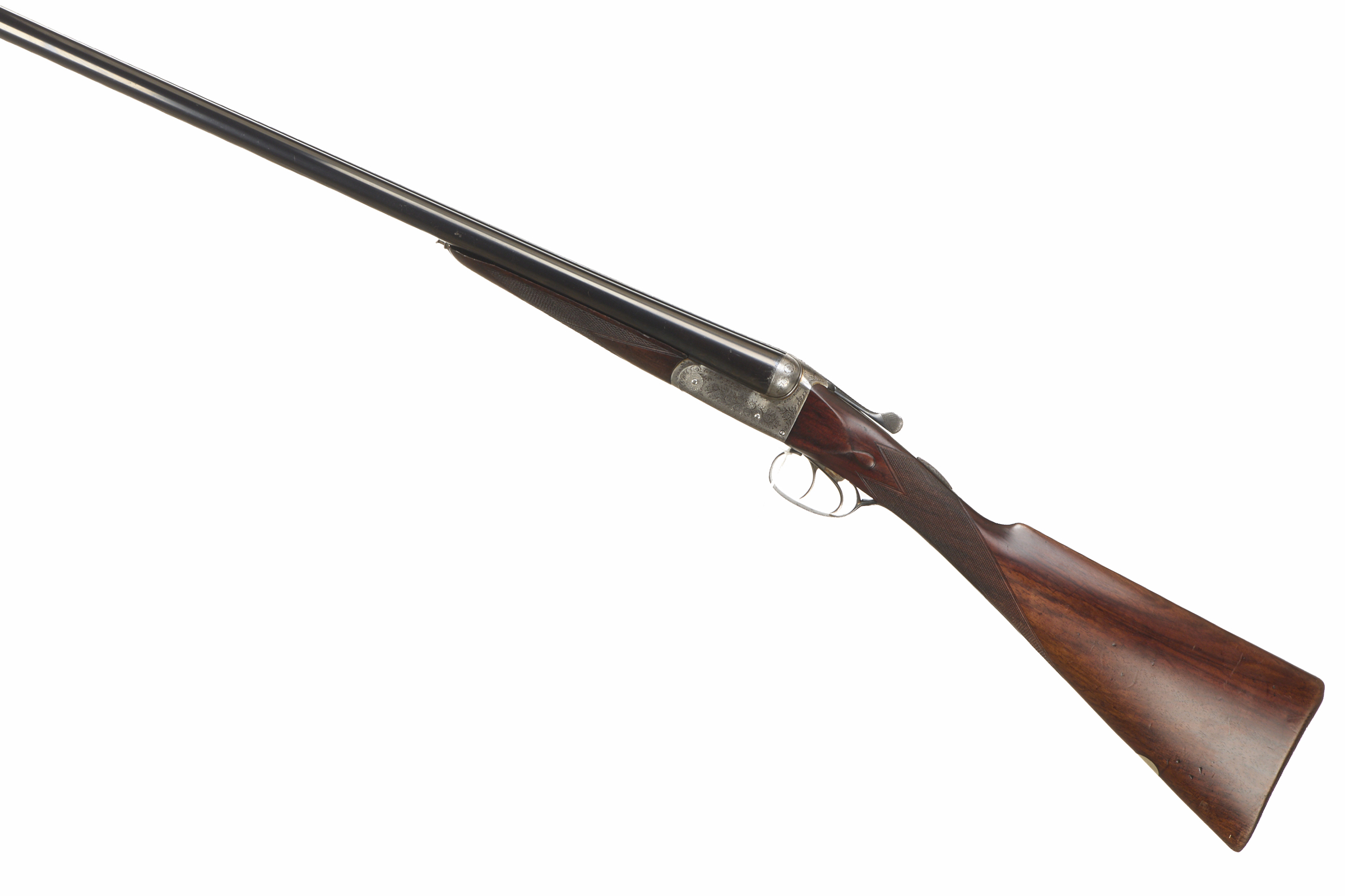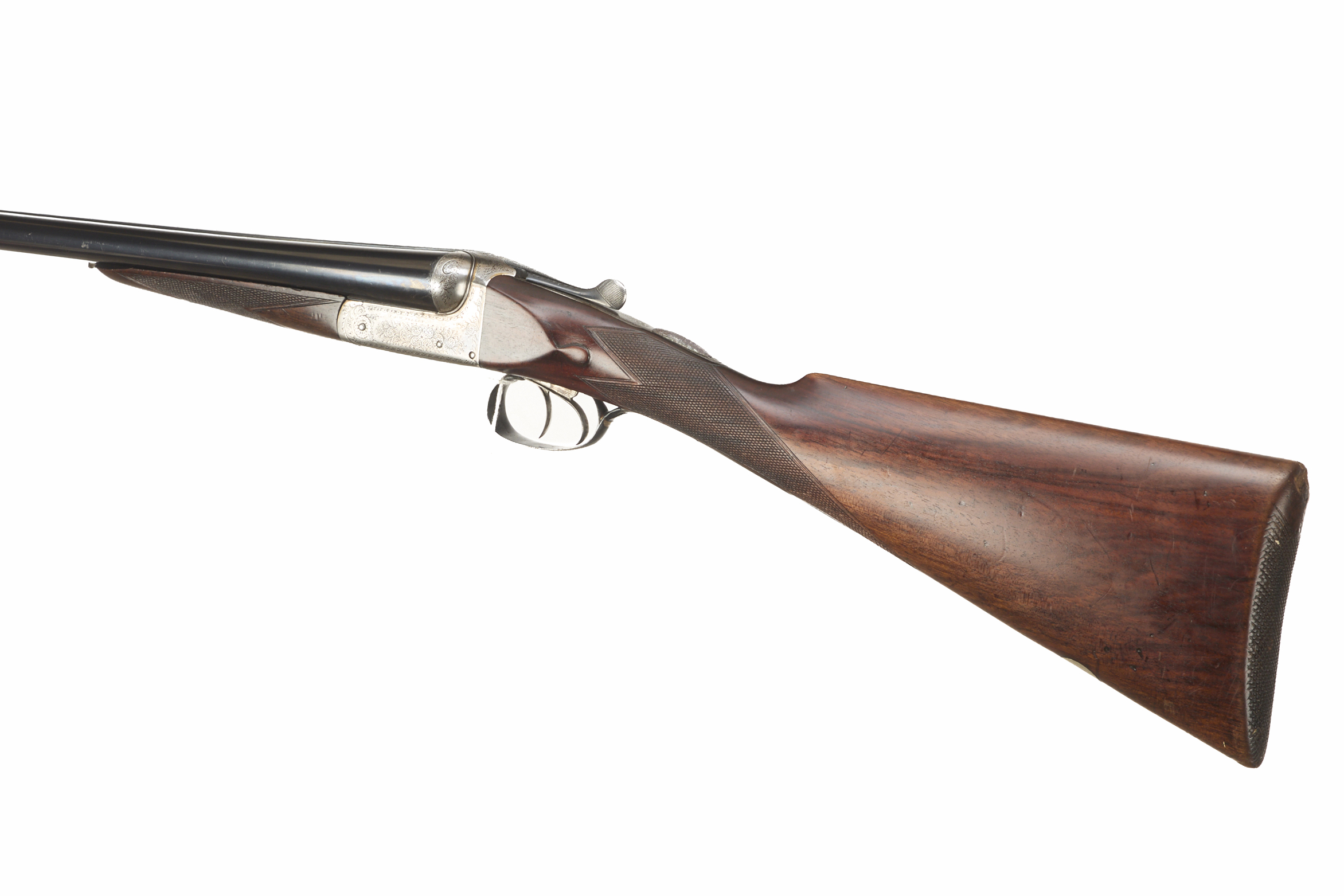 Chequered butt, straight grip and forend. Cast off. Tapered, concave rib engraved ‘J & W TOLLEY. MAKERS. BIRMINGHAM & LONDON.’. Treble-grip action, top lever, automatic safety with ‘SAFE’ inlaid. The action bright, engraved with acanthus scrolling. Ca 1925.