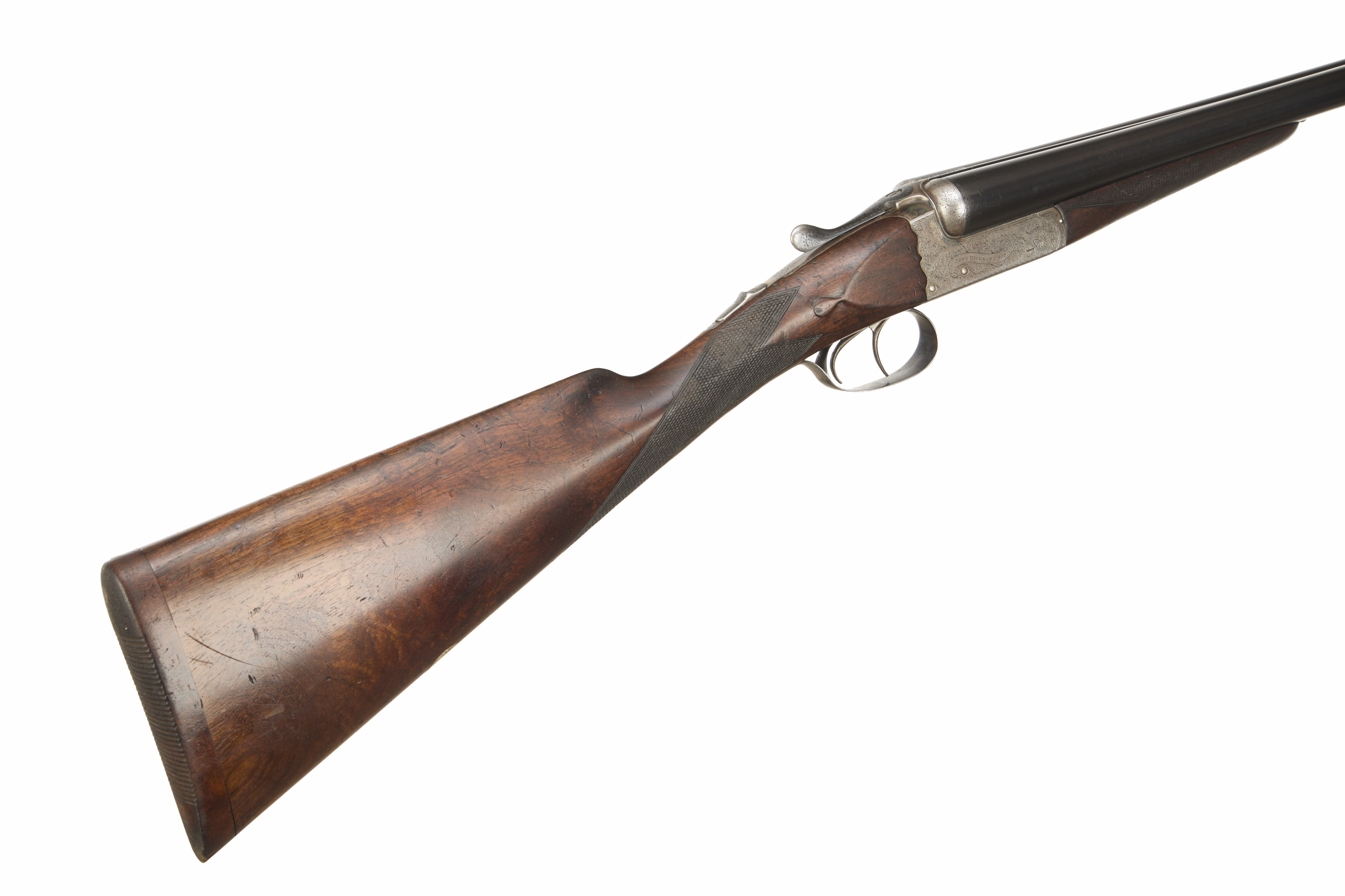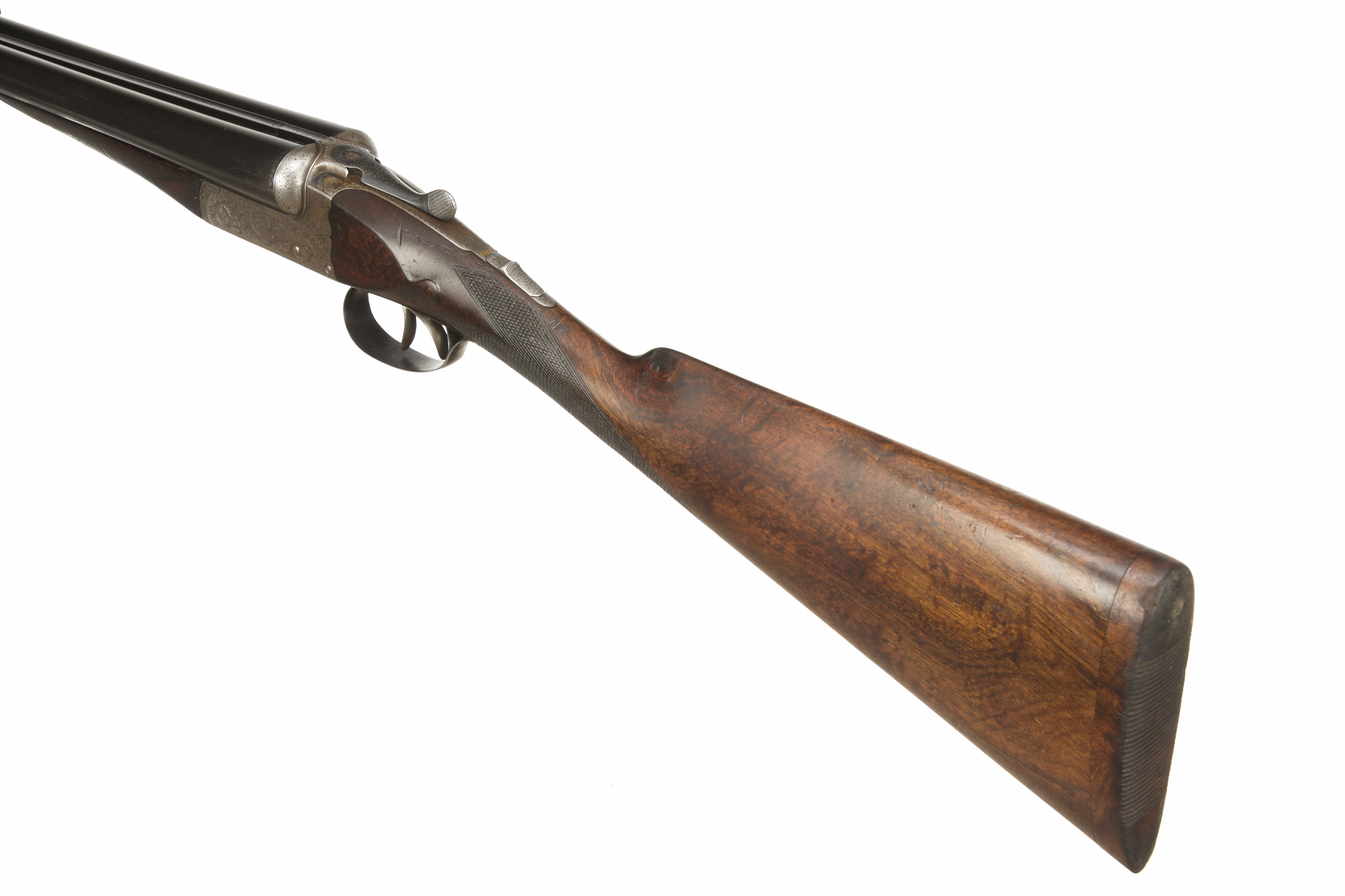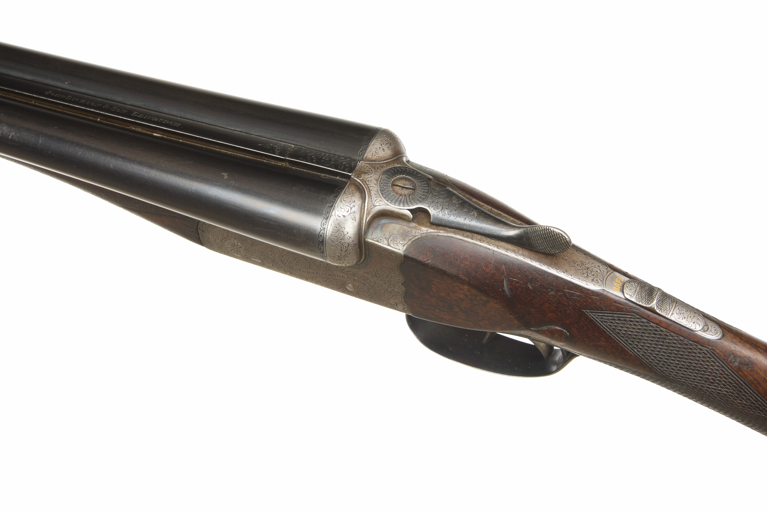 Ribbed extension to butt, chequered straight grip and forend. Narrow rib engraved ‘JOHN DICKSON & SON EDINBURGH’. Top lever, automatic safety with ‘SAFE’ inlaid in gold. Scroll-back action engraved with extensive acanthus scrolling and ‘JOHN DICKSON & SON’ mounted on a scroll.