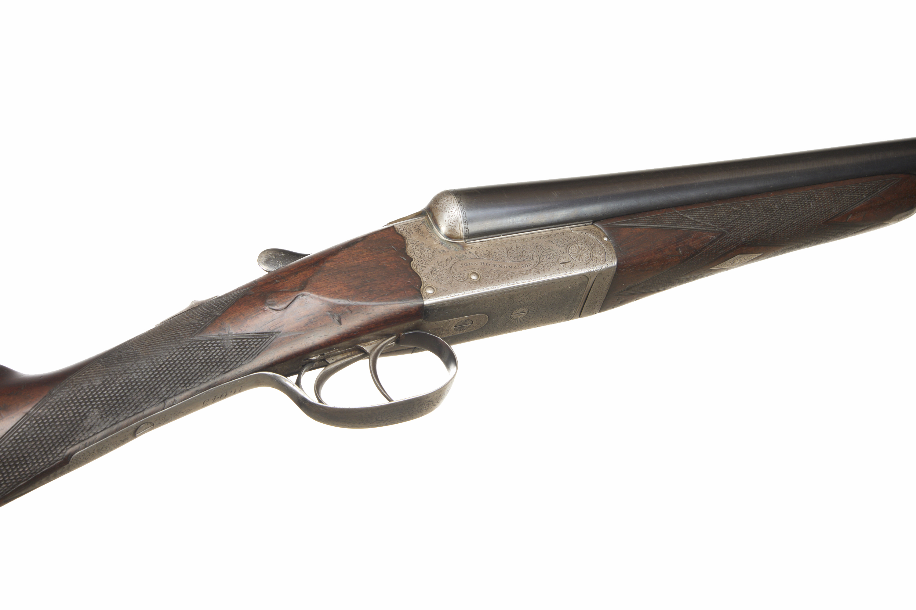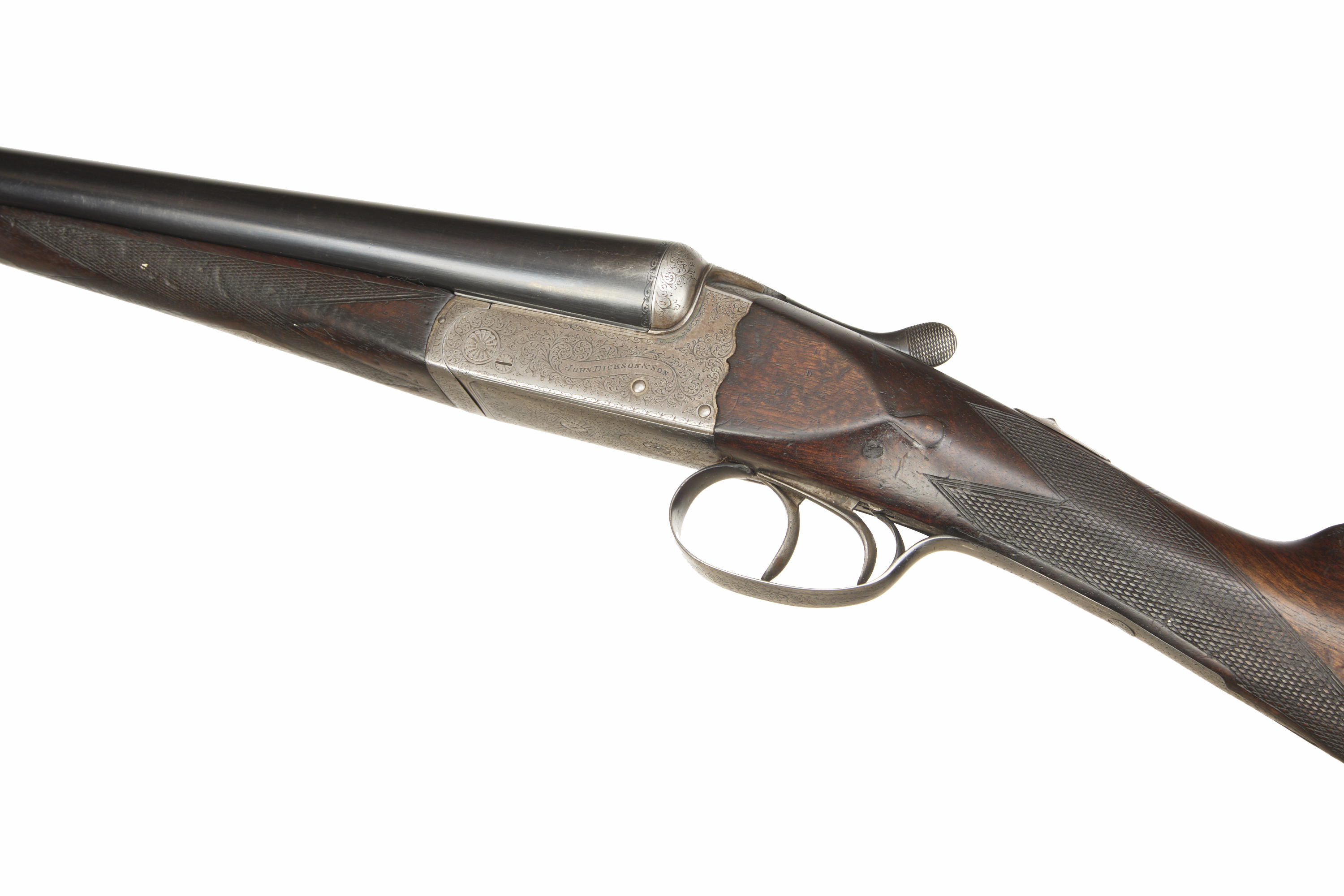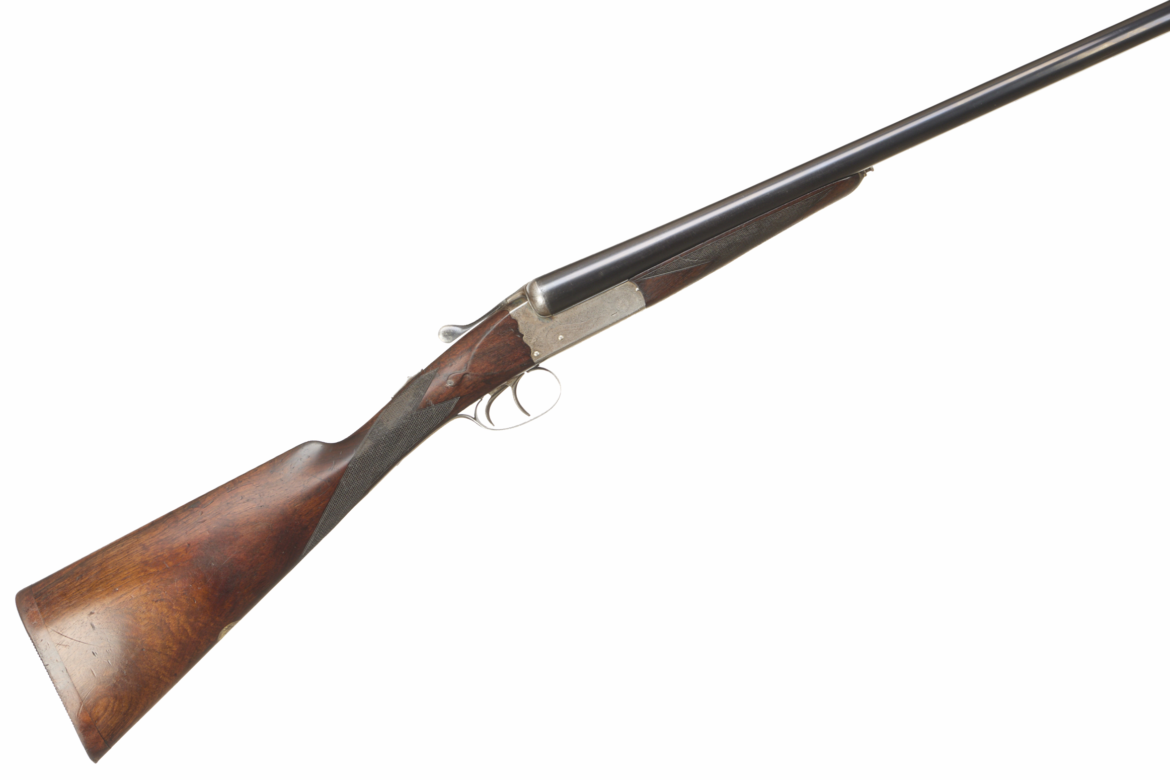 Ribbed extension to butt, chequered straight grip and forend. Narrow rib engraved ‘JOHN DICKSON & SON EDINBURGH’. Top lever, automatic safety with ‘SAFE’ inlaid in gold. Scroll-back action engraved with extensive acanthus scrolling and ‘JOHN DICKSON & SON’ mounted on a scroll.