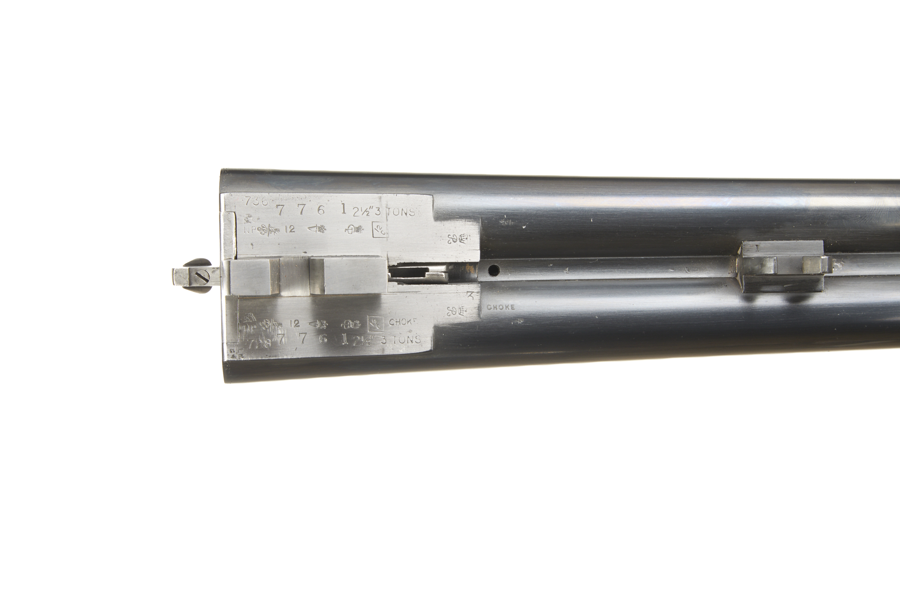 Additional Comments, The finish lifted on the butt extension, plentiful fine marks, one deeper scratch and ding both repairable. Two small marks to the chequering, otherwise only lightly softened. The forend with only fine marks. The action bright with some vestigial light tarnishing and markings. The barrels with little sign of use, bright. No 2 Proof .736, .736,