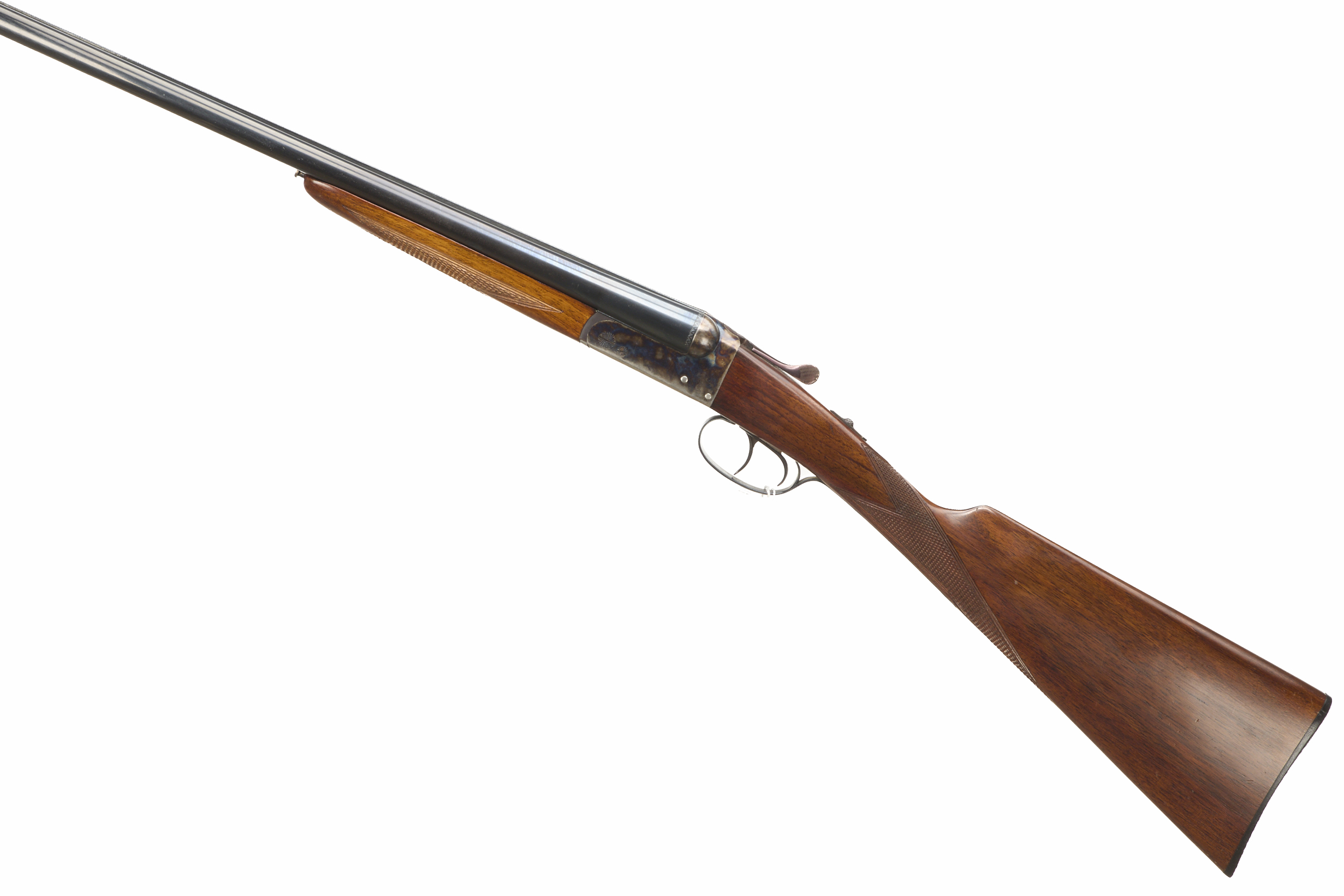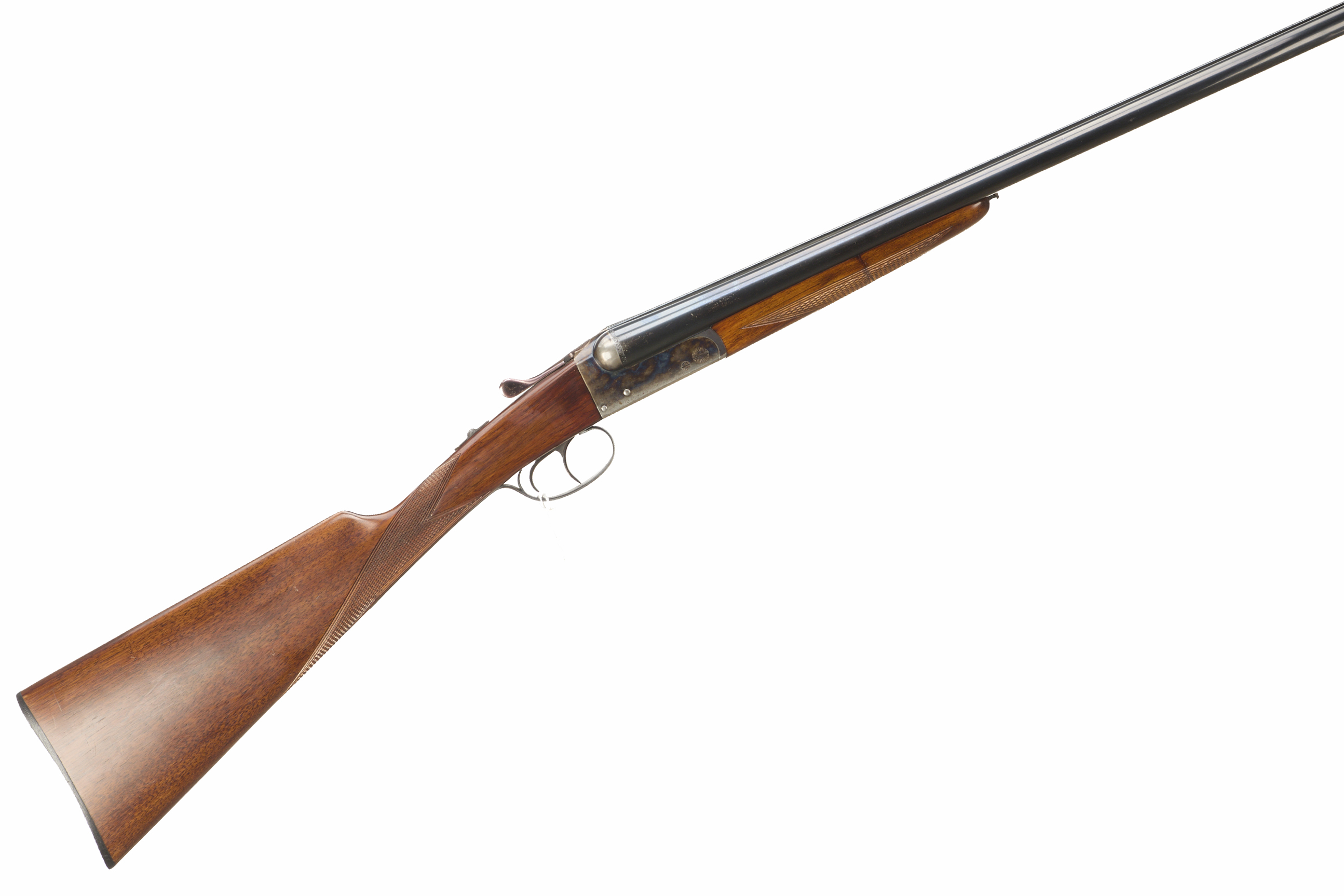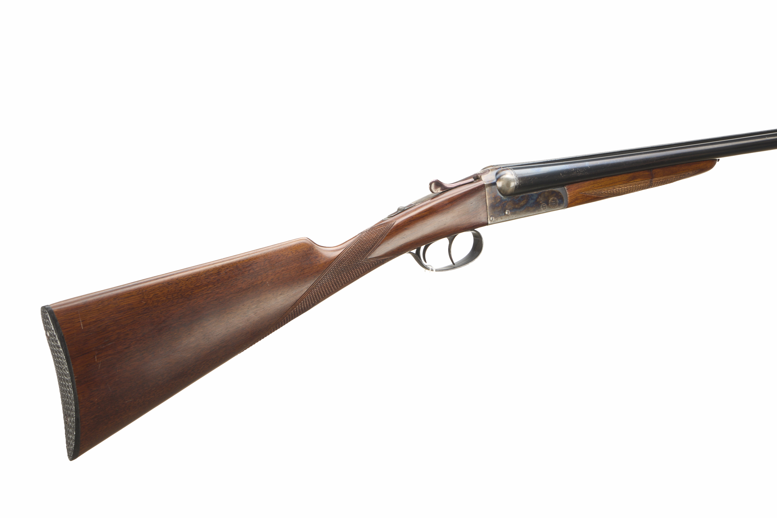 Chequered butt, chequered straight grip and forend. Tapered rib, top lever, automatic safety. The action plain with much colour.