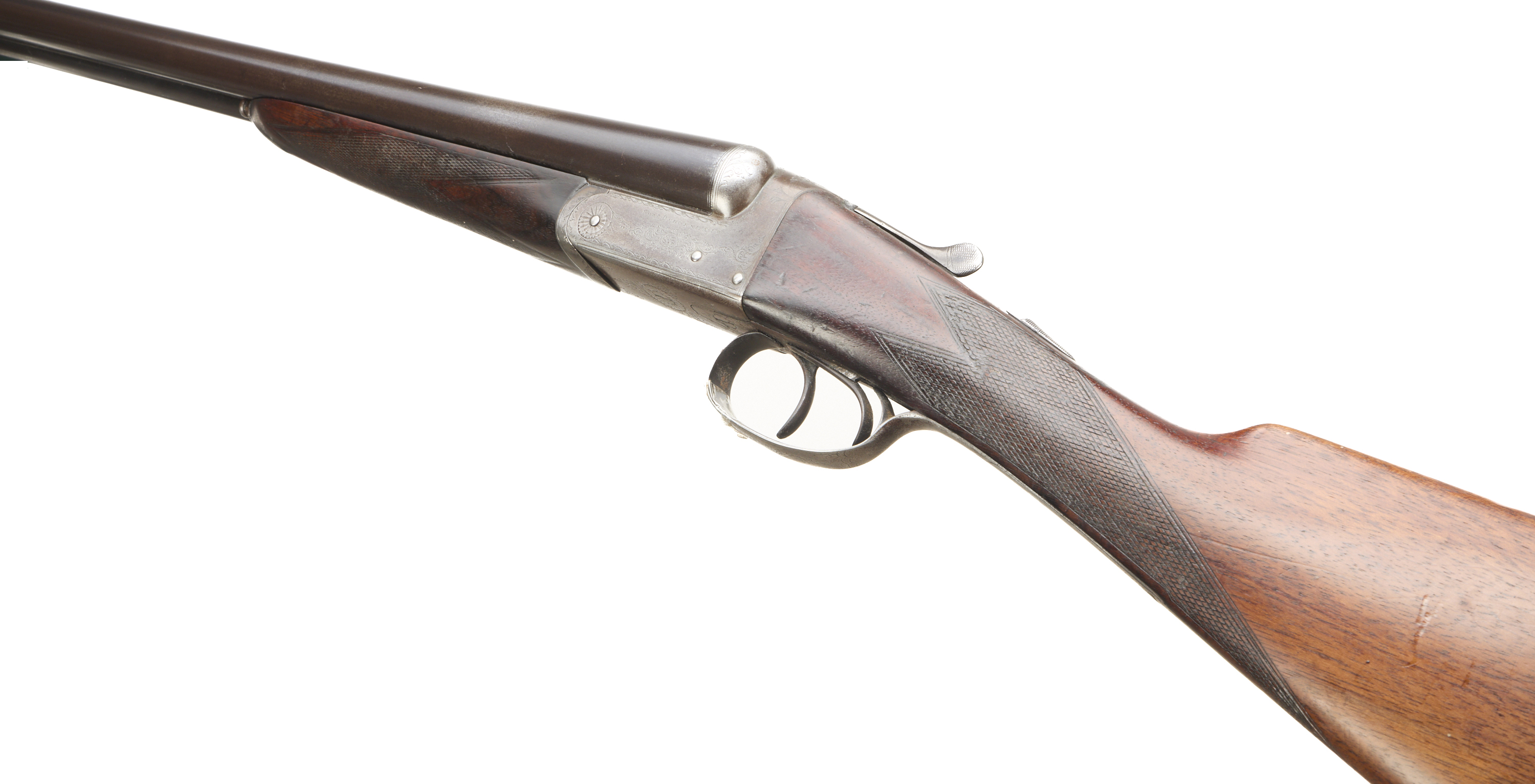 Chequered butt, straight grip and forend. Tapered rib engraved ‘CHAS OSBORNE & Co LONDON’. Top lever, automatic safety. The action engraved with acanthus scrolling.