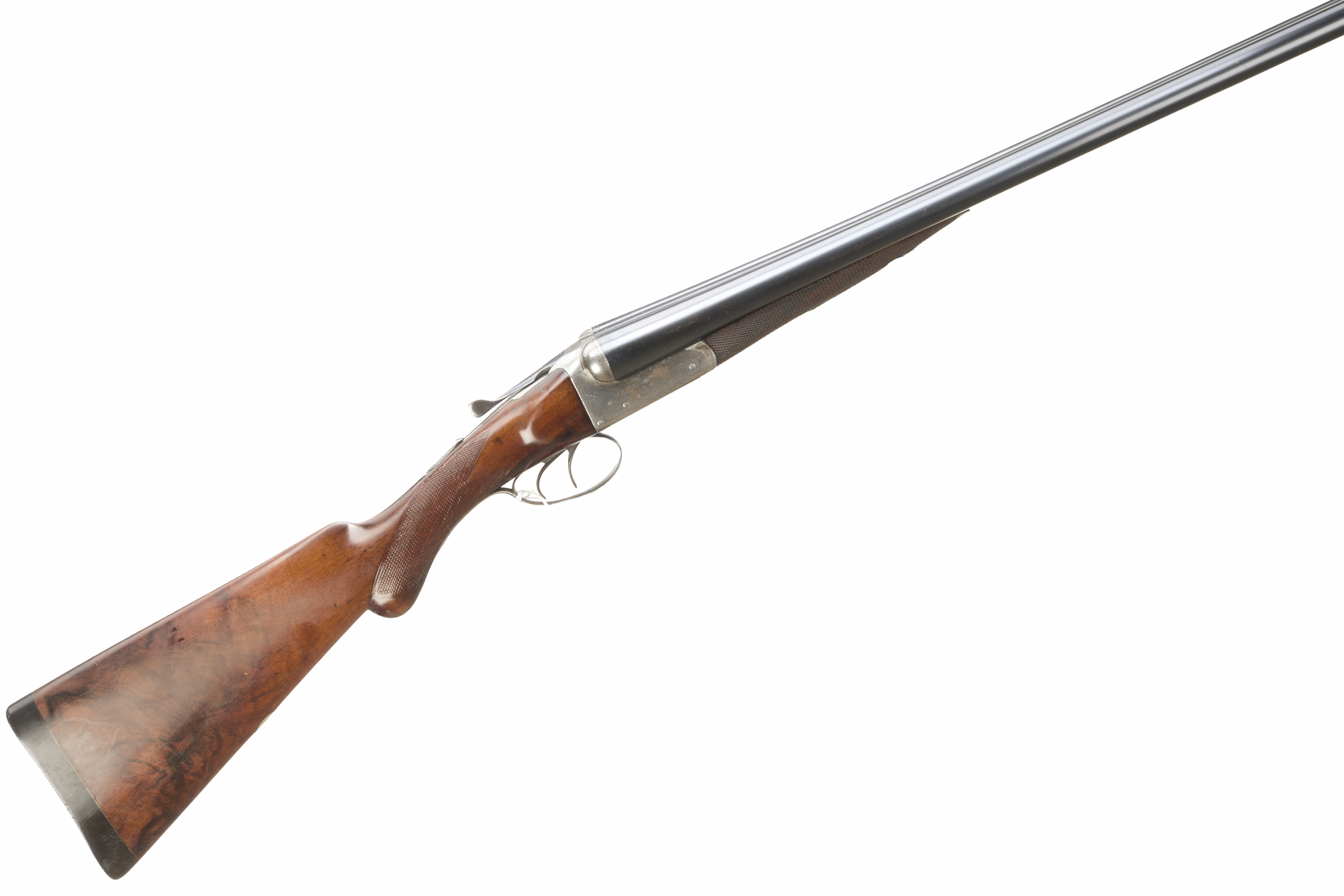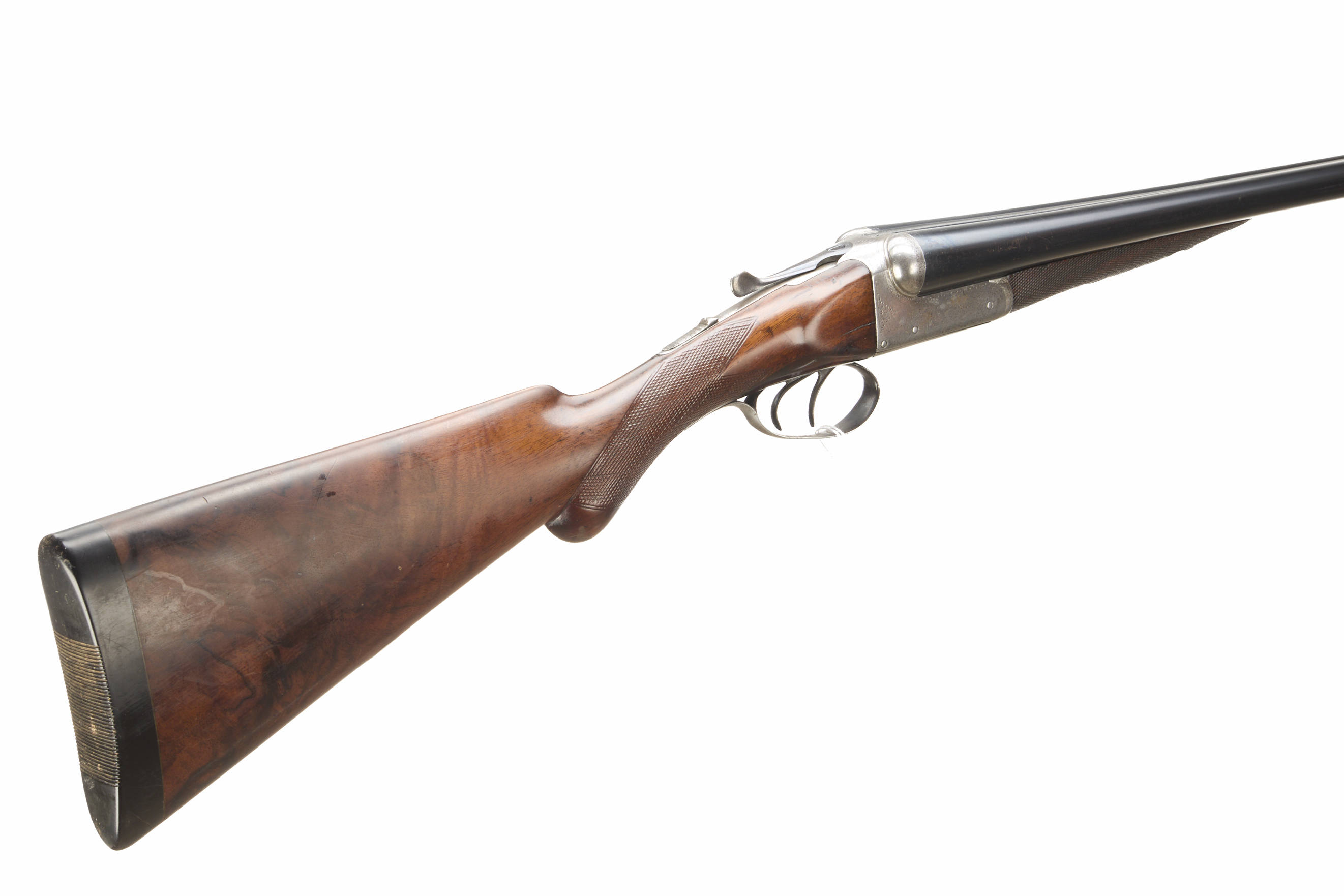Ribbed, horn extension to butt, chequered, rounded, semi-pistol grip and forend. Convex rib engraved ‘W.R. PAPE. NEWCASTLE-UPON-TYNE’. Top lever, automatic safety with ‘SAFE’. The action with remnant acanthus scrolling. For 1901 (approx), sleeved 1976 poss replacement rib.