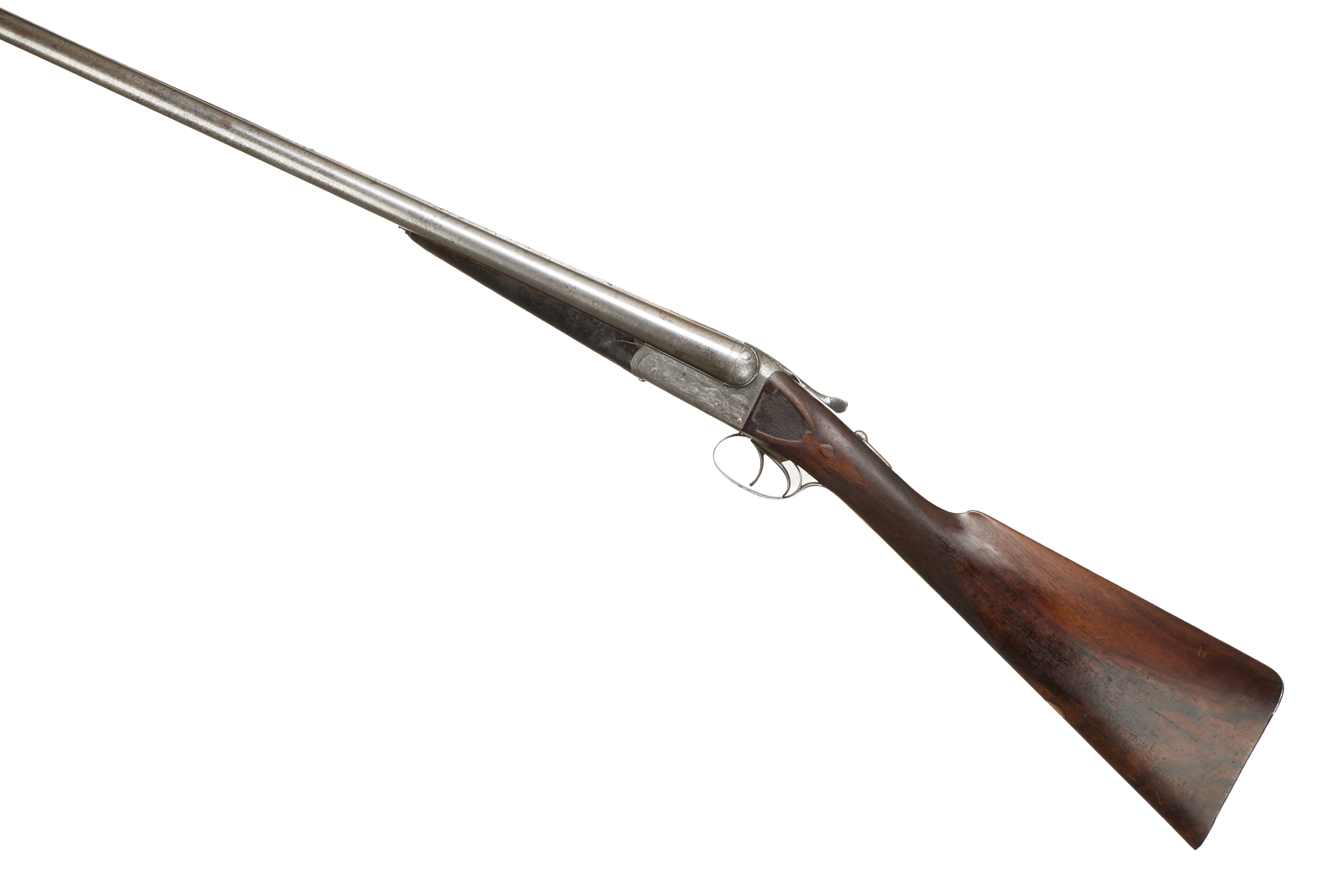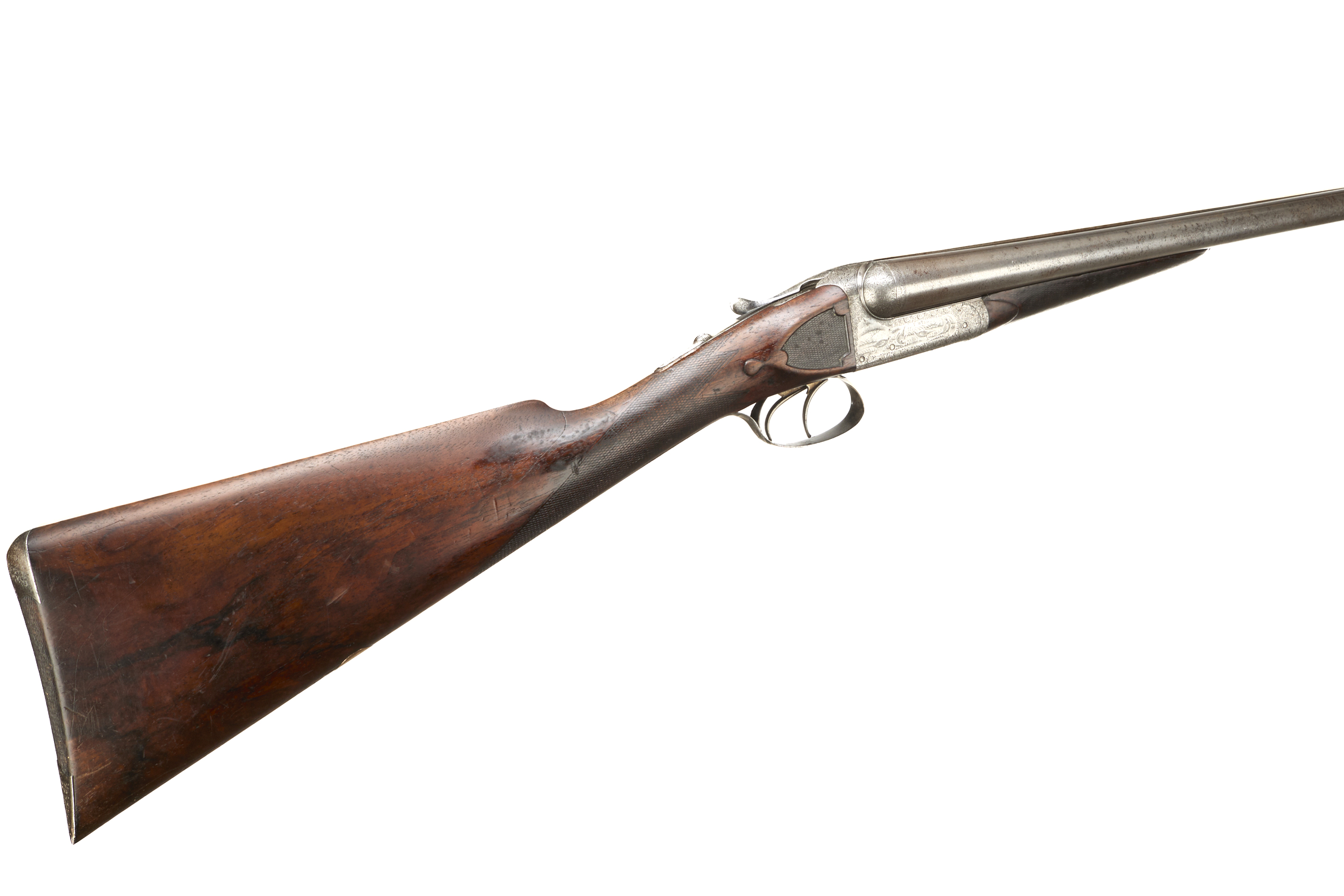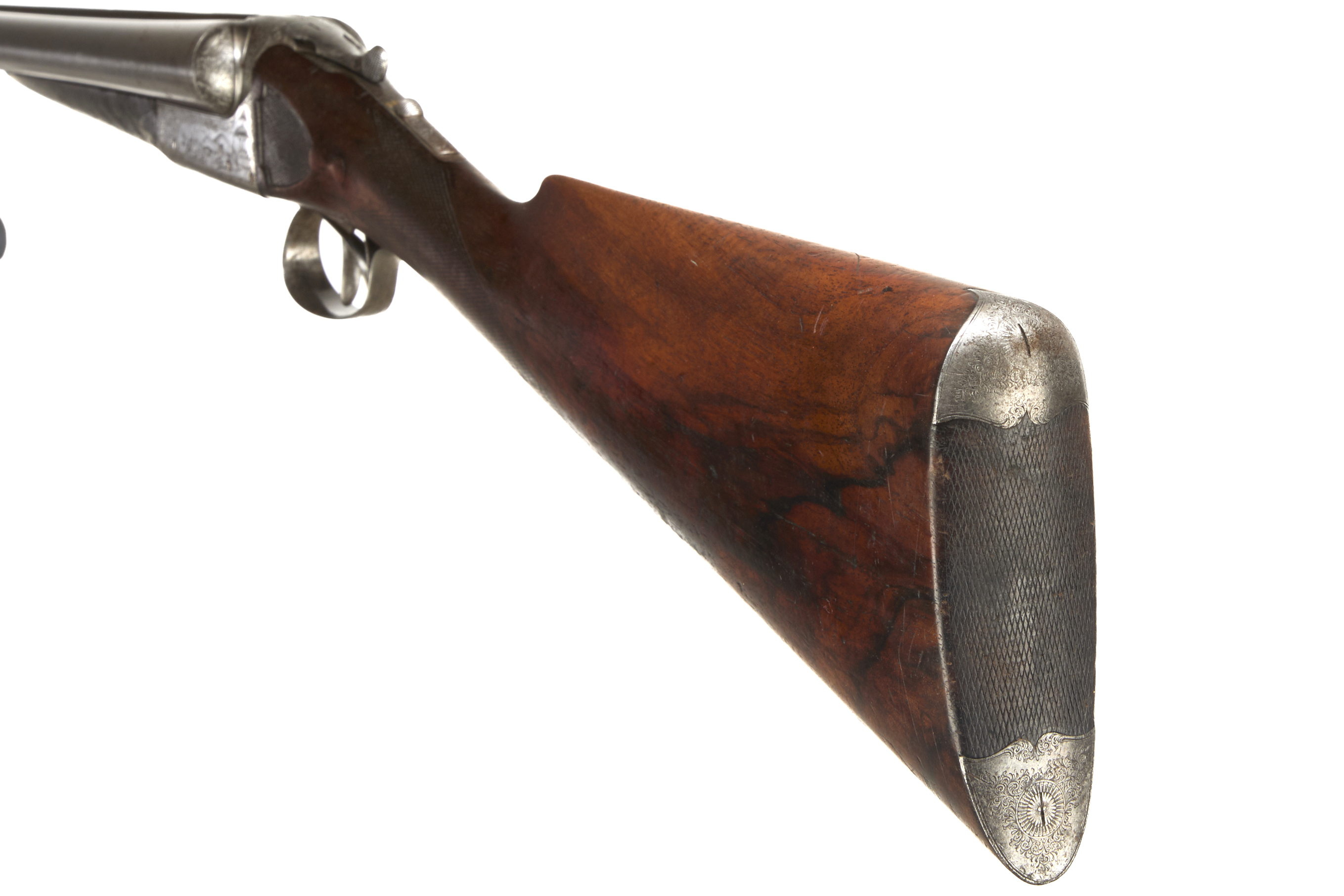 Finely embellished steel tips to heel and toe, chequered butt straight grip and forend. Damascus, black powder proof barrels with broad rib, engraved ‘1’, ‘T. WILD. 35 WHITTALL STREET. BIRMINGHAM’. Cross-bolt extension, the action finely engraved with blackcock and pheasants amid a Highland scene to the sides, a bustard to the top lever and dogs to the trigger guard. The interstices filled with the finest acanthus scrolling. Wonderful. Black powder proof pre-1896.