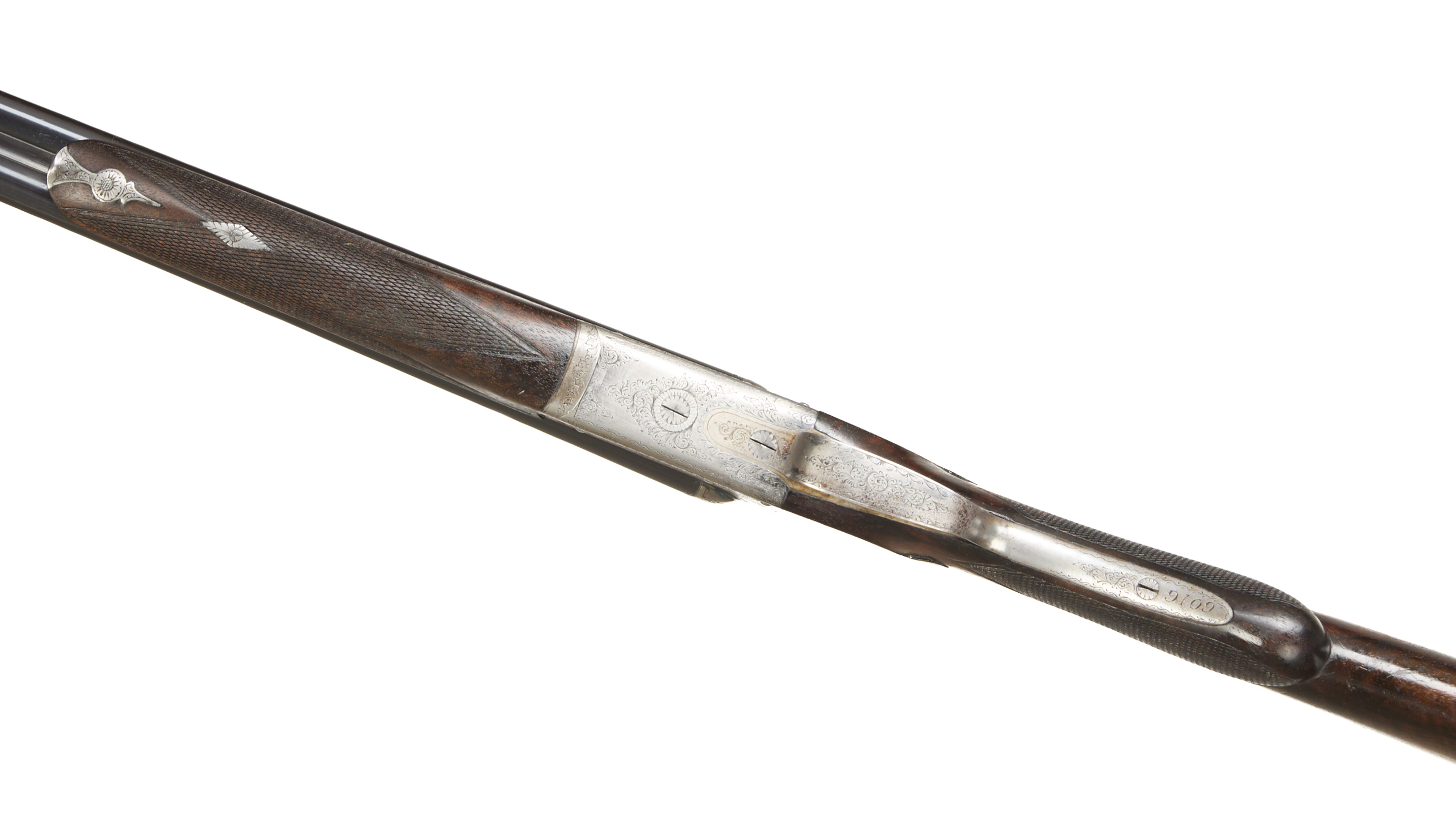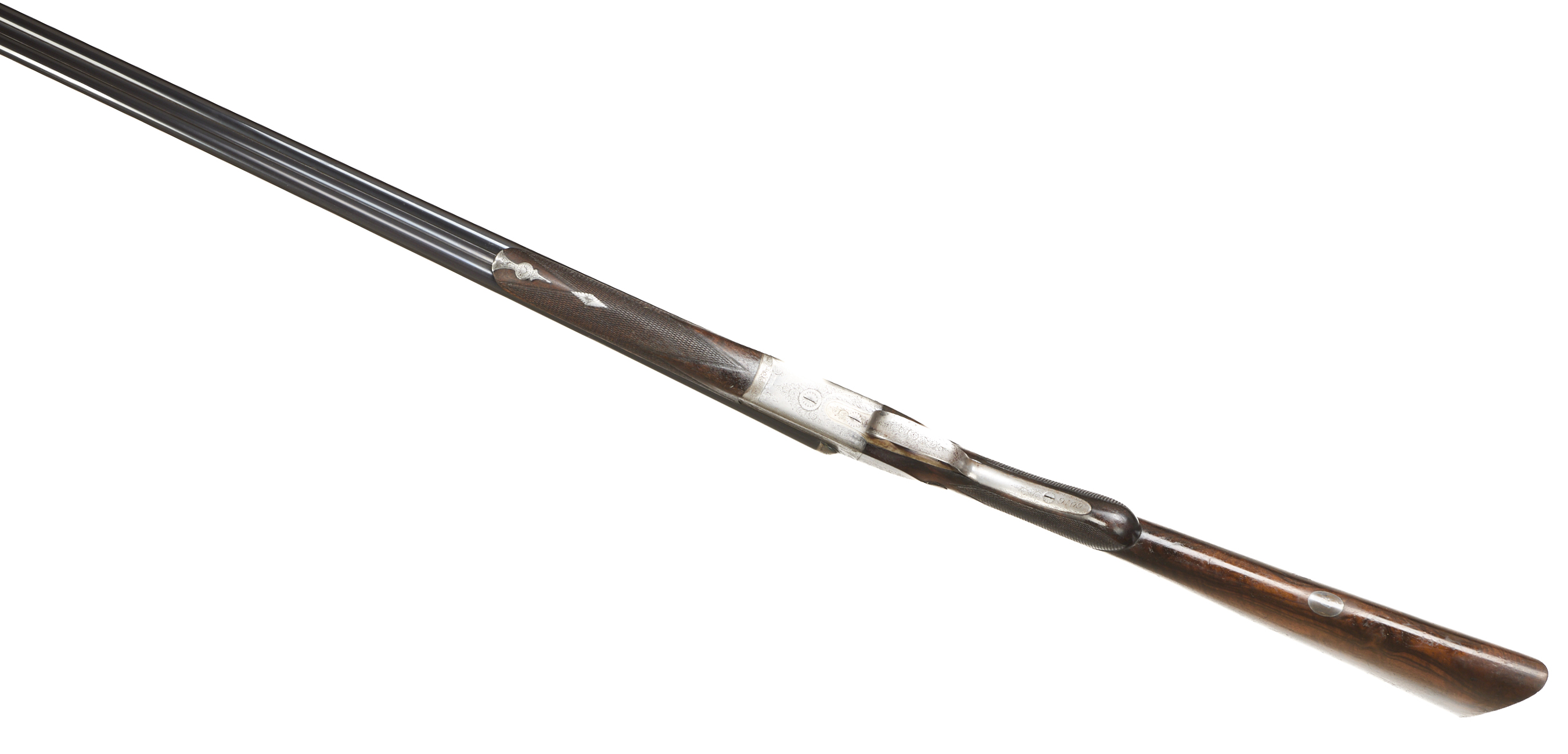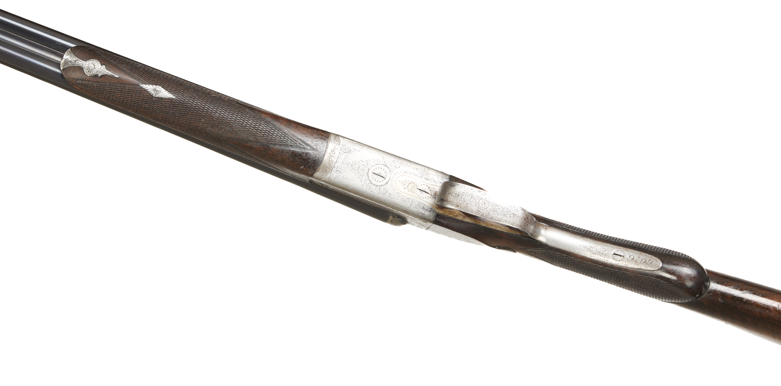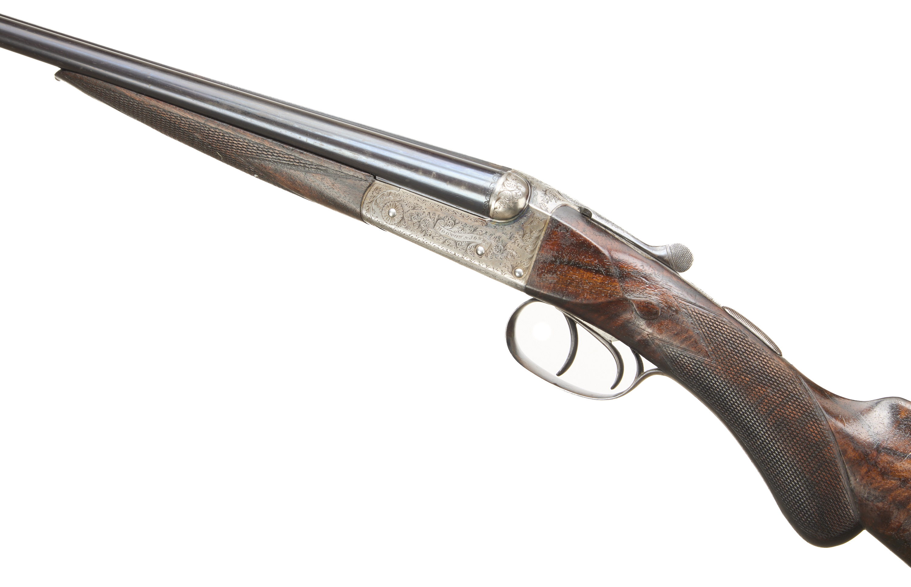 Additional Comments, Light silvering to muzzle, breech and edges of rib. A number of fine, light marks to the barrels. A little original colour remaining on the action below the fences, the engraving little worn. The stock richly figured, some exposed grain and deeper scratches, widely marked. The bores bright with some small frosted patches.